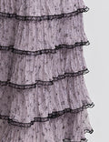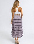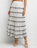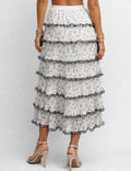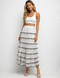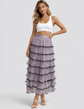 Ladies Color Block Tiered Ruffle Hem Mesh Maxi Skirt