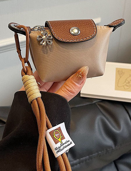 Ladies Color Block Flap Mini Wallet Bag with Key Chain