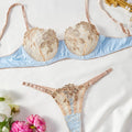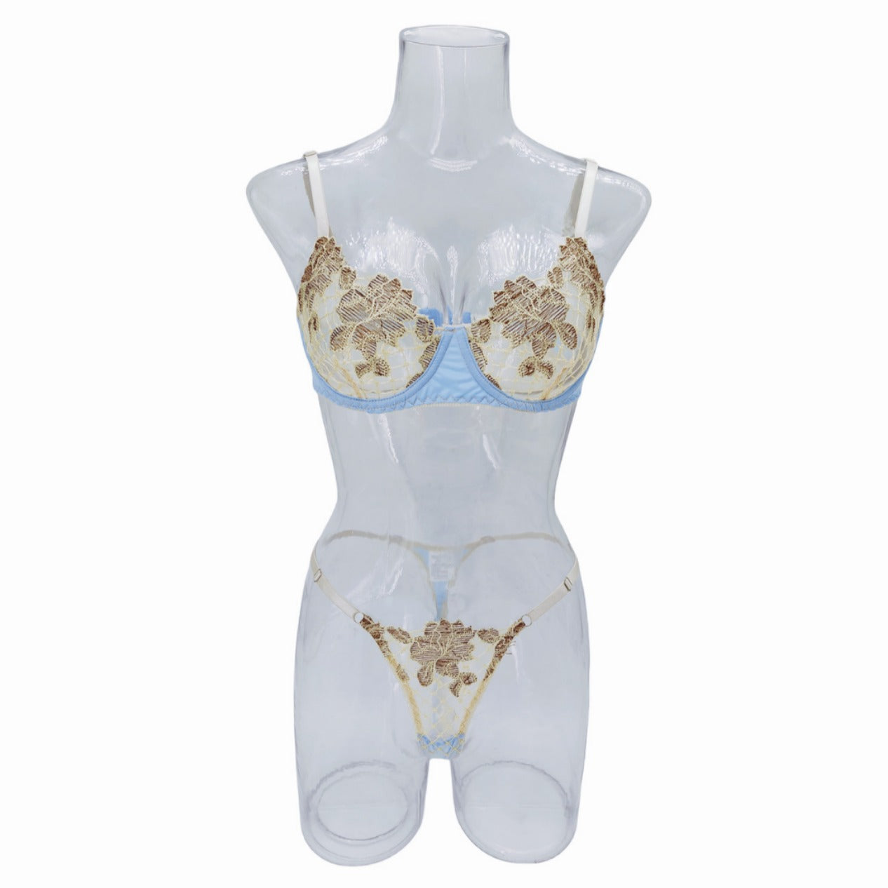 Ladies Color Block Floral Embroidery 2PCS Lingerie Set SKLG4050