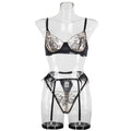 Ladies Color Block Floral Embroidery 3PCS Lingerie Set SKLG4103