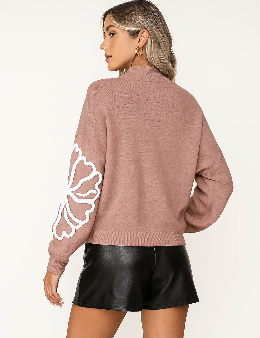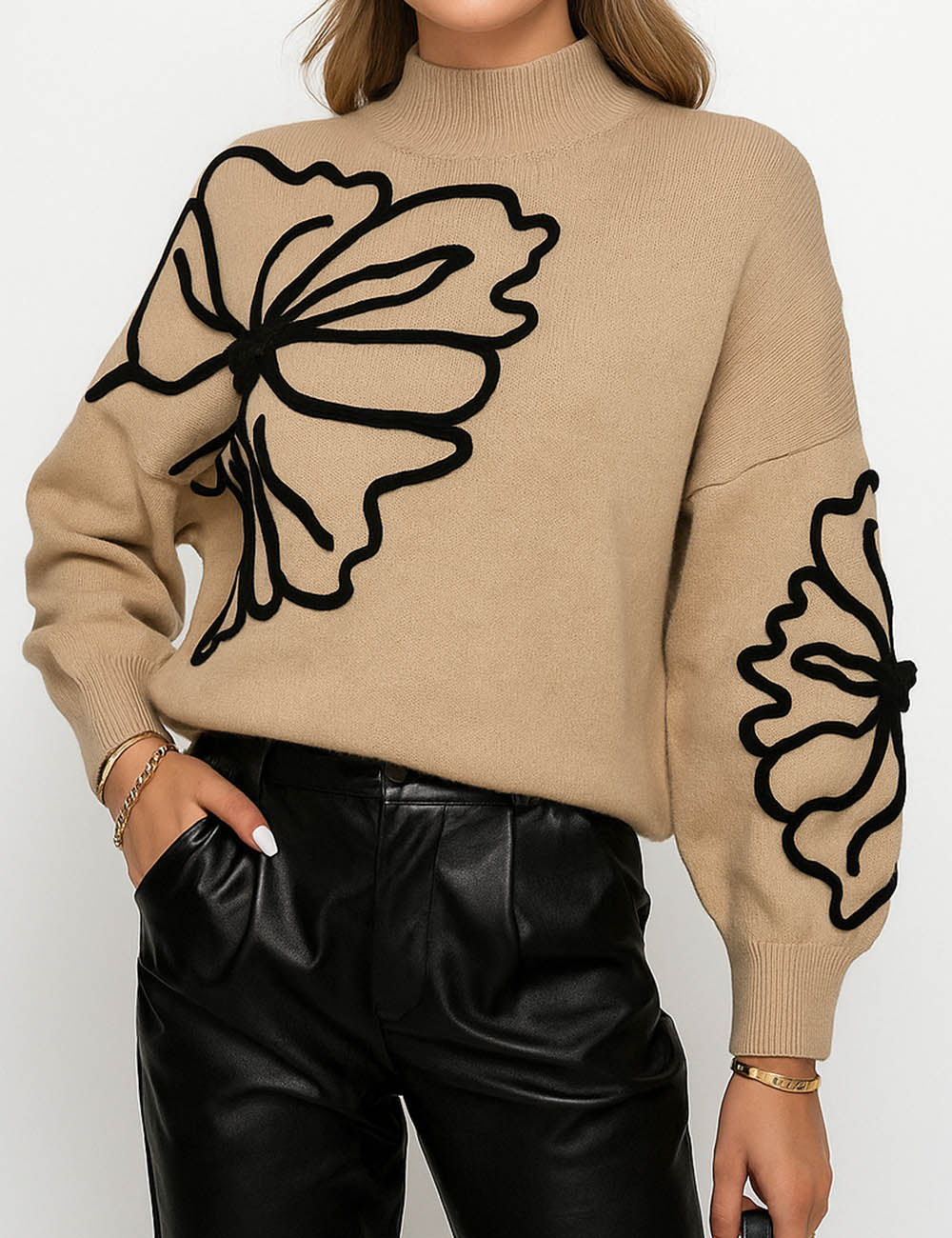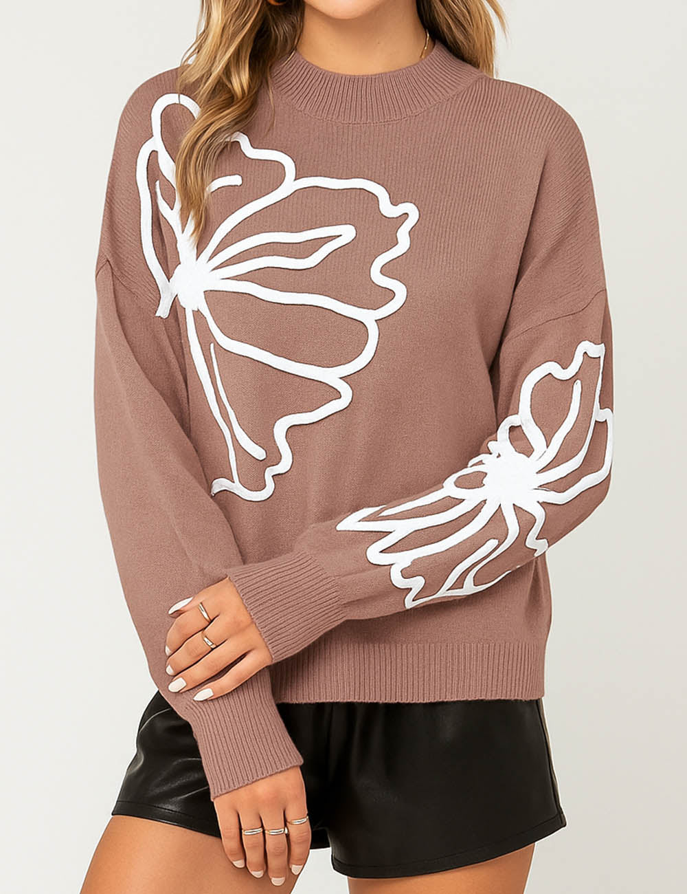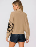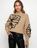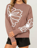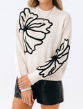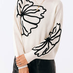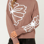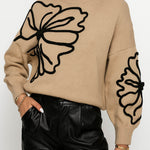 Ladies Color Block Floral Embroidery Pullover Sweater