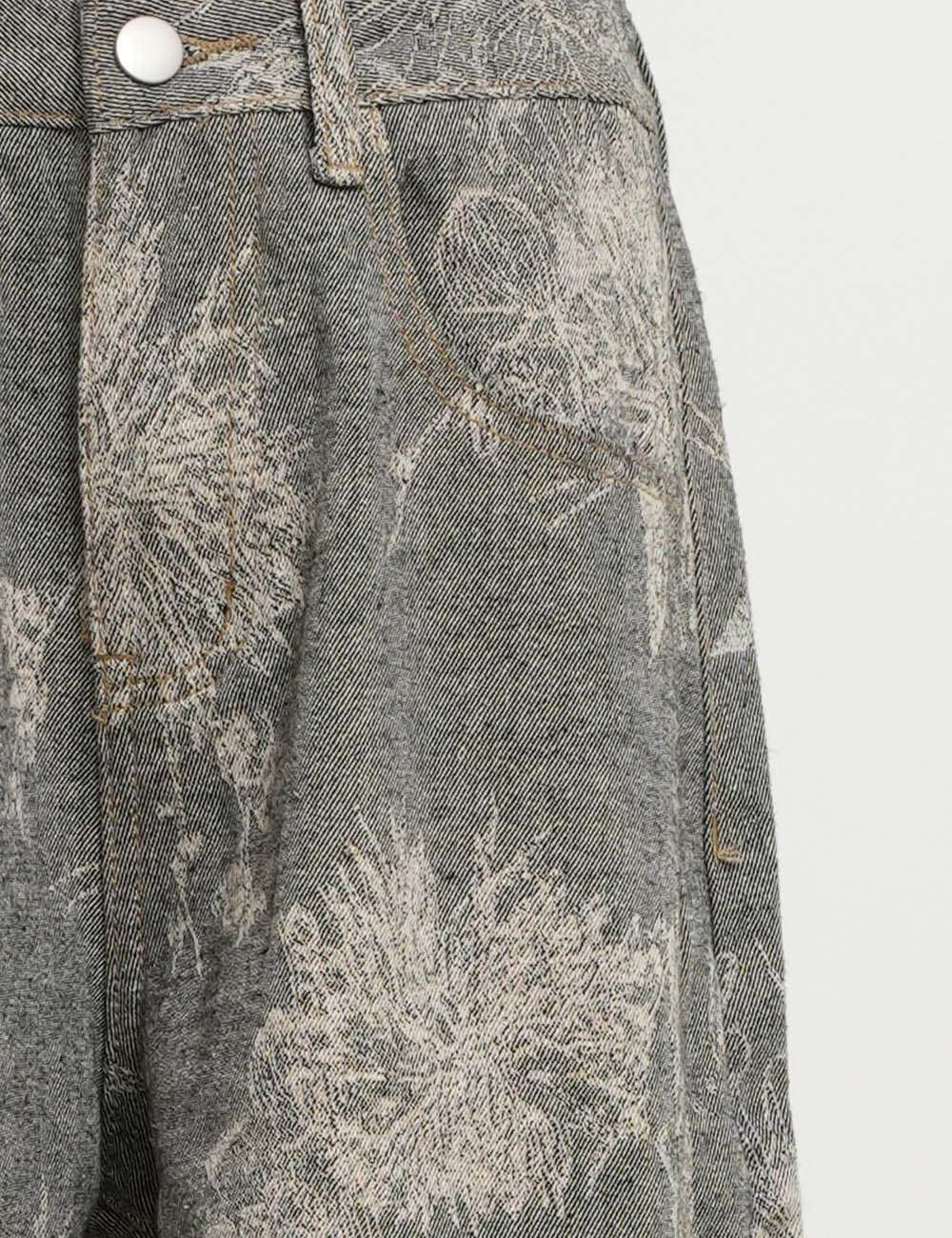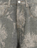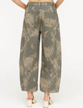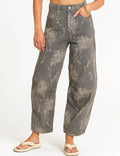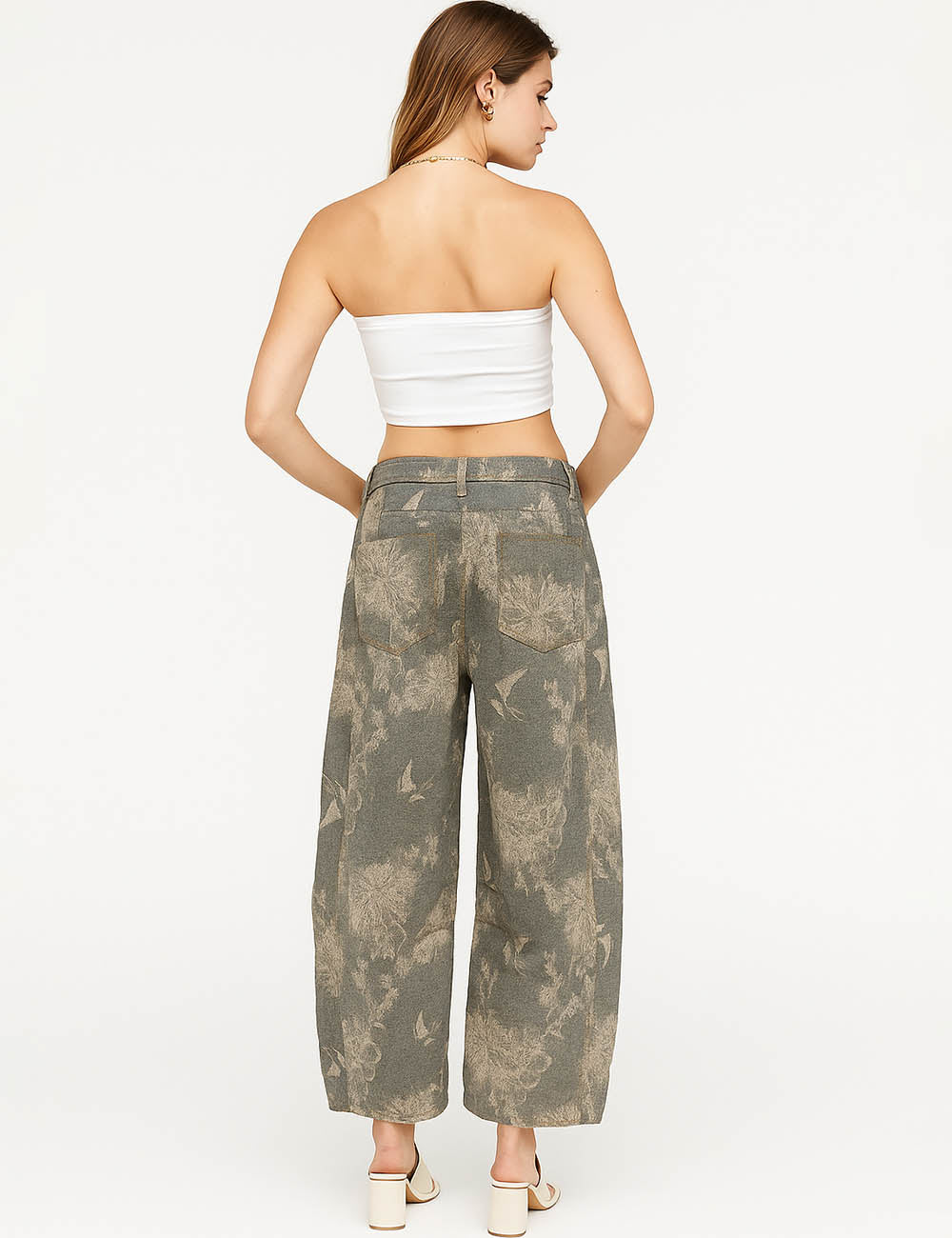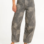 Ladies Color Block Floral Print Pocket Barrel Leg Denim Pants