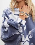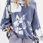 Ladies Color Block Garden Print Long Sleeves Sweatshirt SKT5KC44