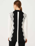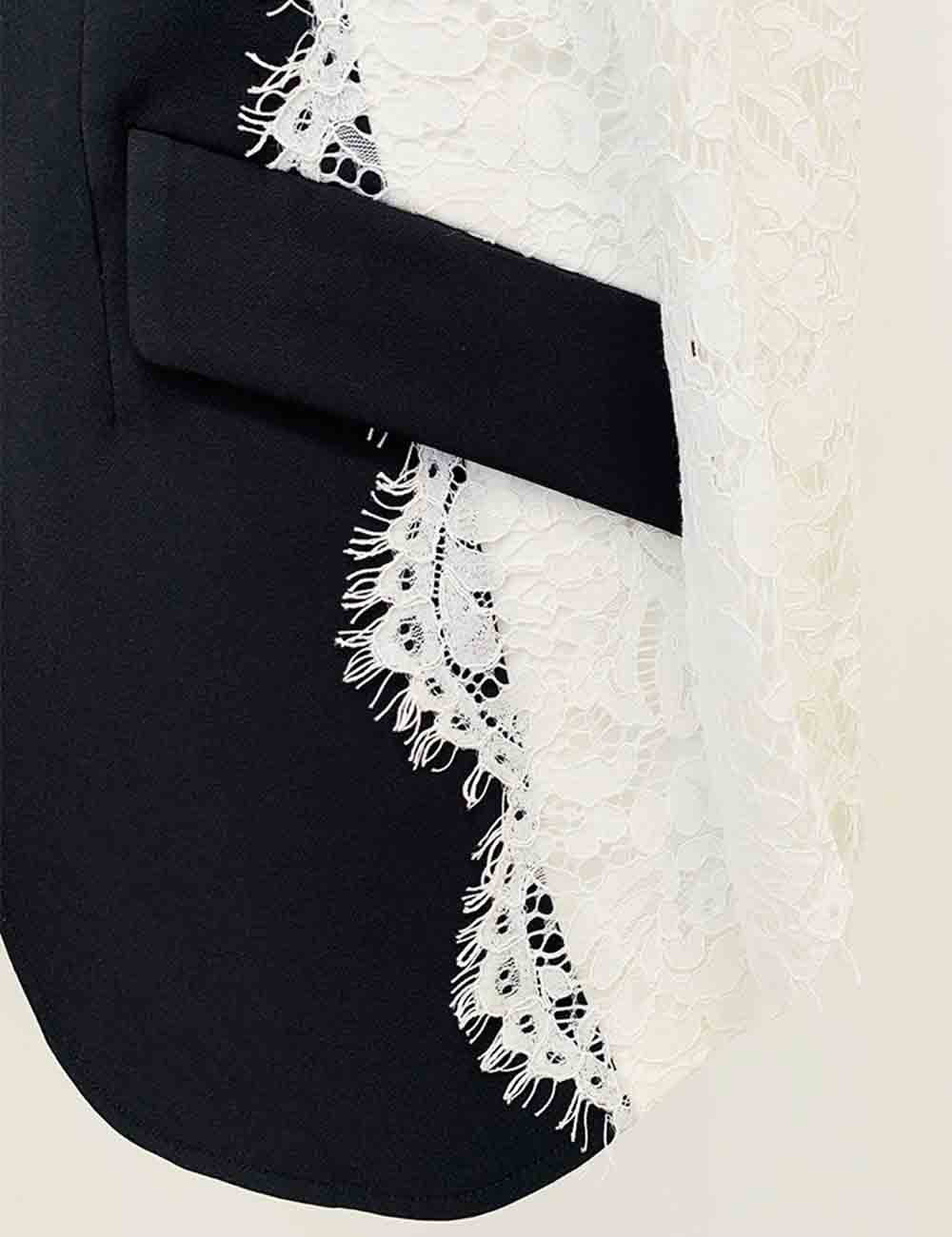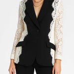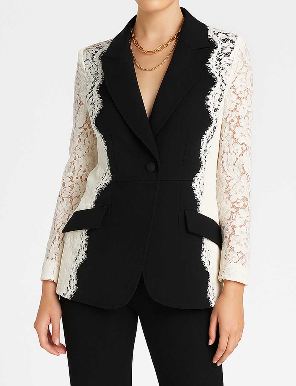 Ladies Color Block Lace Embroidery Notched Lapel Blazer