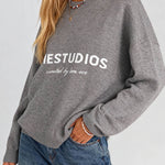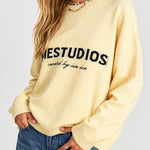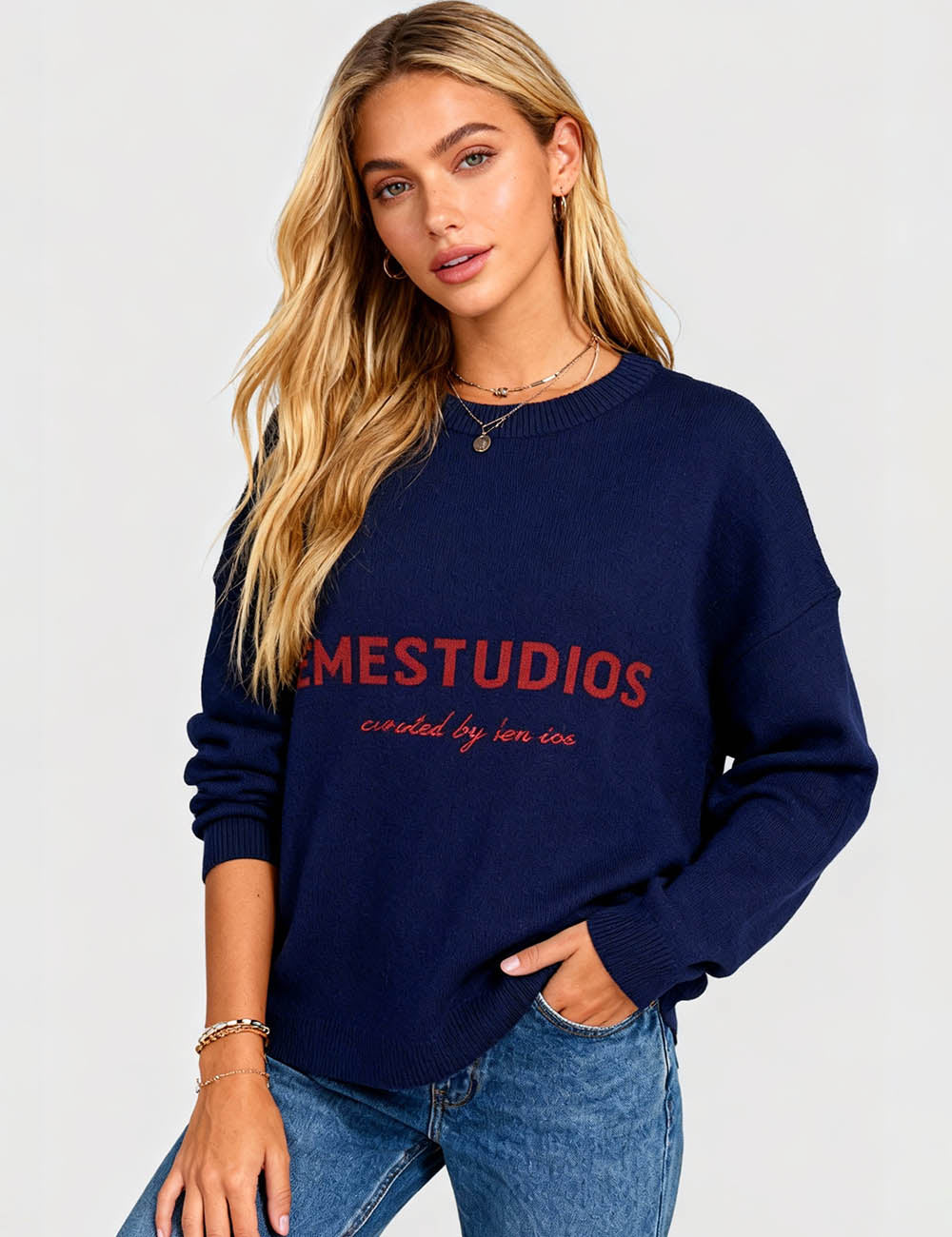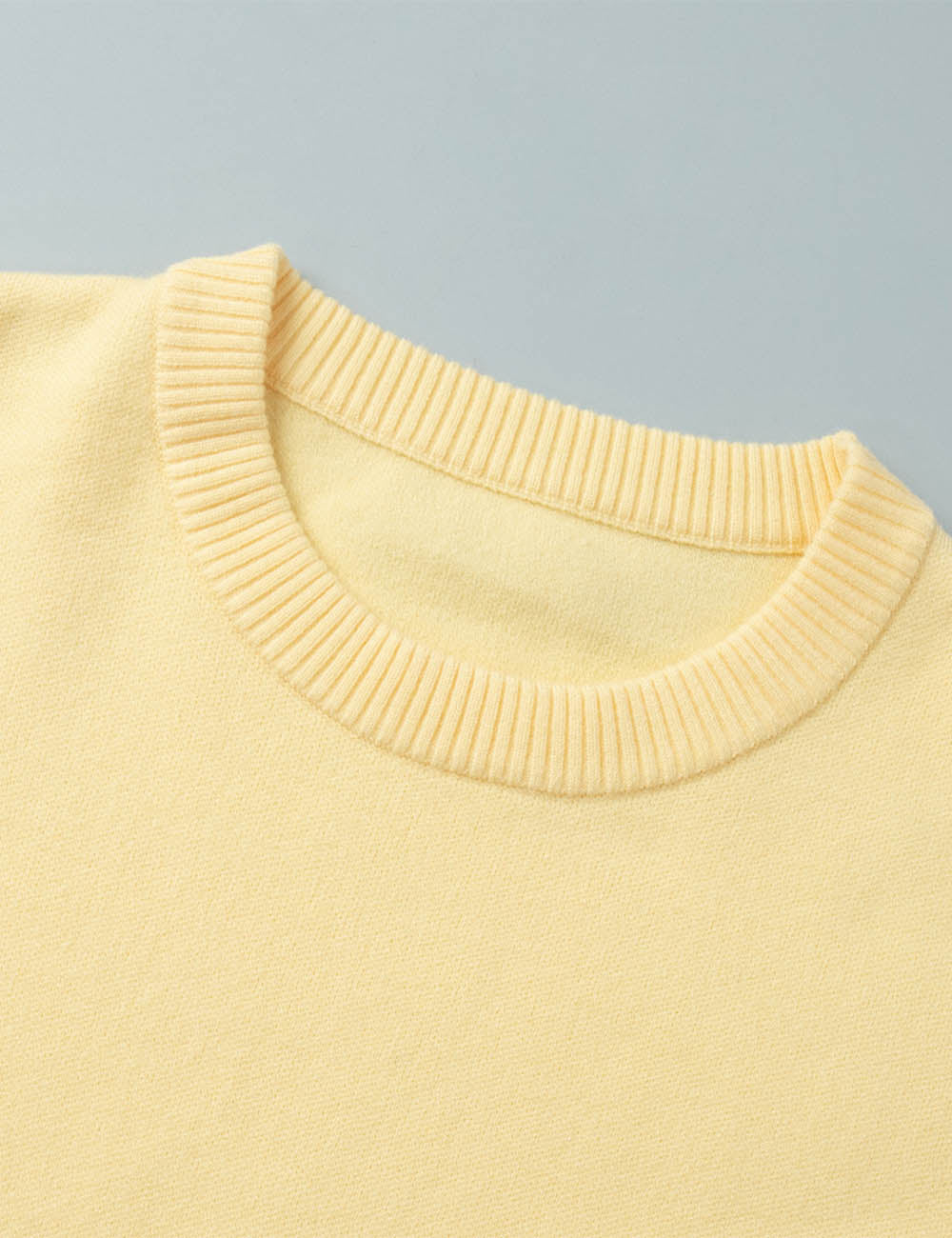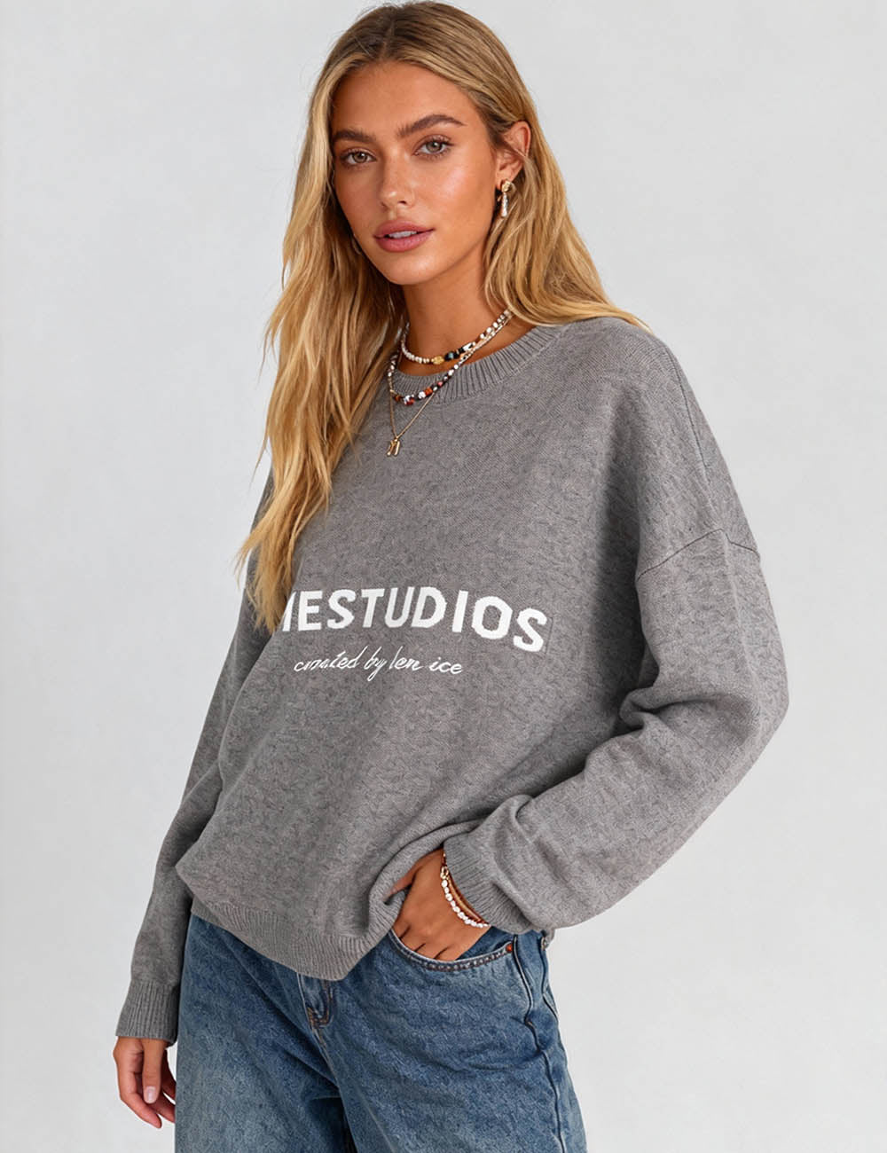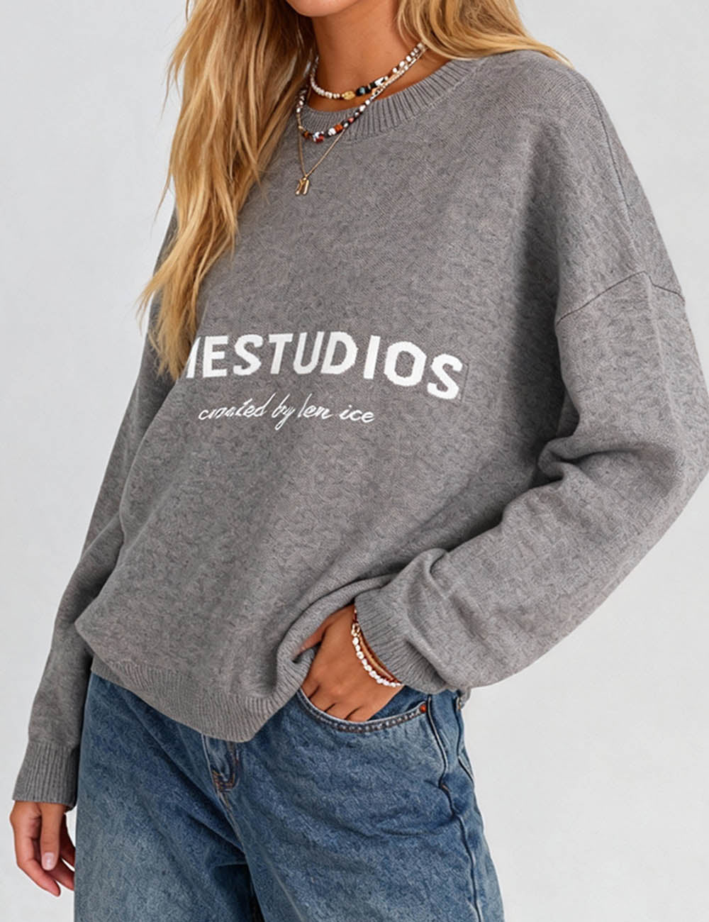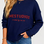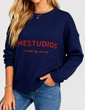Ladies Color Block Letter Embroidery Rib Trim Knit Sweater