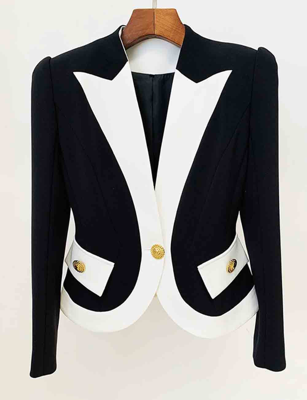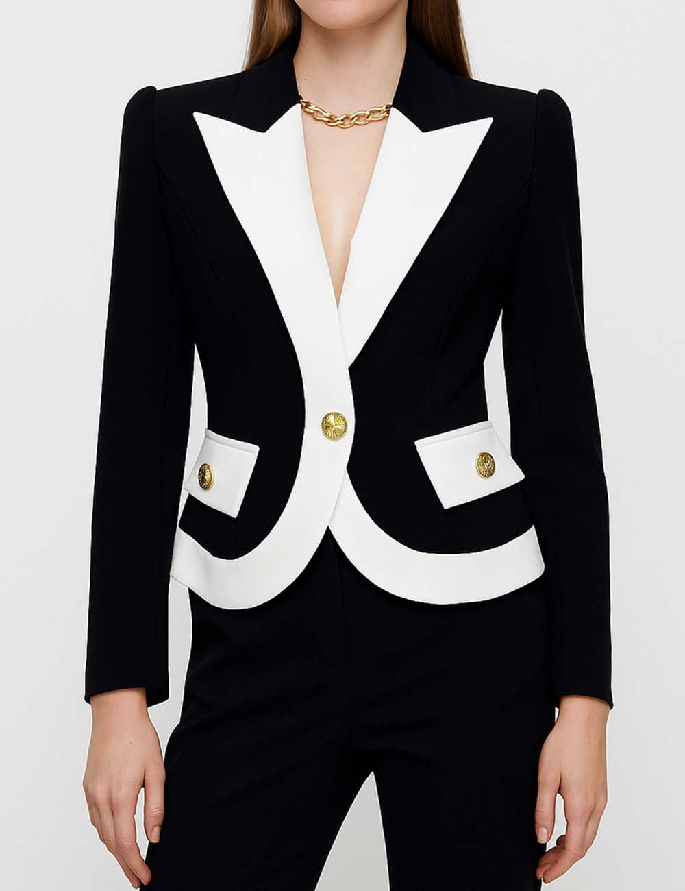 Ladies Color Block Peaked Lapel One-Button Blazer