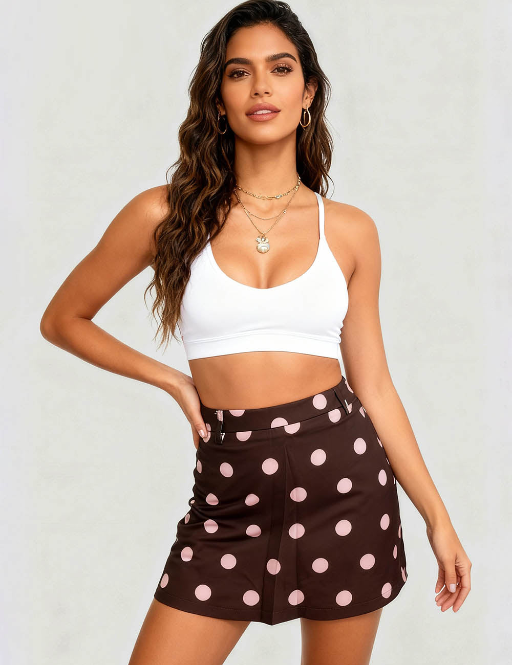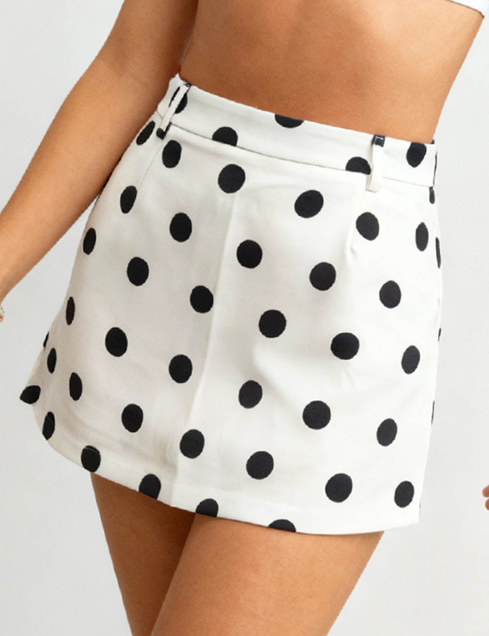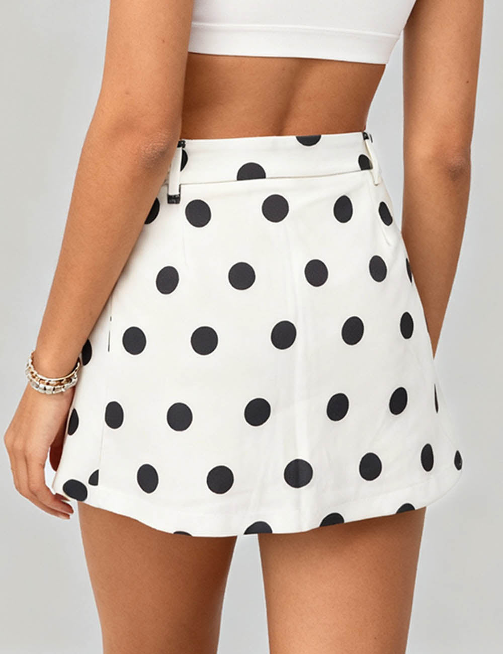 Ladies Color Block Polka Dot Zipper Side Mini Skorts