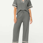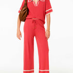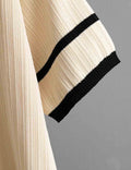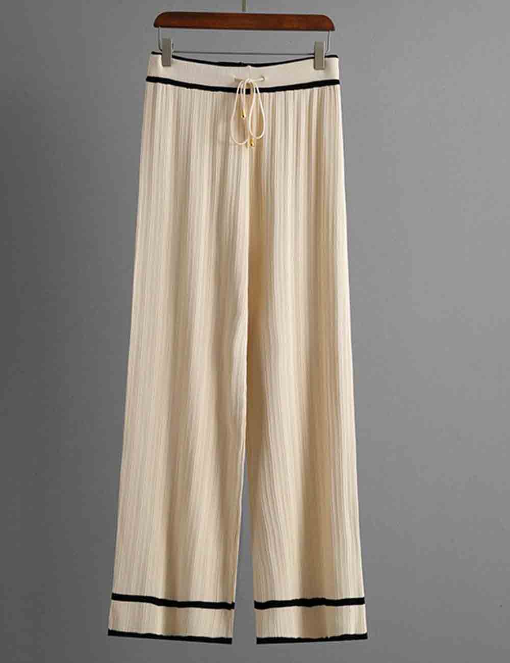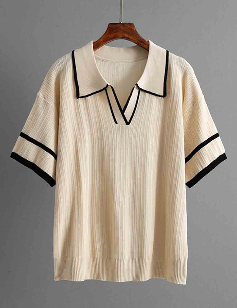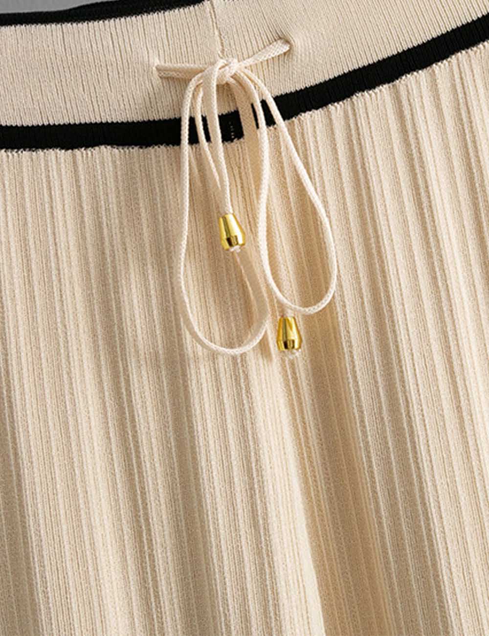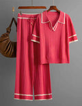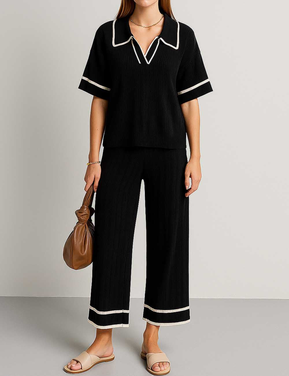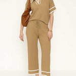 Ladies Color Block Polo Collar Knit Top & Pants 2PCS Set