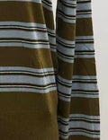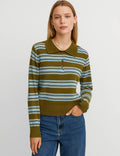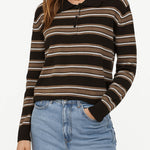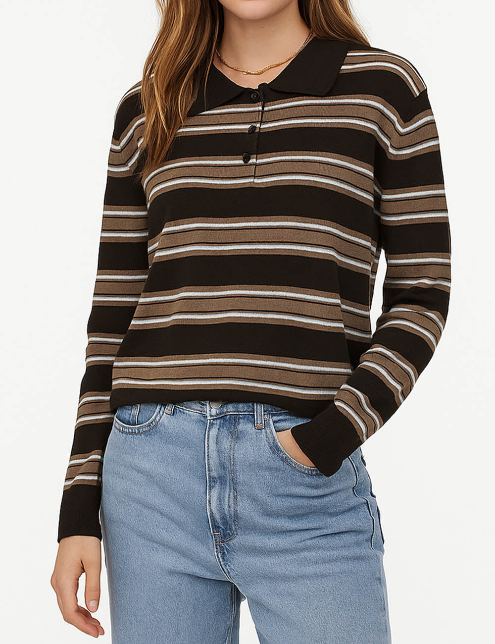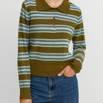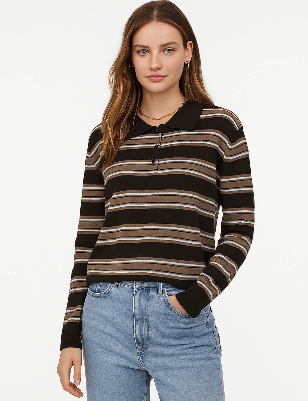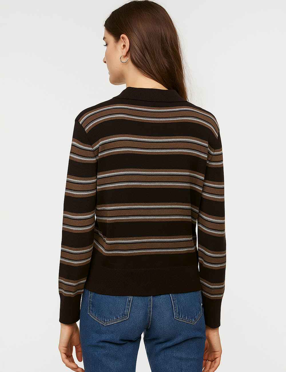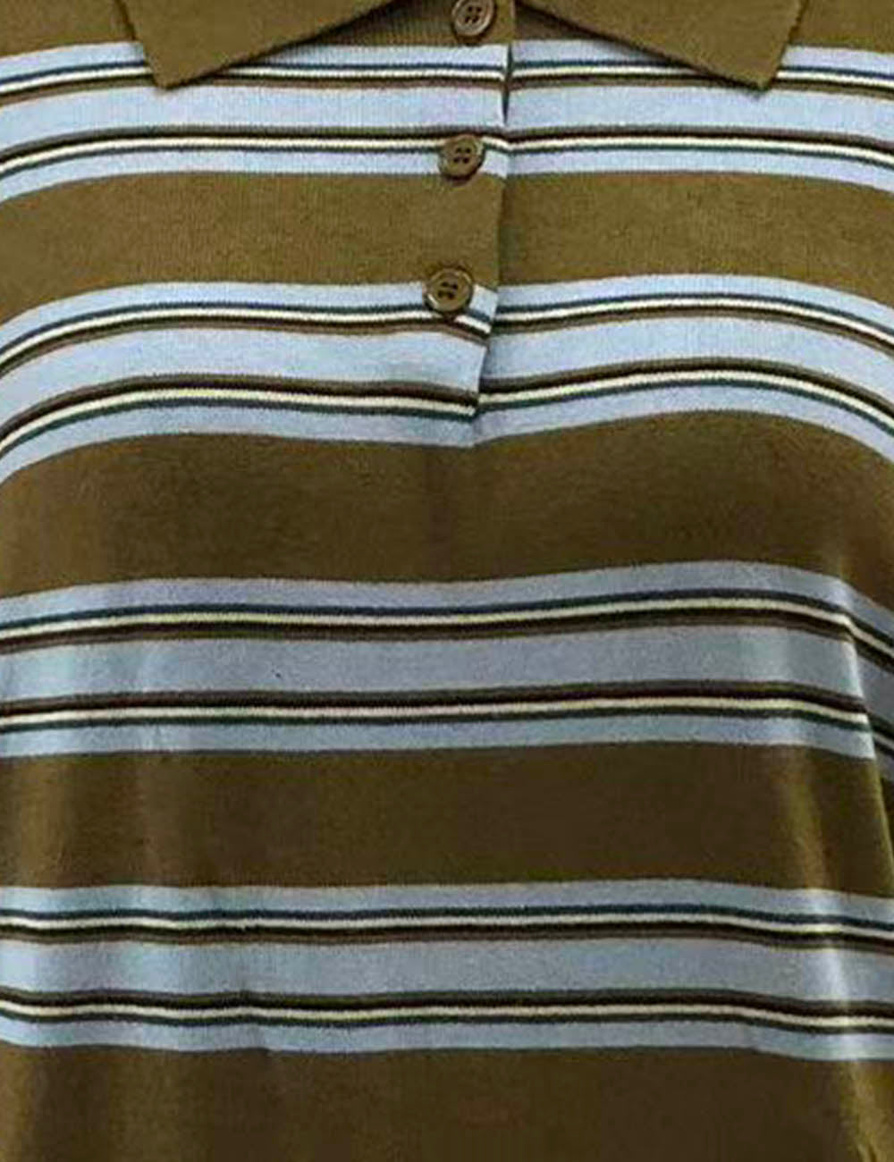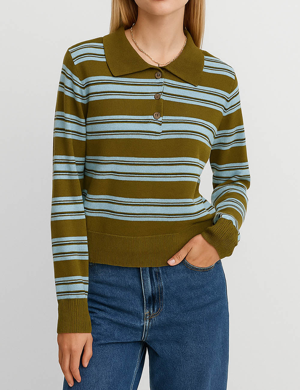 Ladies Color Block Polo Neck Long Sleeves Striped Knit Top