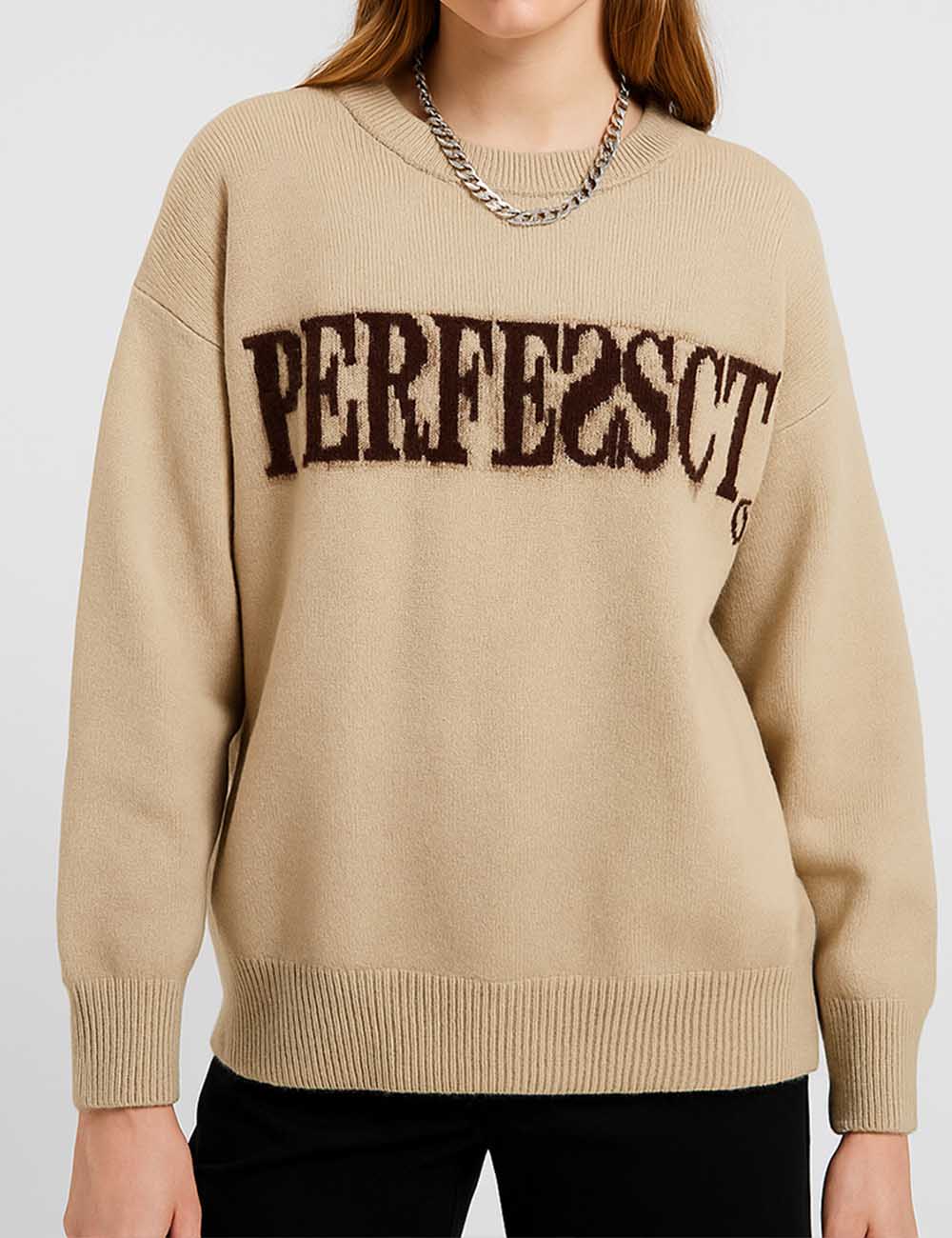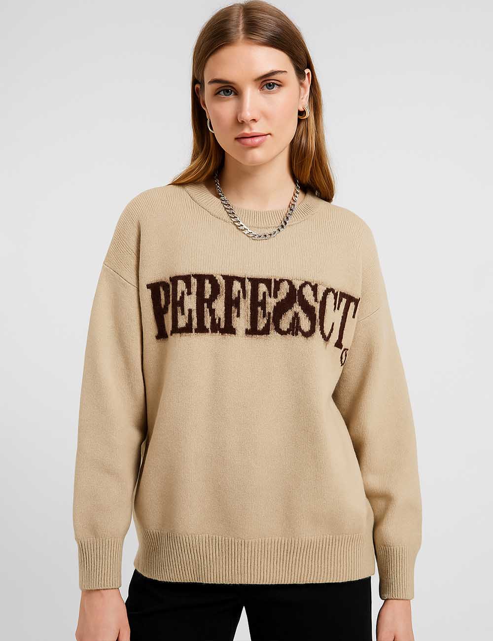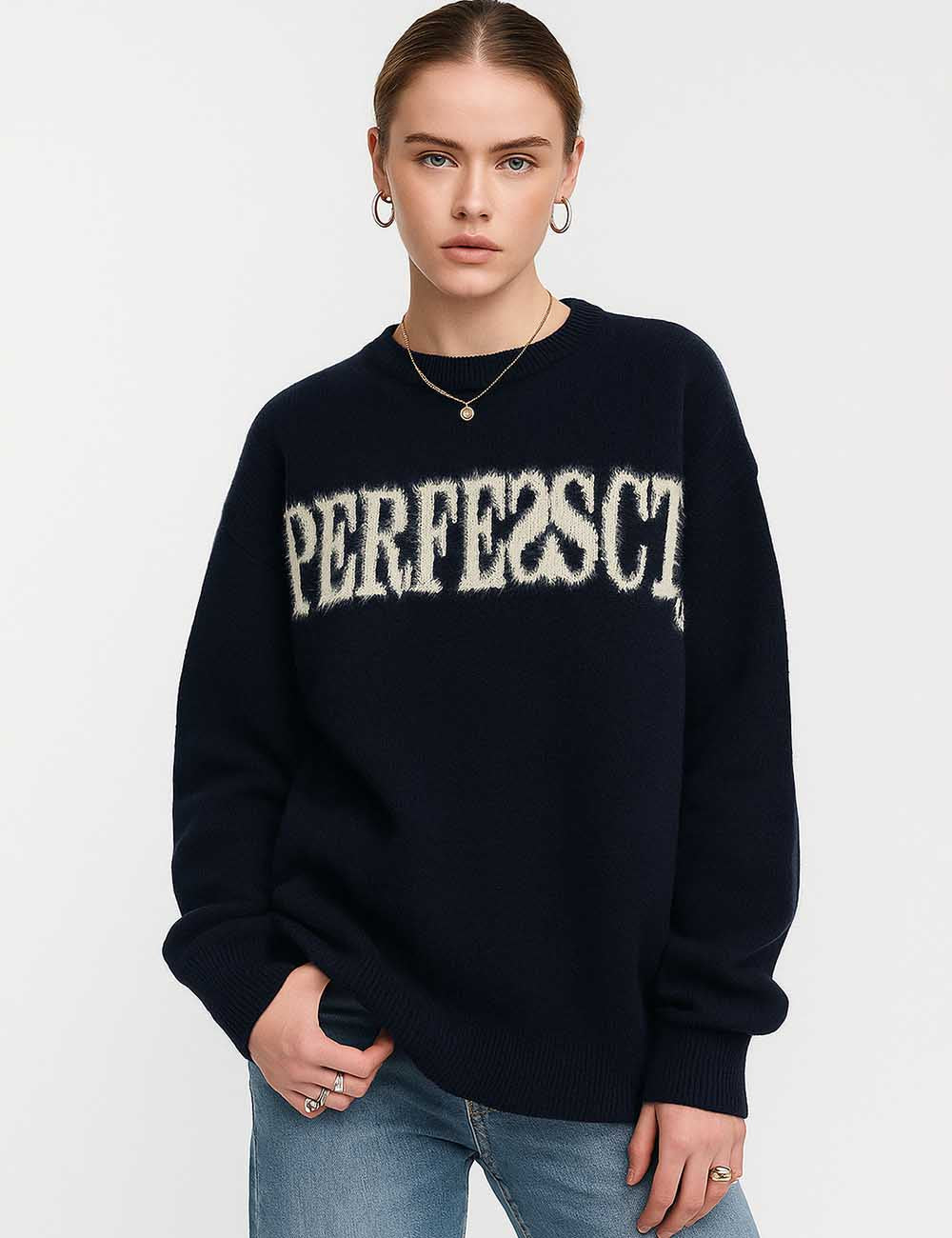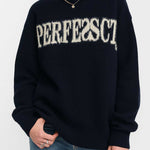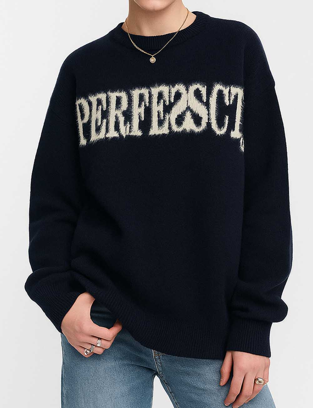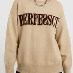 Ladies Color Block Pullover Lettern Pattern Long Sleeves Sweater