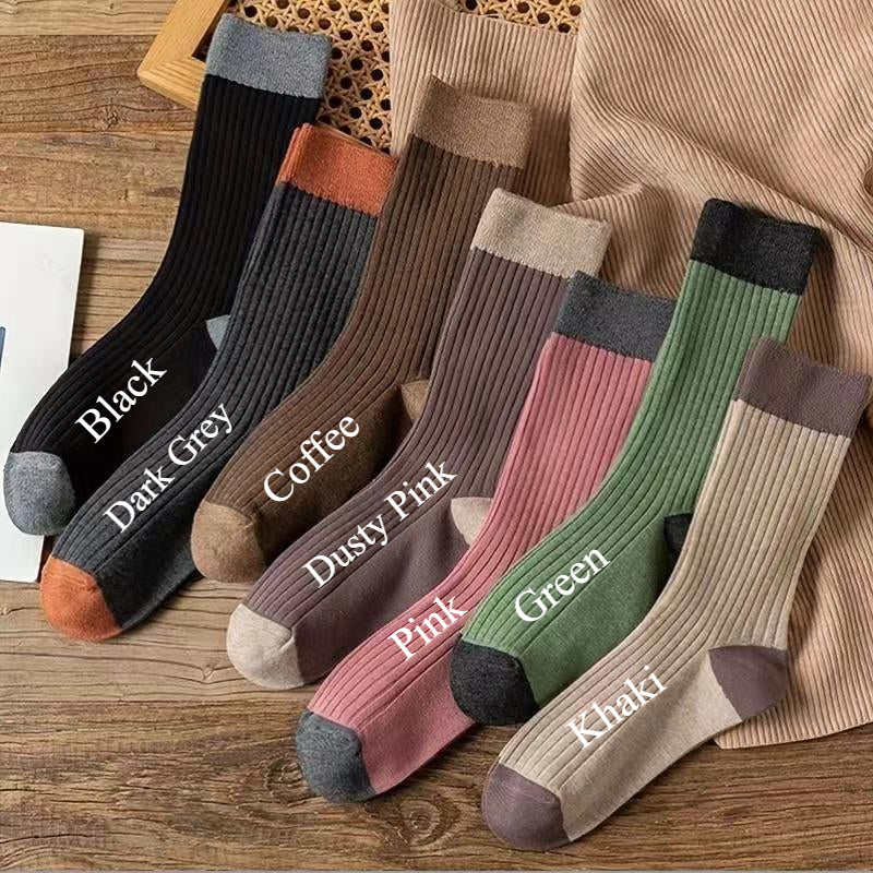 Ladies Color Block Rib Cotton Daily Socks SKASC4163