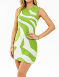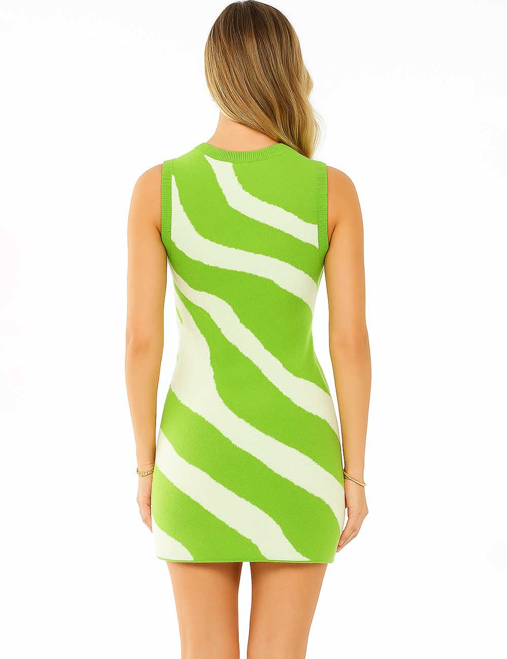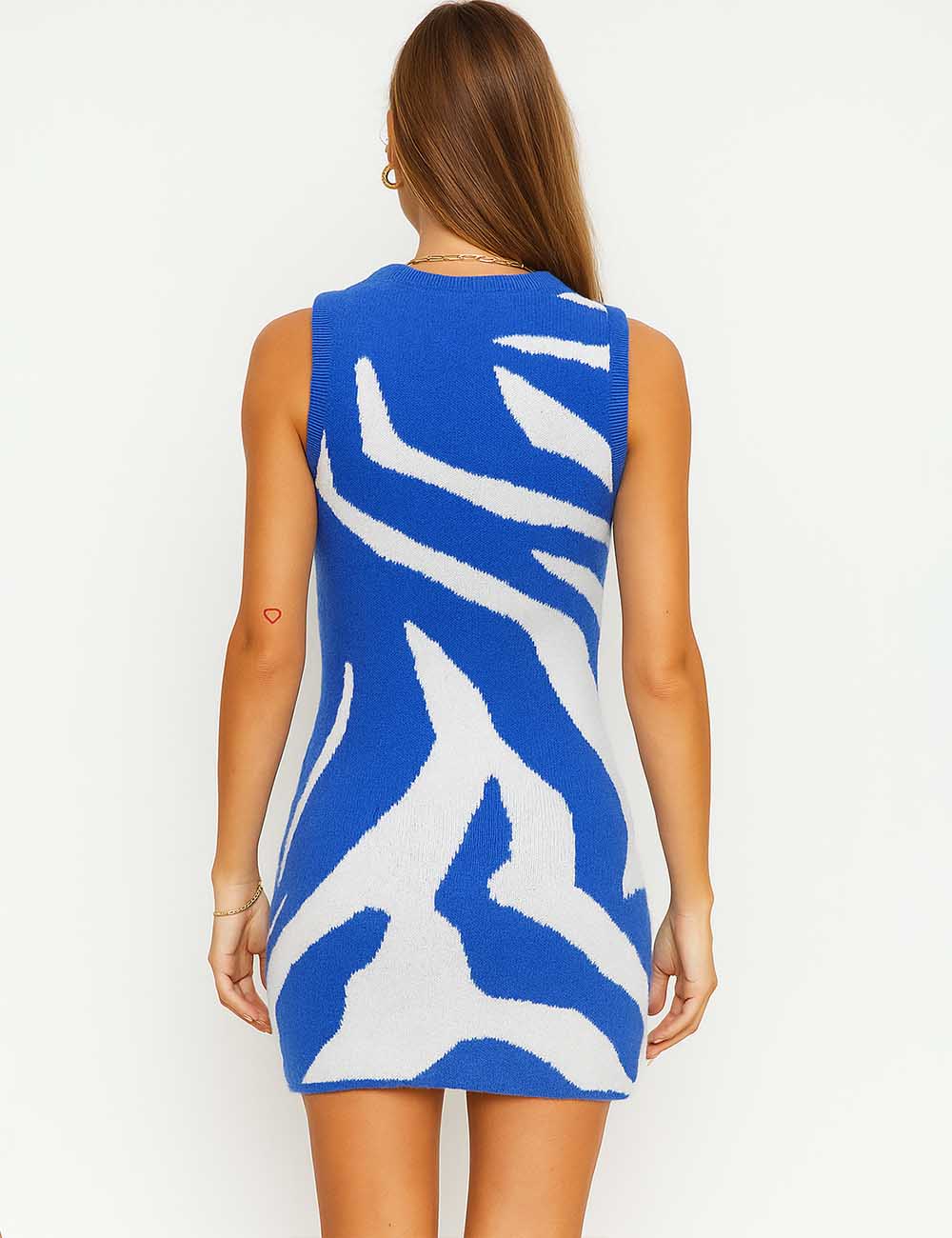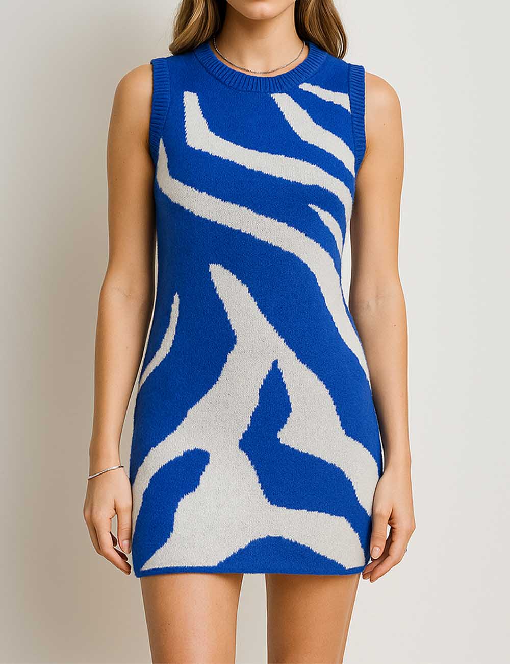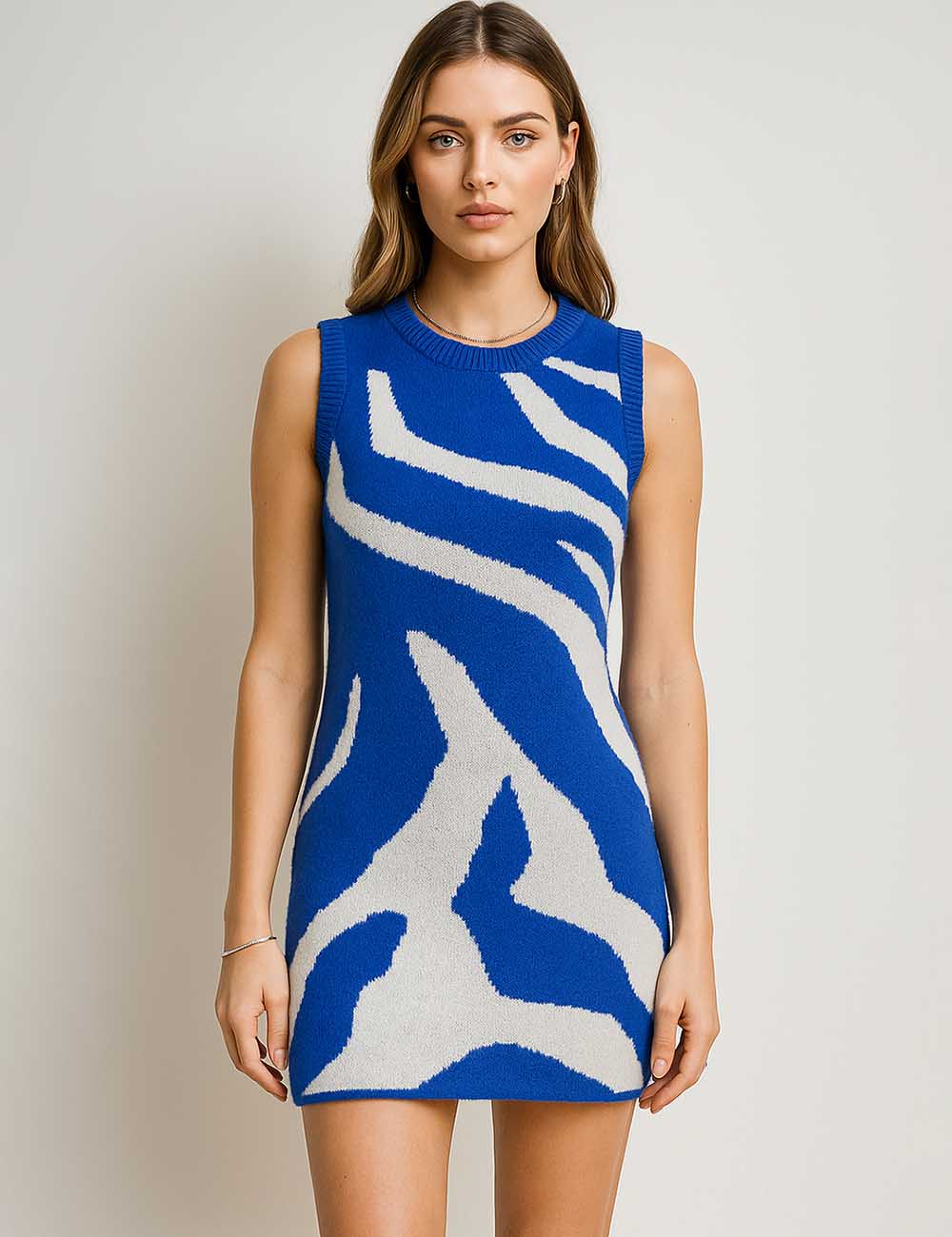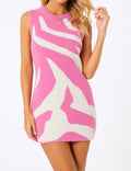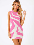 Ladies Color Block Round Collar Sleeveless Knit Dresses