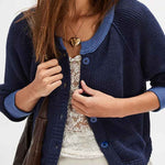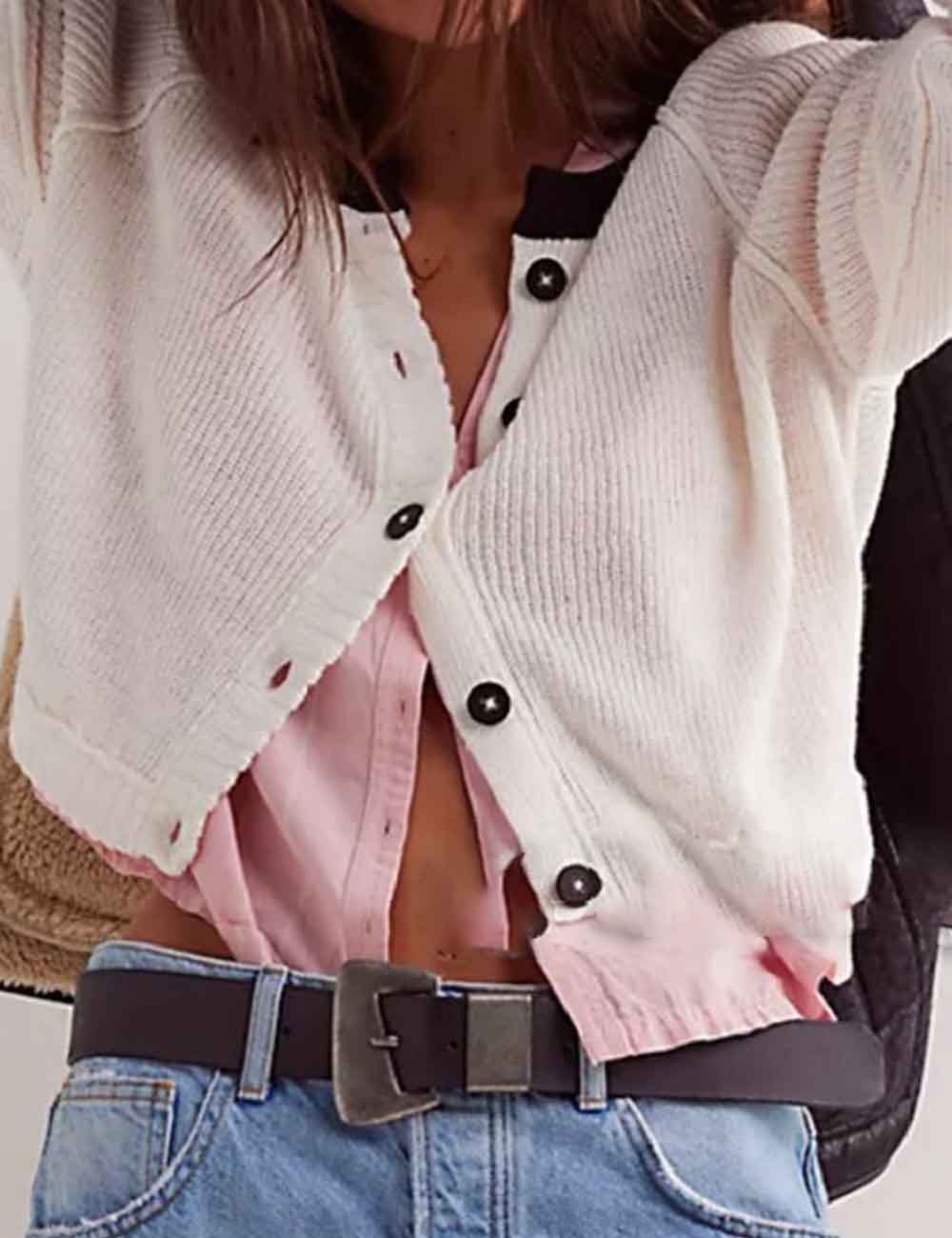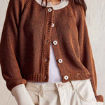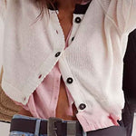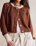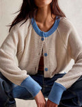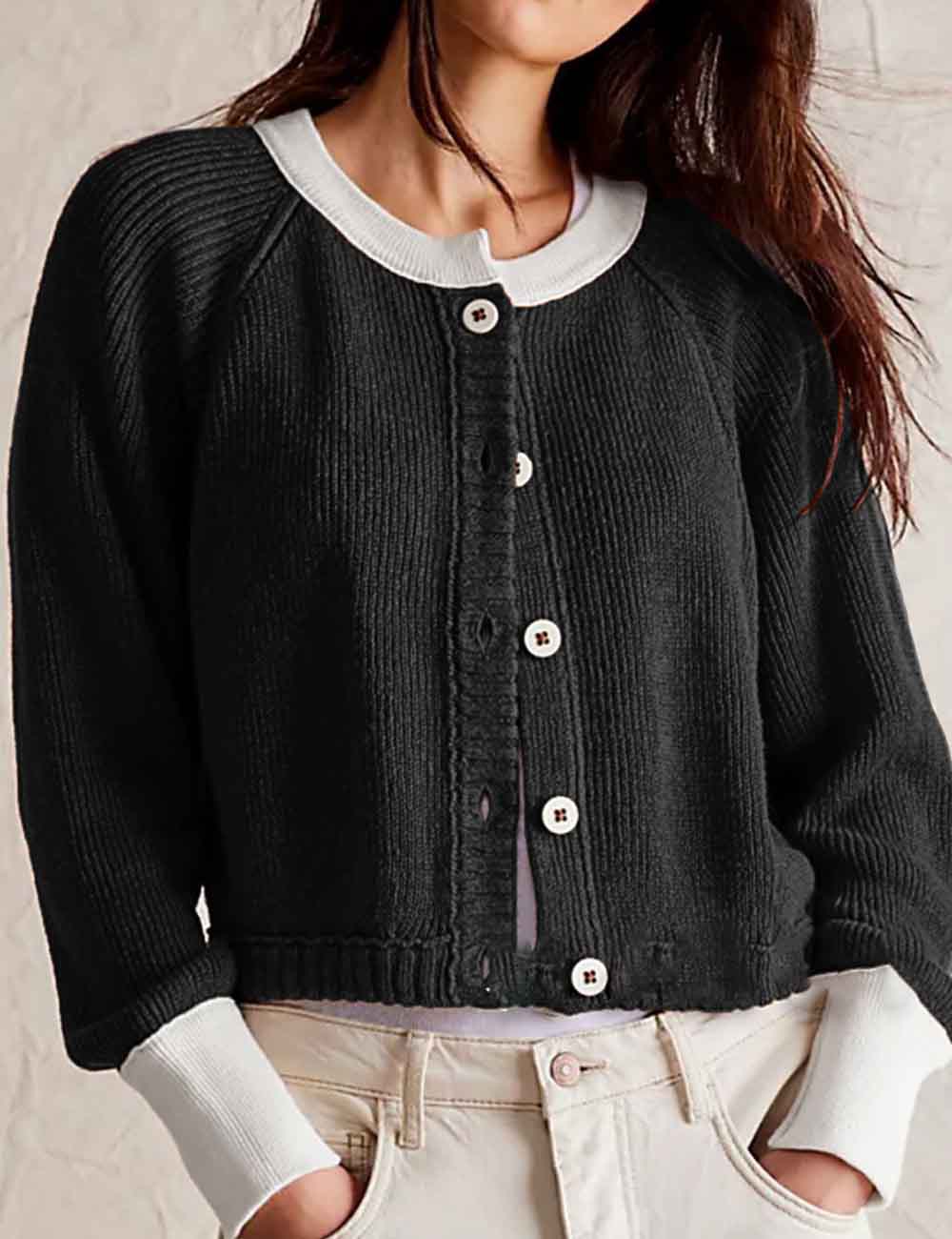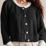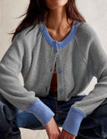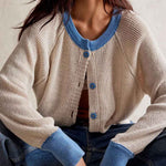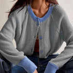 Ladies Color Block Round Neck Button Long Sleeves Cardigan