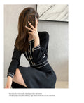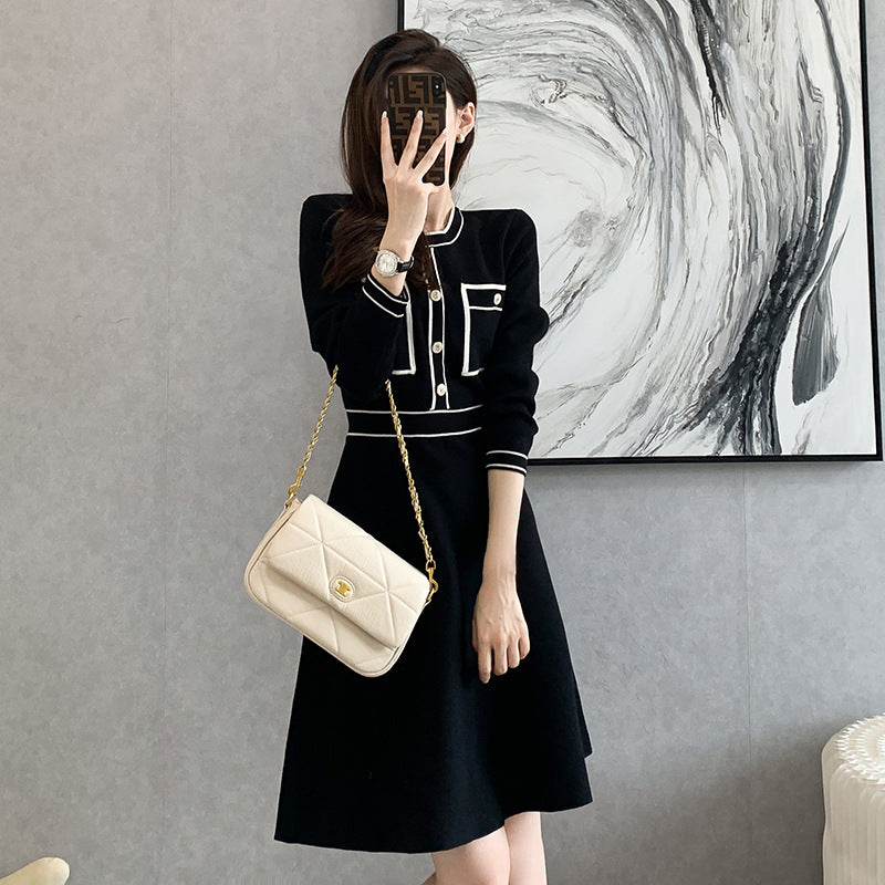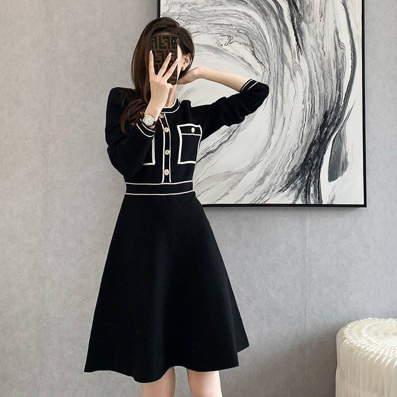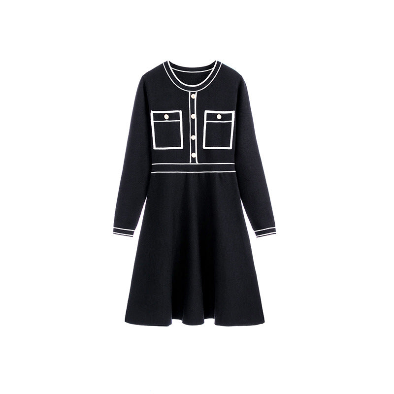 Ladies Color Block Round Neck Long Sleeves Knit Mini Dress