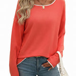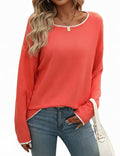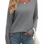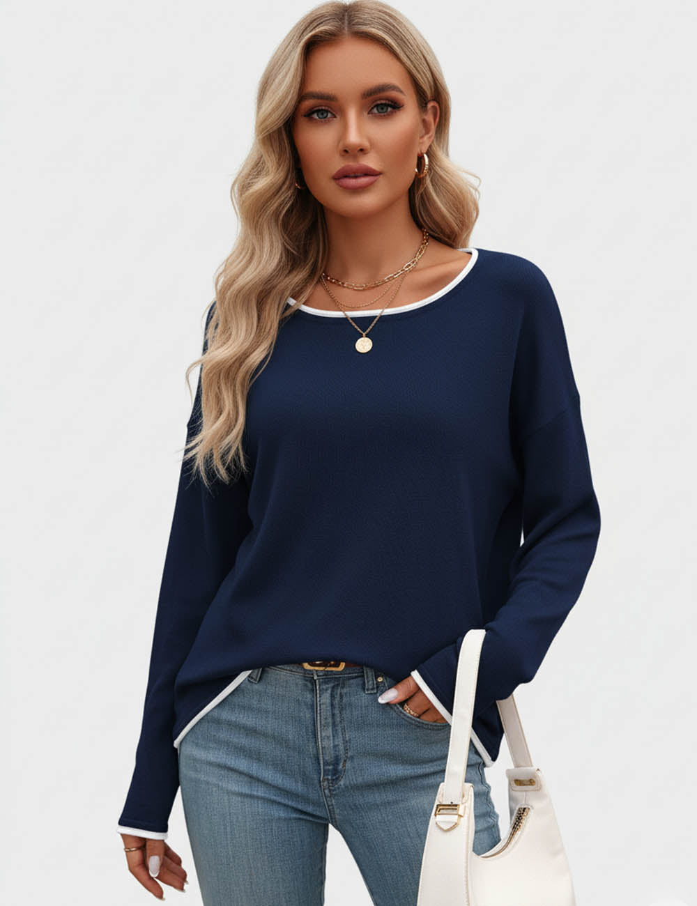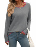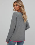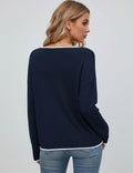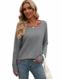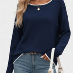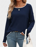 Ladies Color Block Round Neck Long Sleeves Sweater