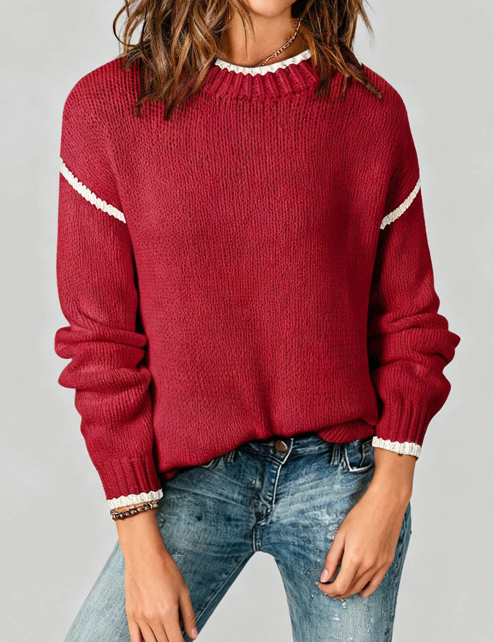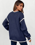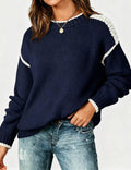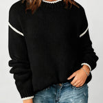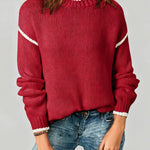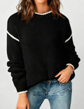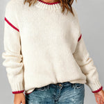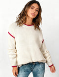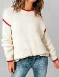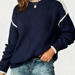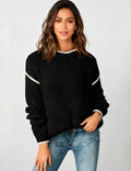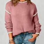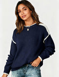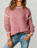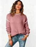 Ladies Color Block Round Neck Rib Knit Sweater
