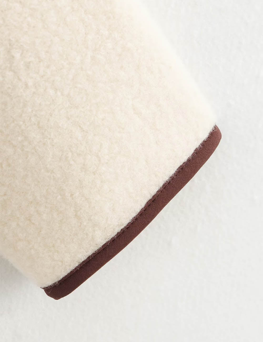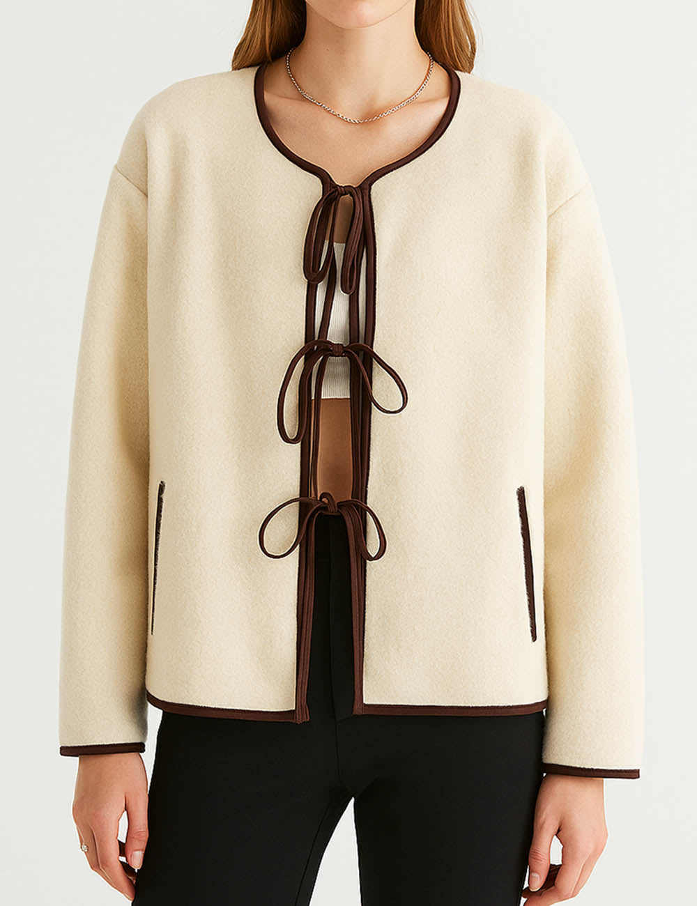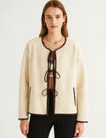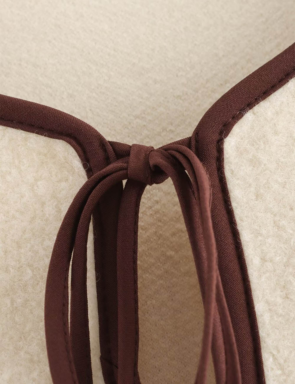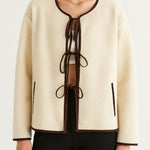 Ladies Color Block Round Neck Tie Faux Sherpa Jacket