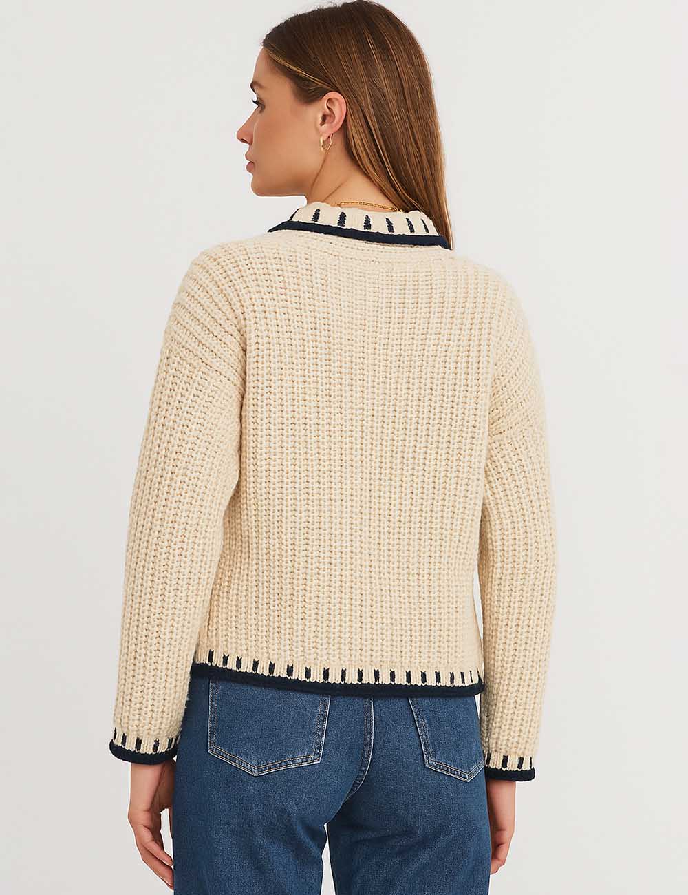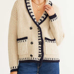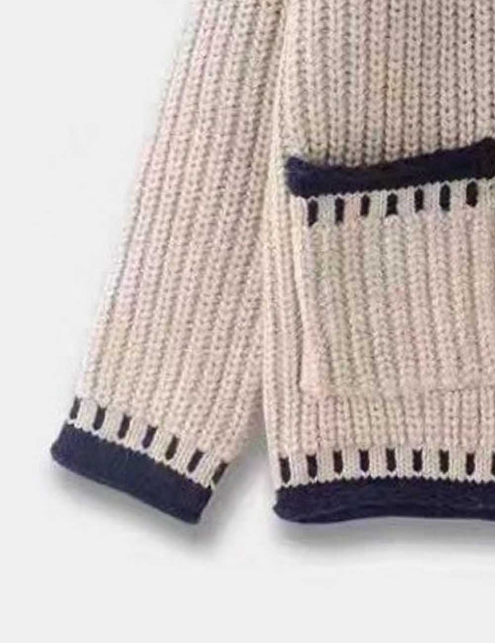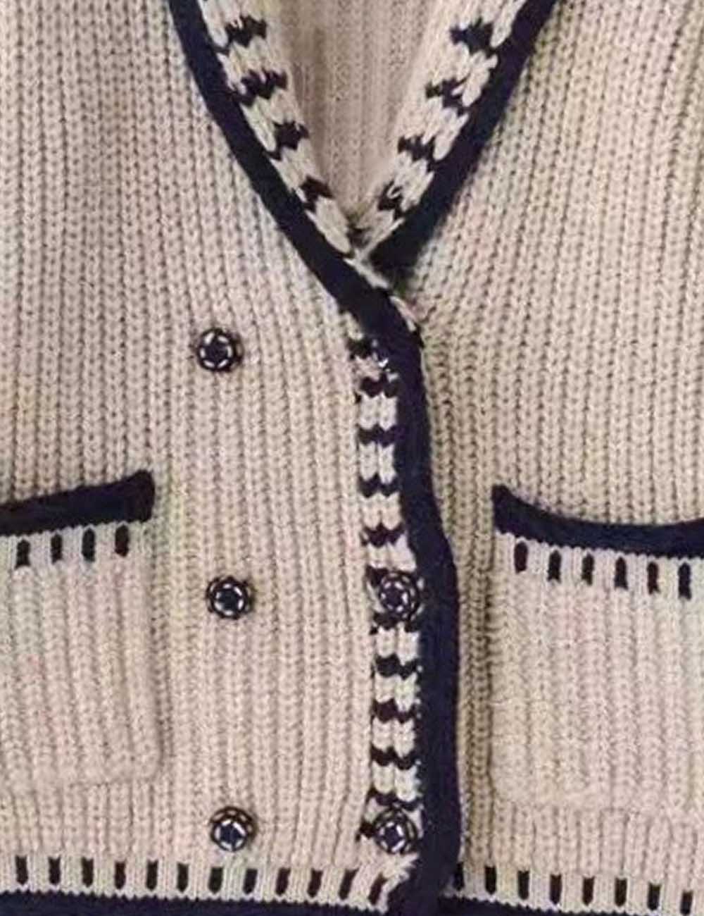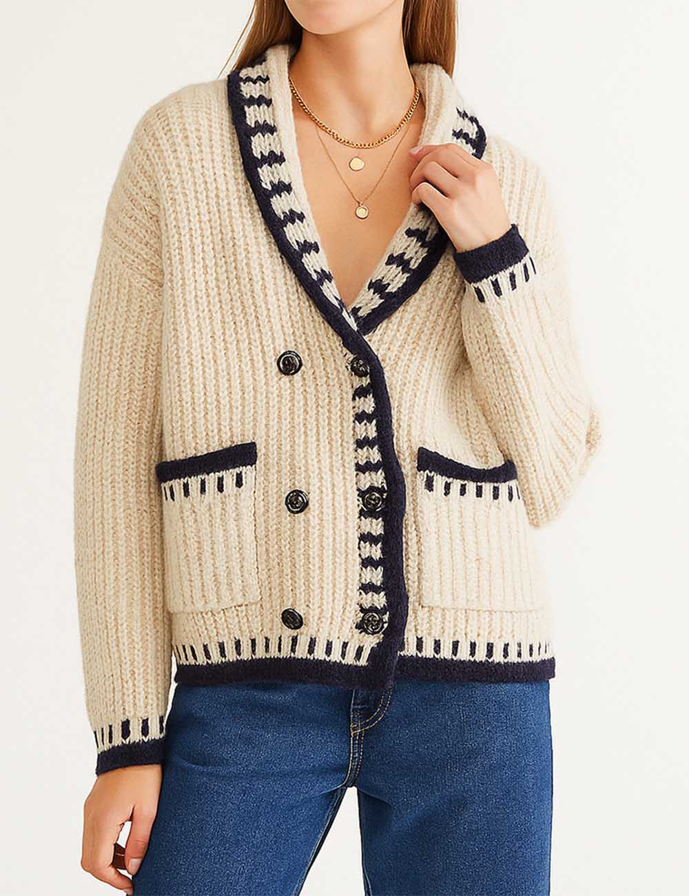 Ladies Color Block Shawl Collar Double-Breasted Chunky Cardigan