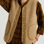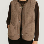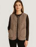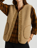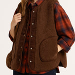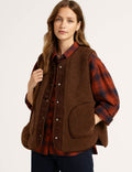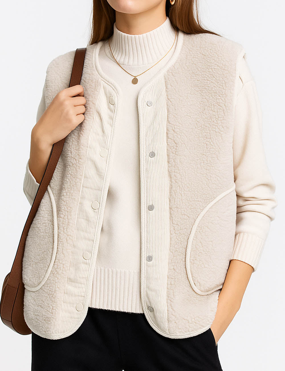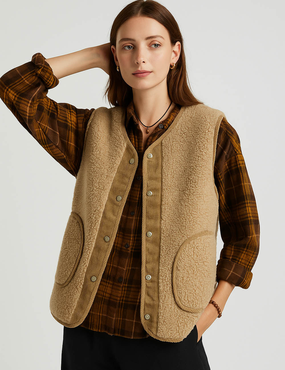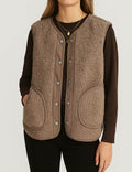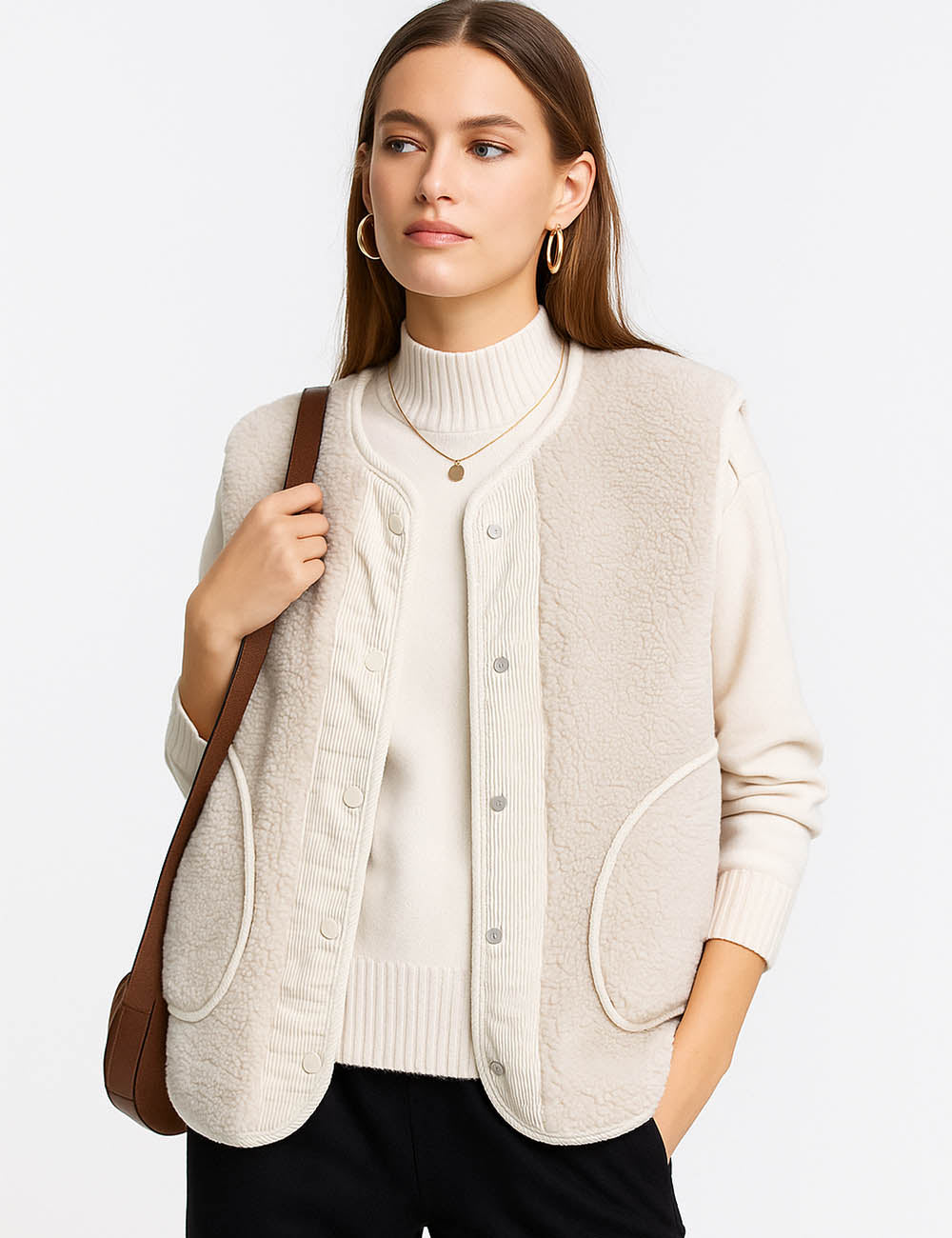 Ladies Color Block Sherpa Corduroy Trim Vest