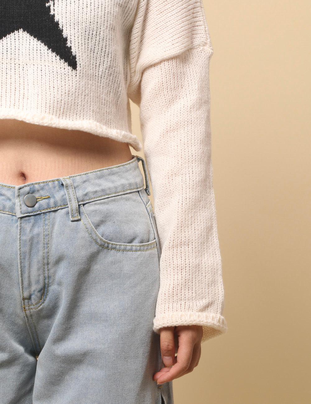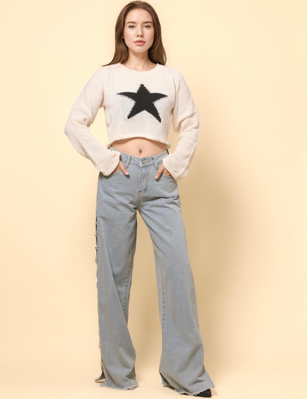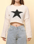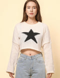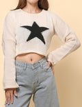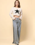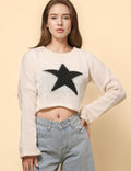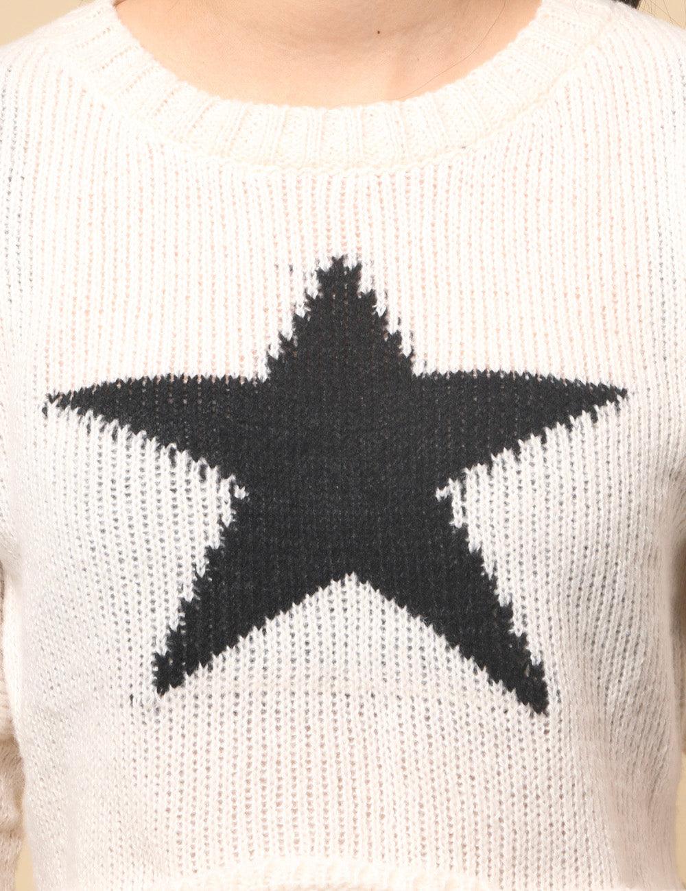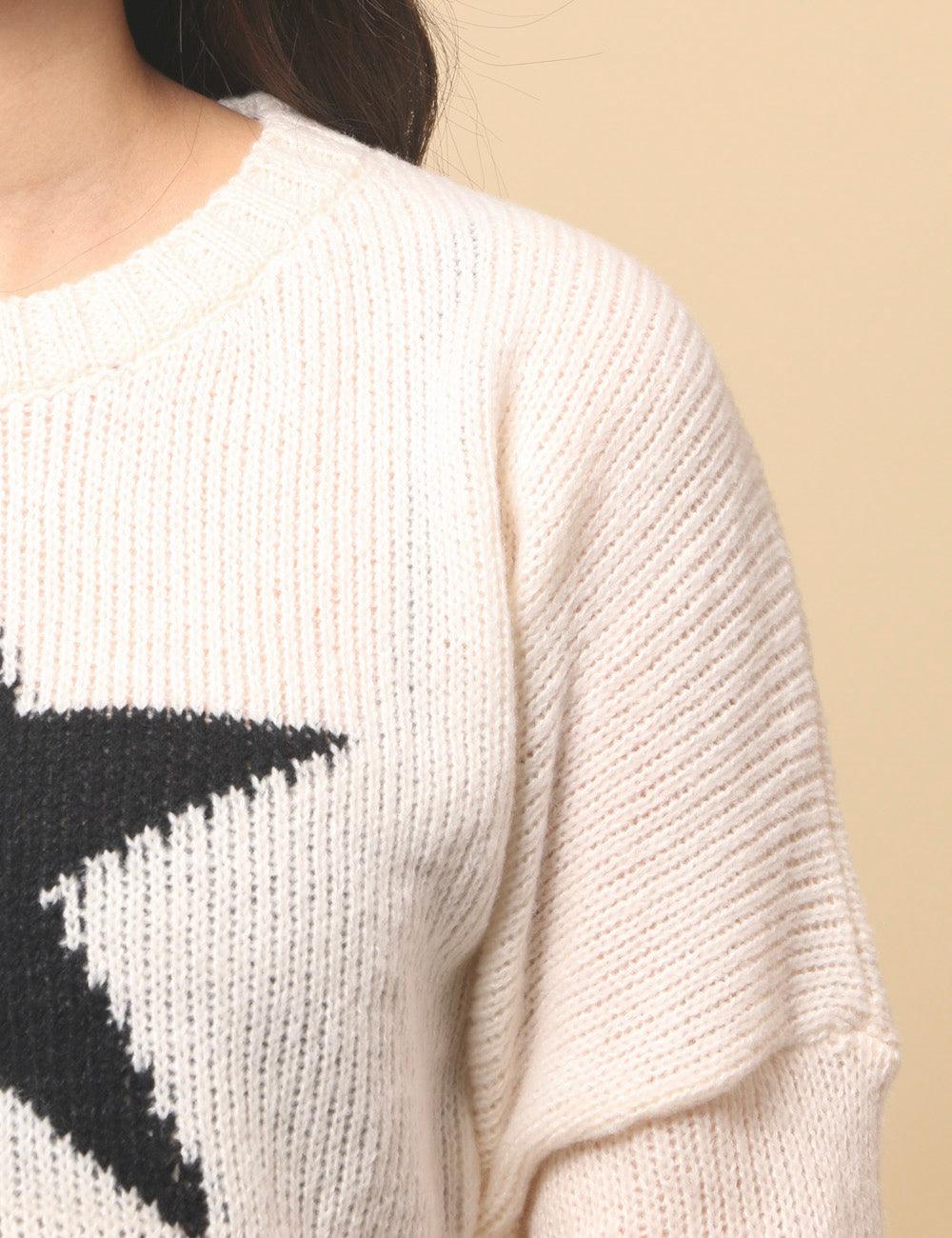 Ladies Color Block Star Pullover Sweater SKT4726