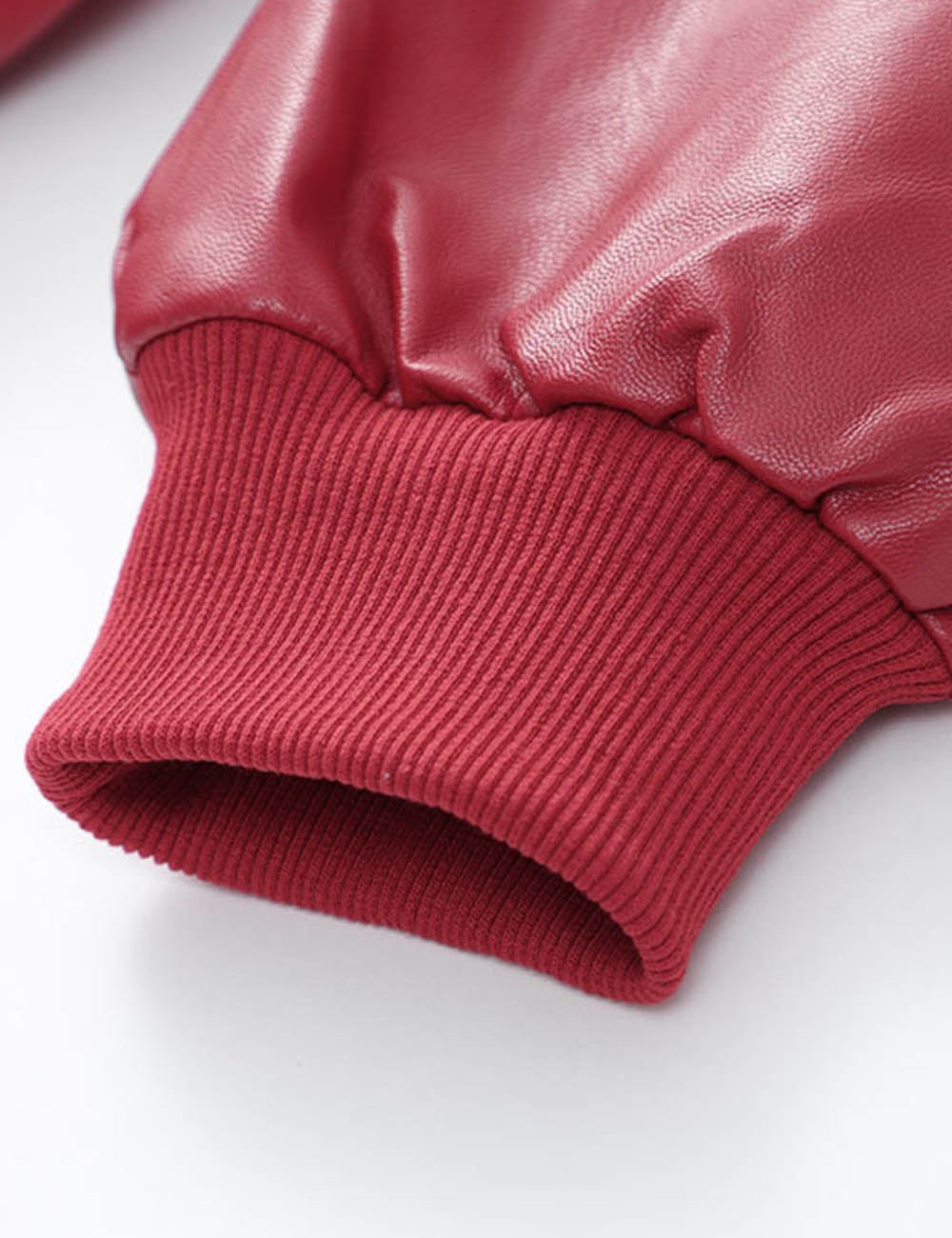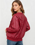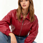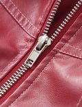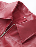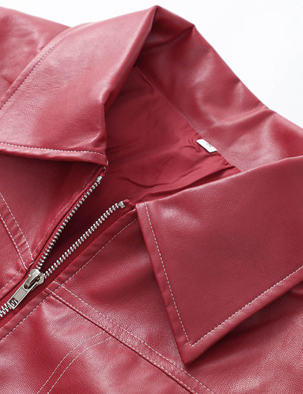 Ladies Contrast Topstitching Lapel Collar Zip-Up Leather Jackets