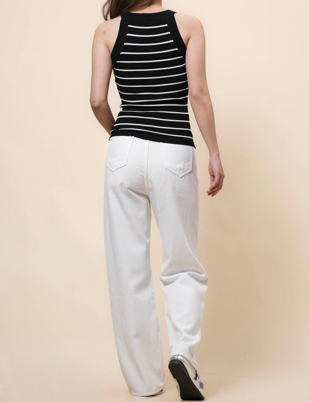 Ladies Color Block Stripe Knit Tank Top SKT41047