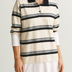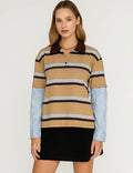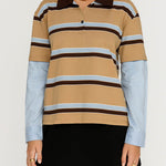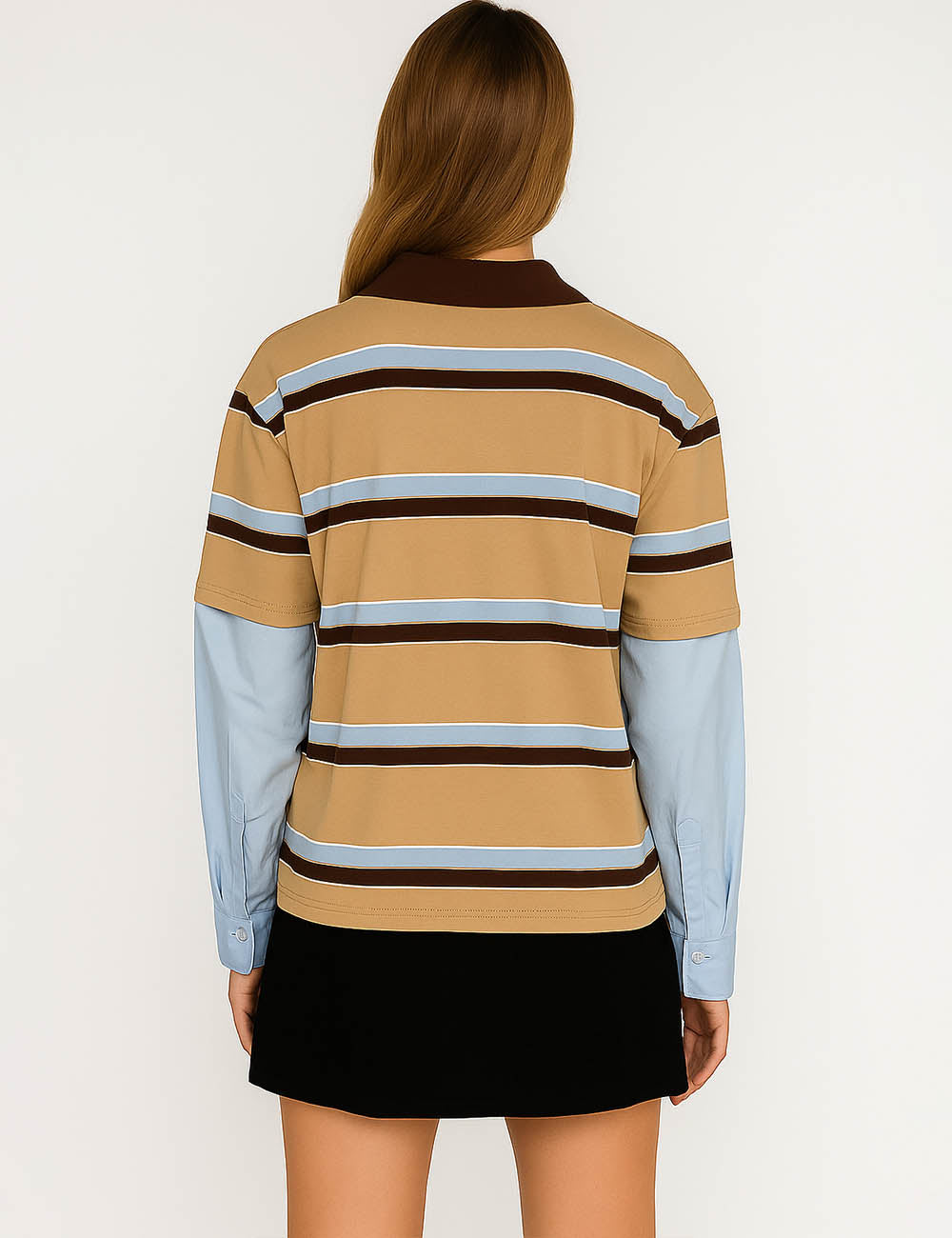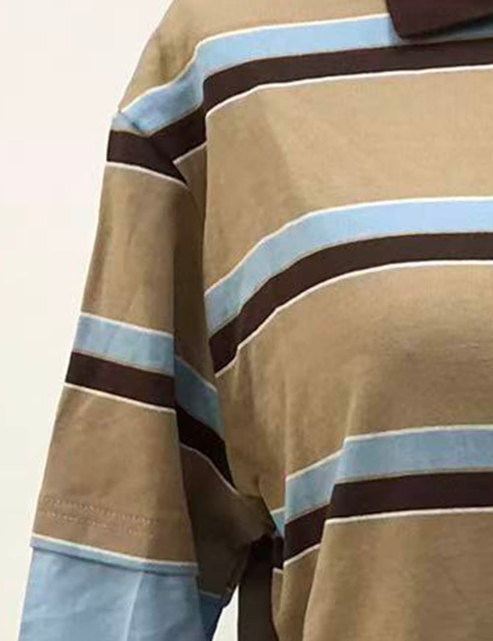 Ladies Color Block Stripe Lapel Pullover Top Everyday Sweatshirt