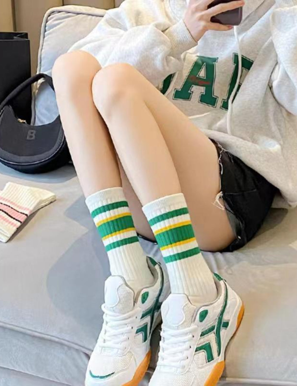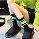 Ladies Color Block Stripe Over Ankle Socks SKASC4161