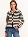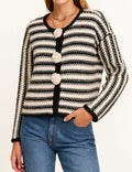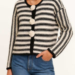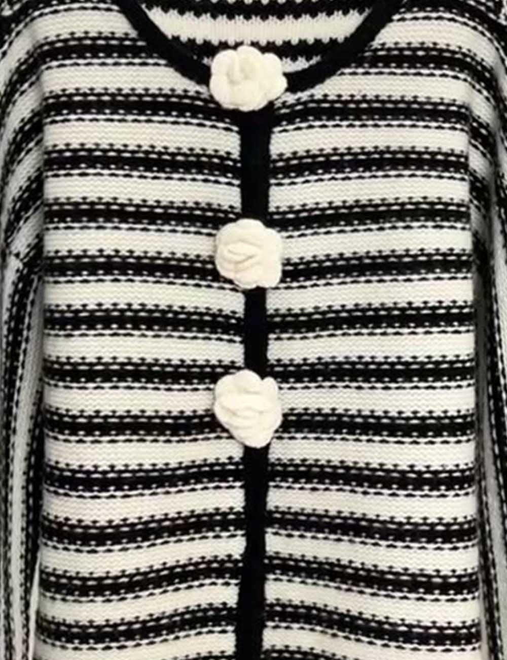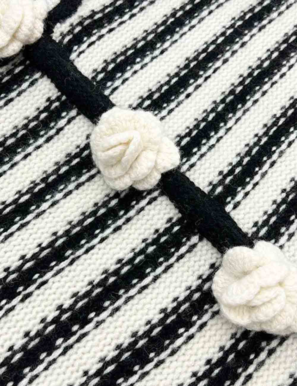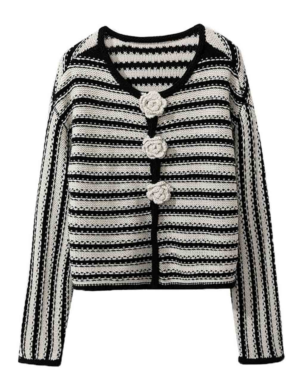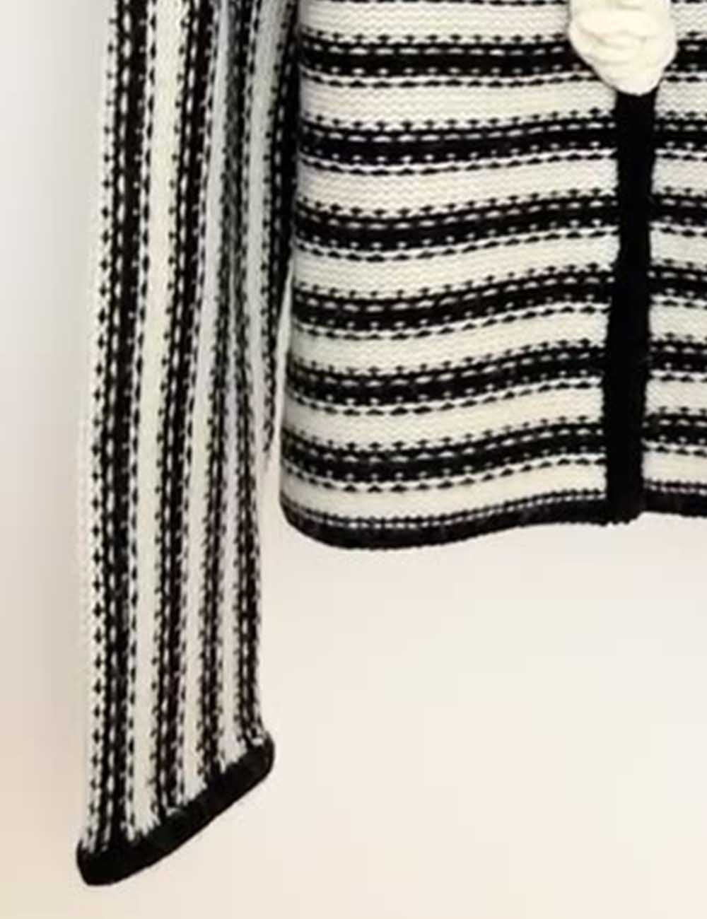 Ladies Color Block Striped Crochet Flower Knit Cardigan