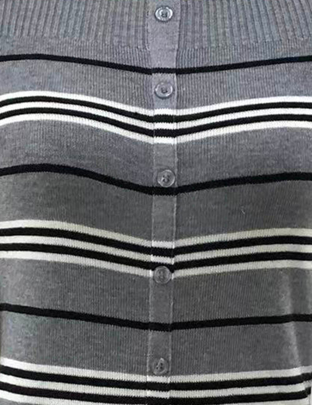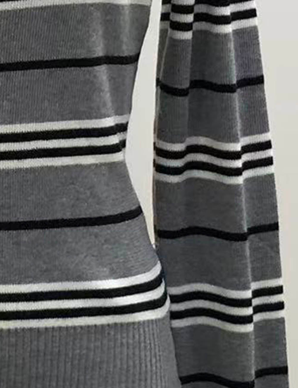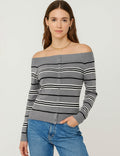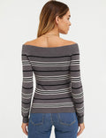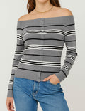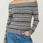 Ladies Color Block Striped Folder Off-Shoulder Knit Top Everyday Blouse