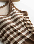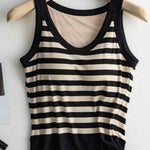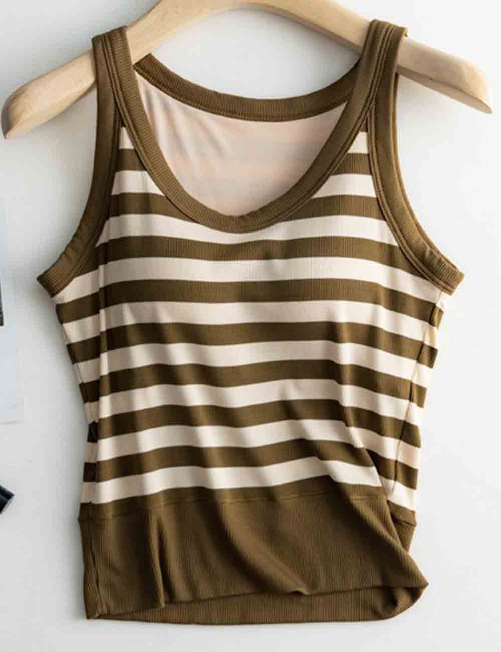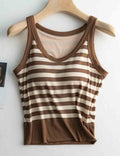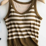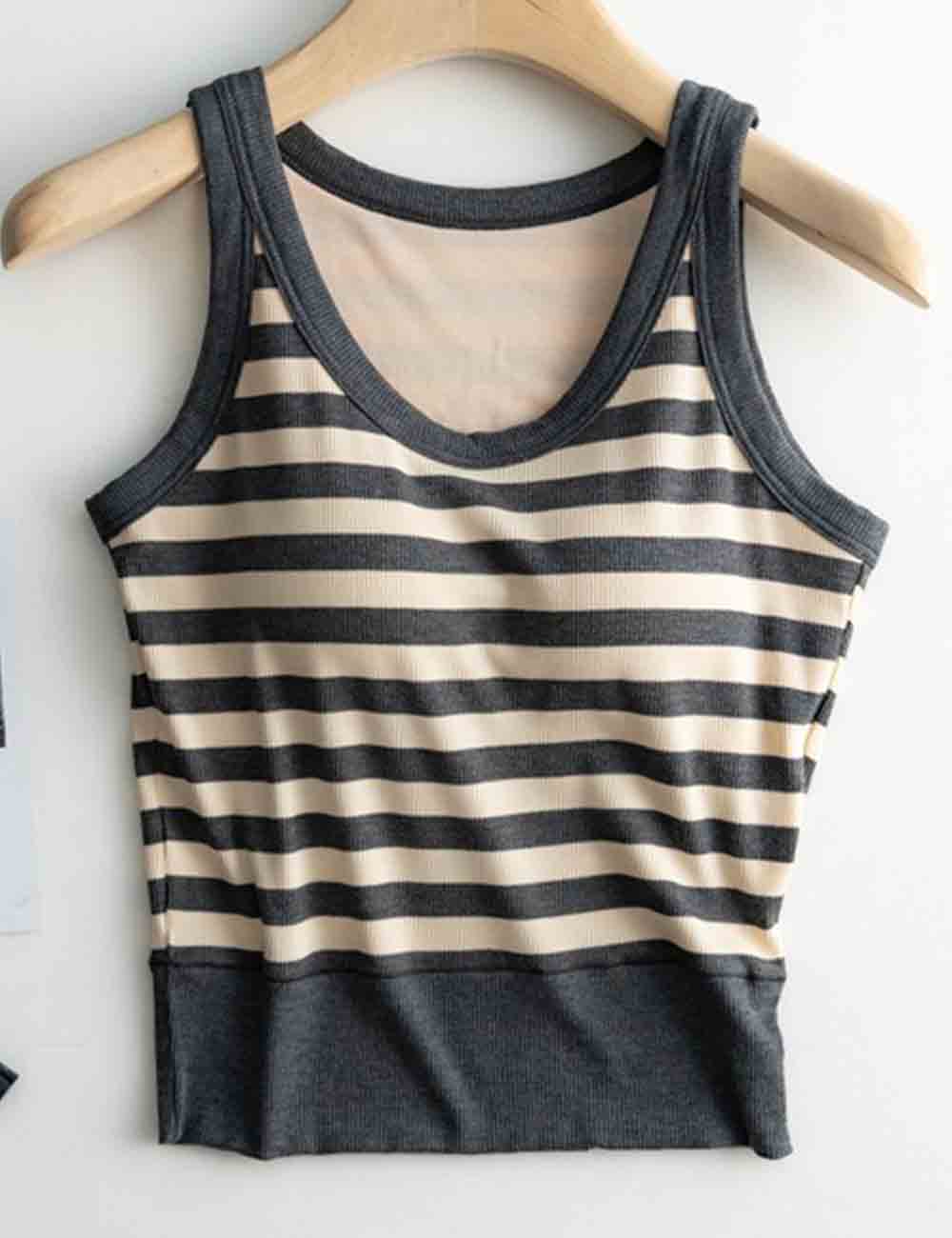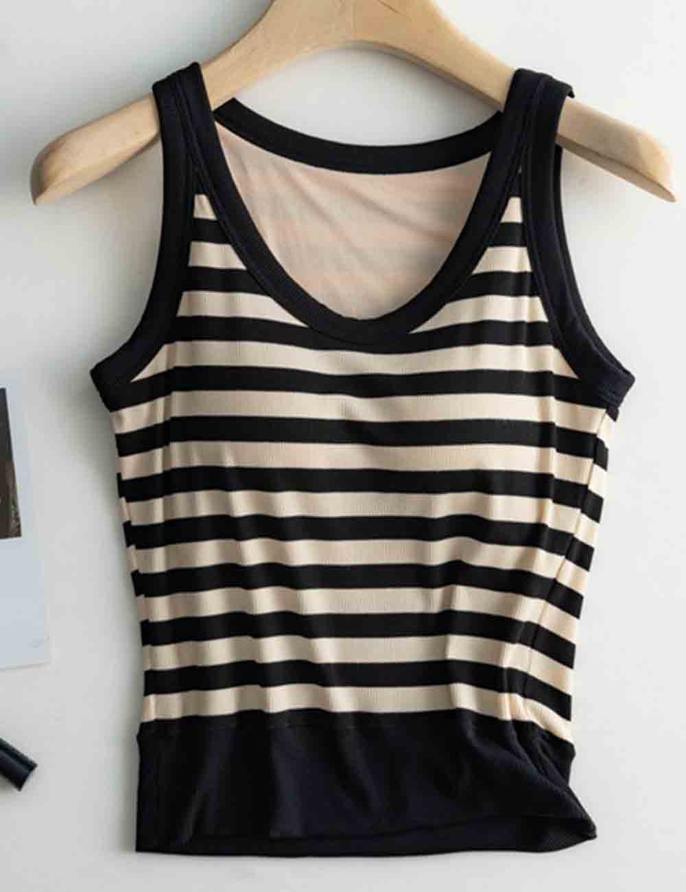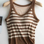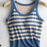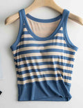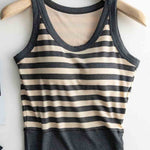 Ladies Color Block Striped Shelf Bra Strap Shoulder Tank Top