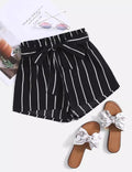 Ladies Color Block Striped String Tie Loungewear Shorts