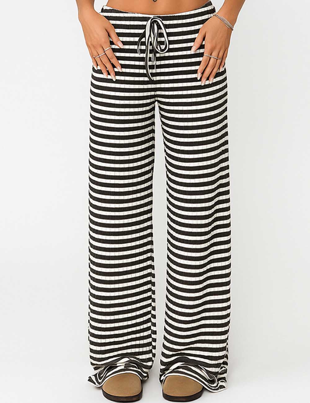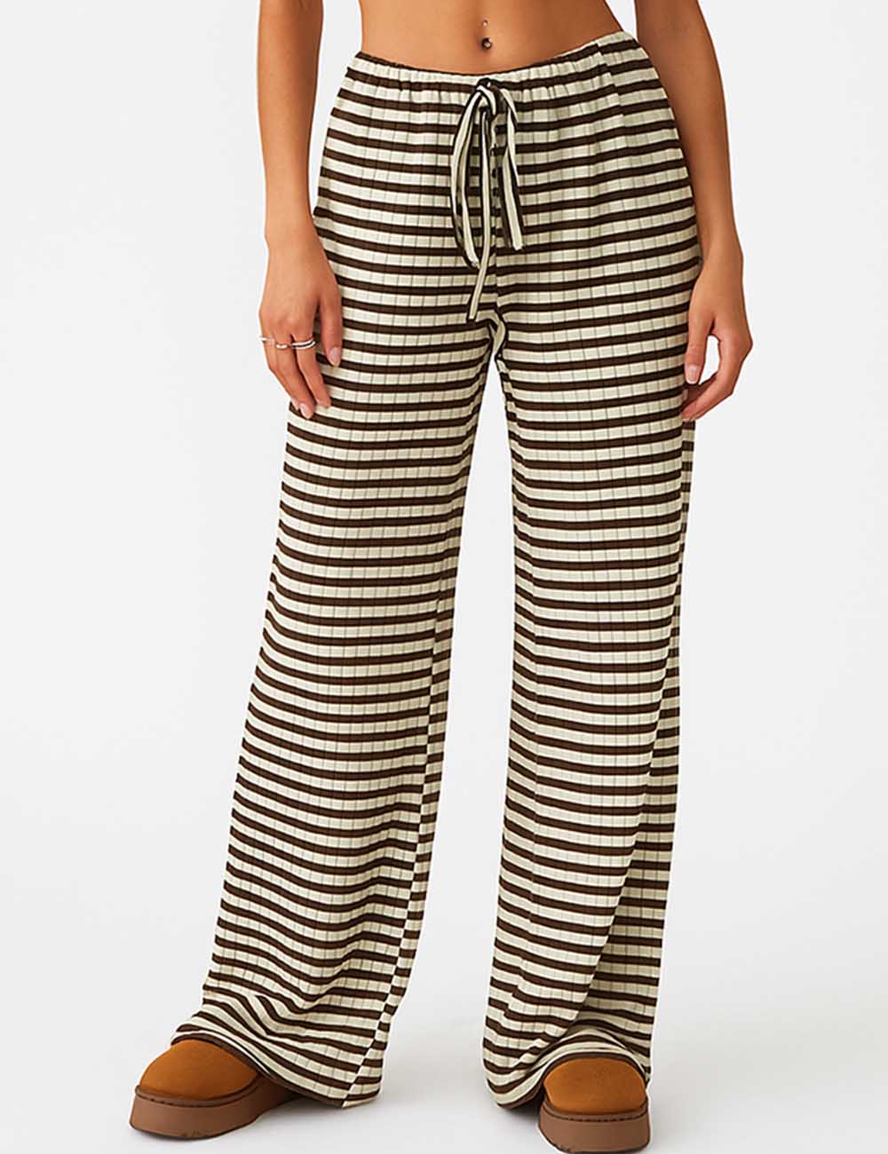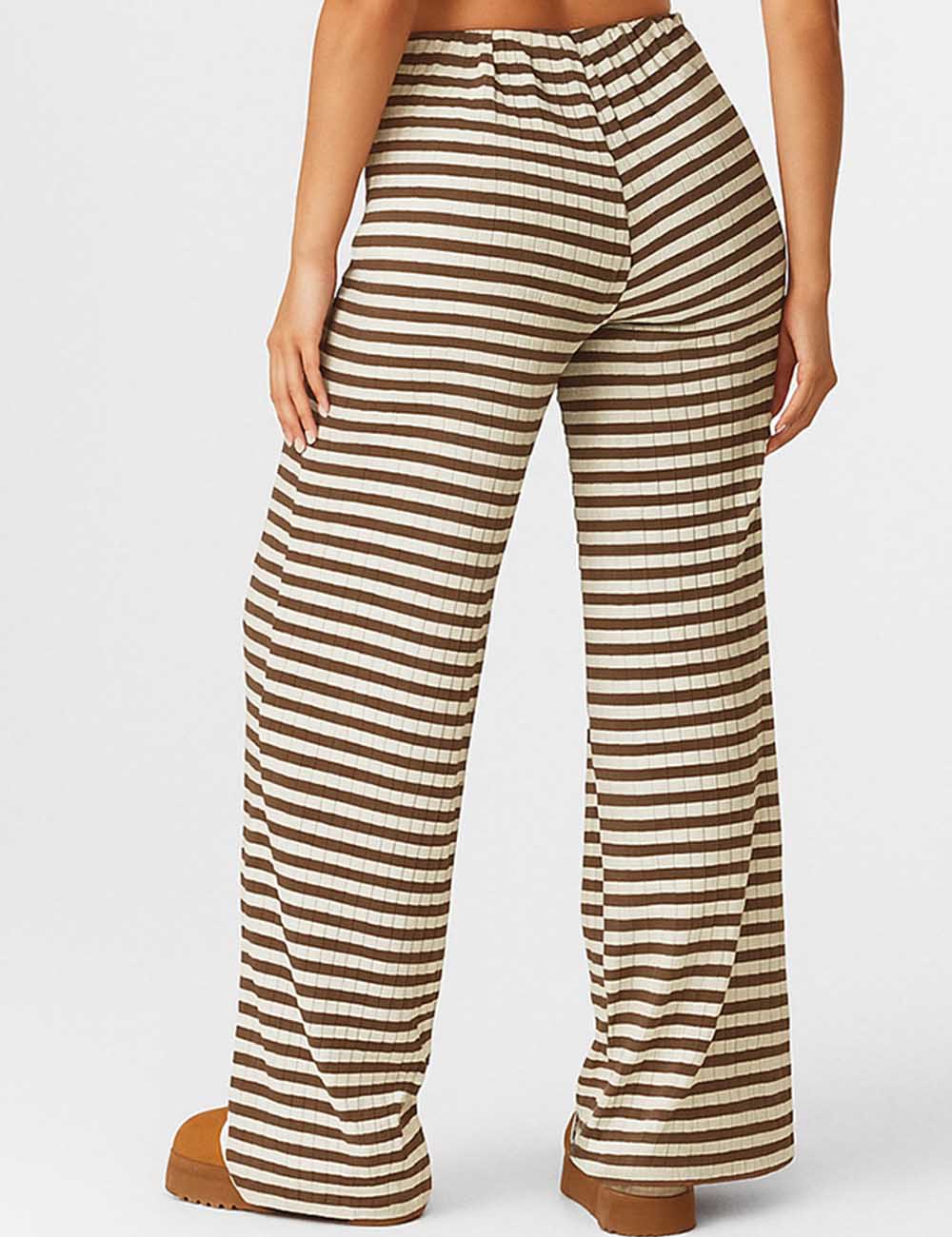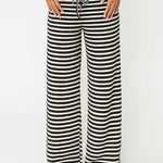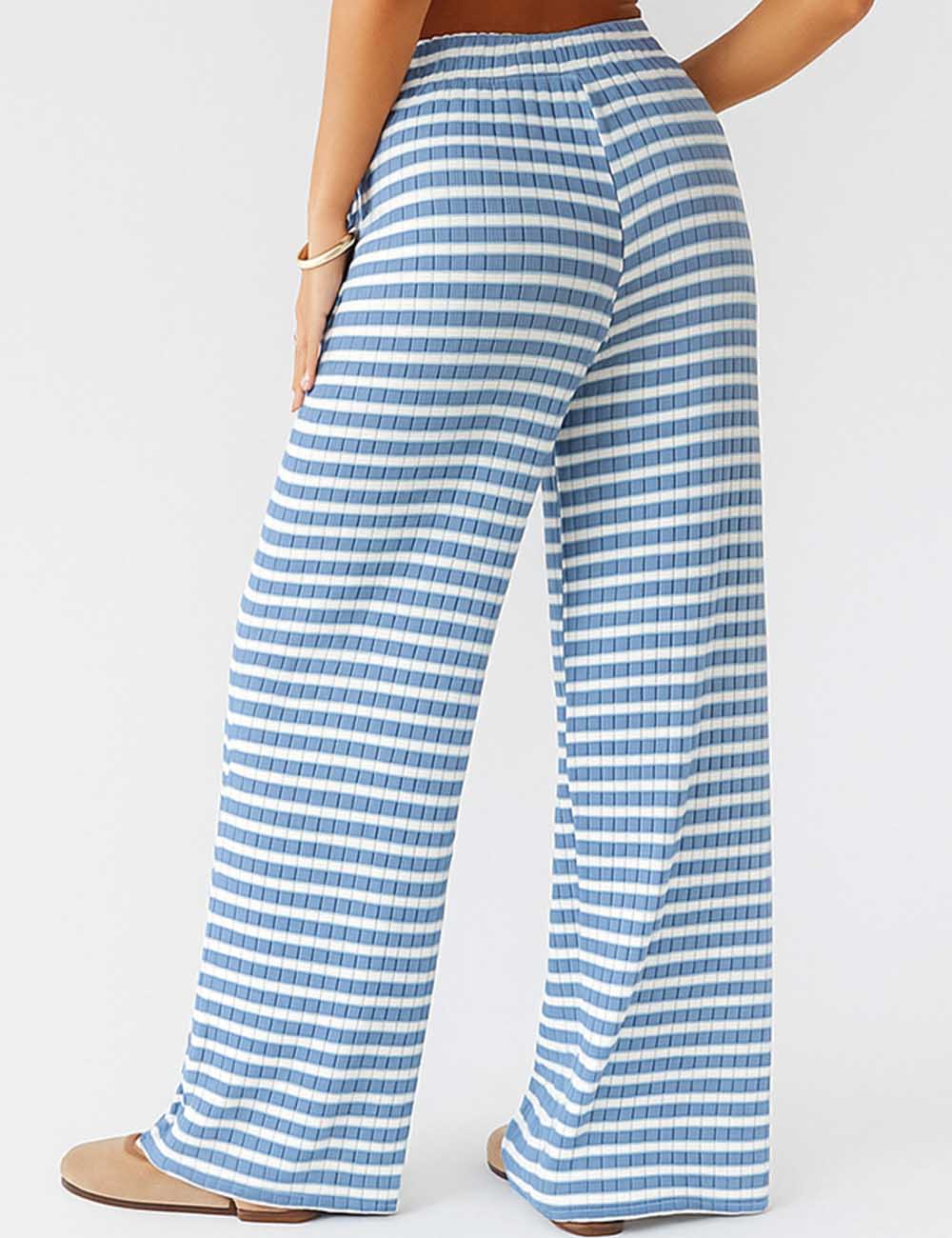 Ladies Color Block Striped String Tie Wide Leg Pants