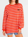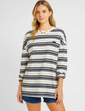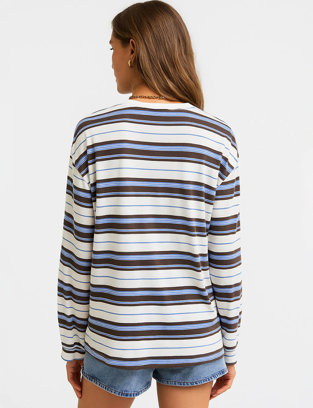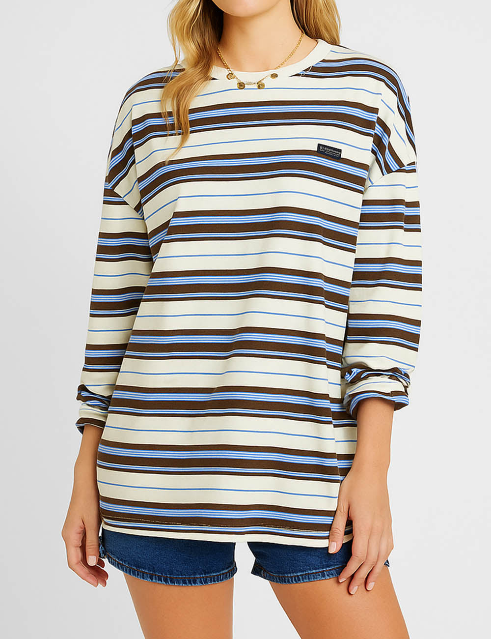 Ladies Color Block Striped T-Shirts Long Sleeves Sweatshirt