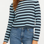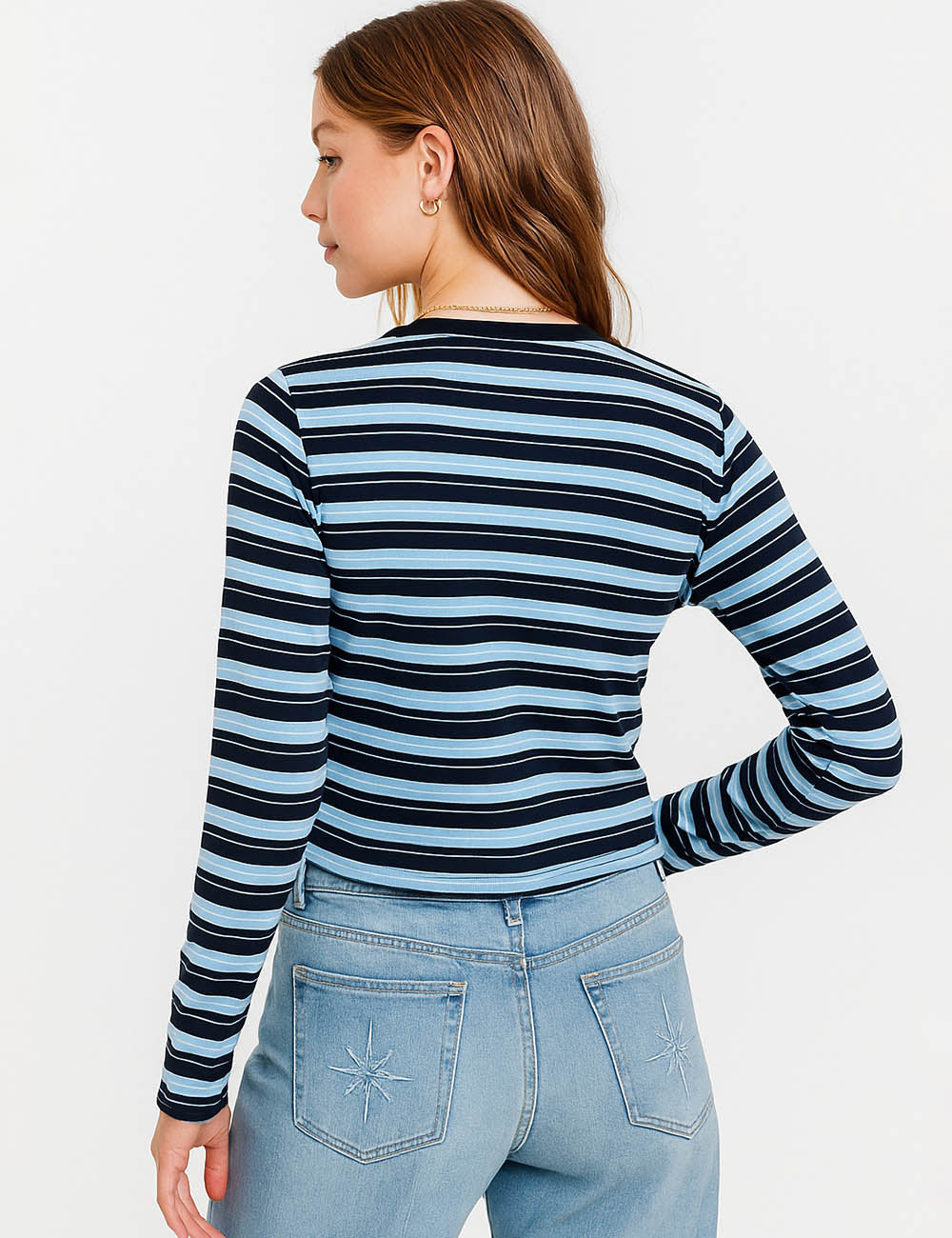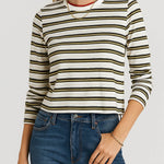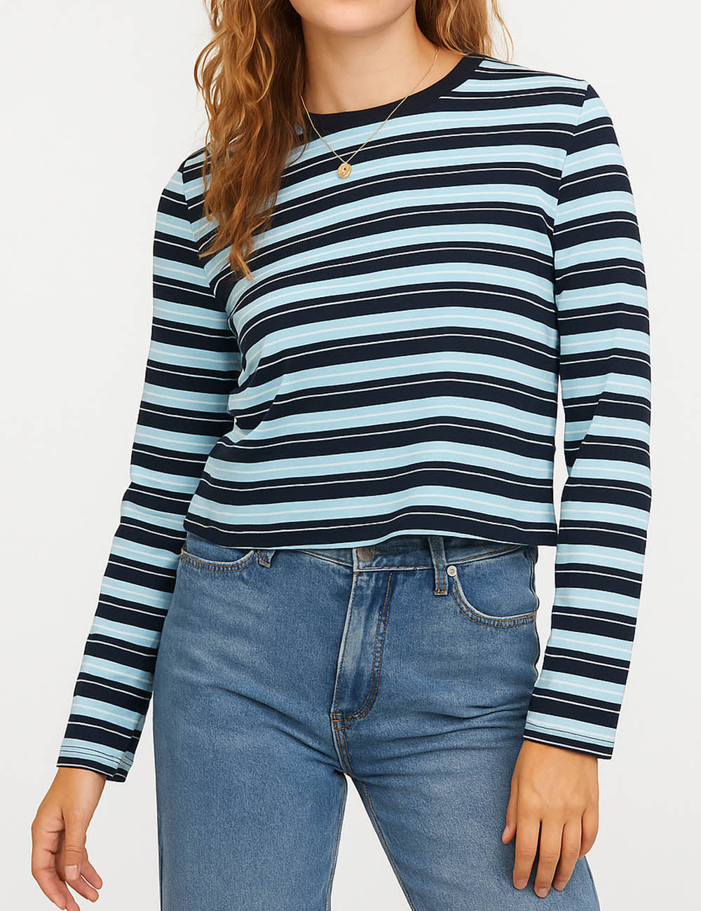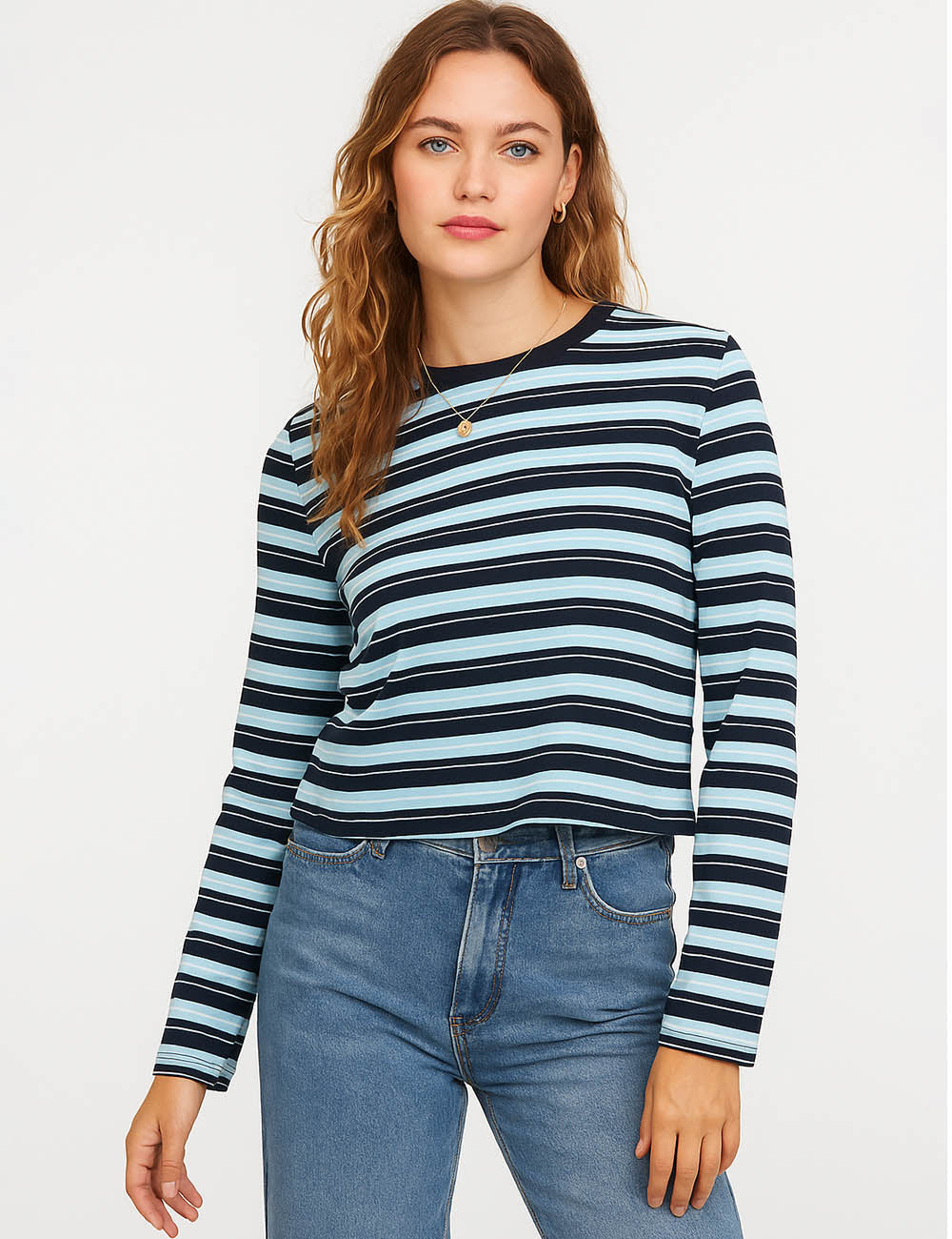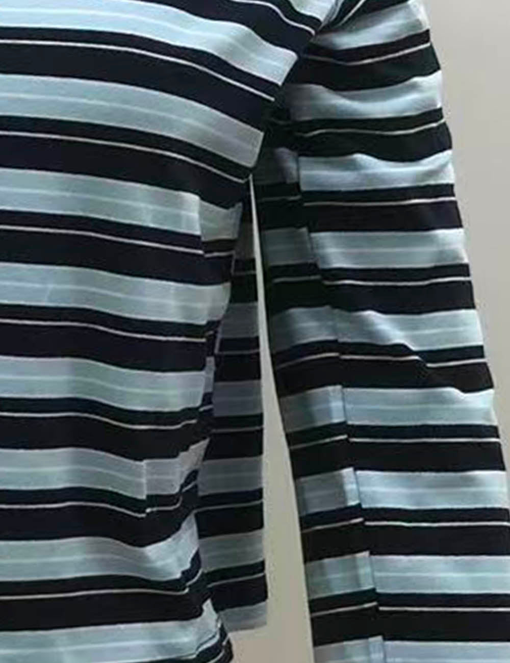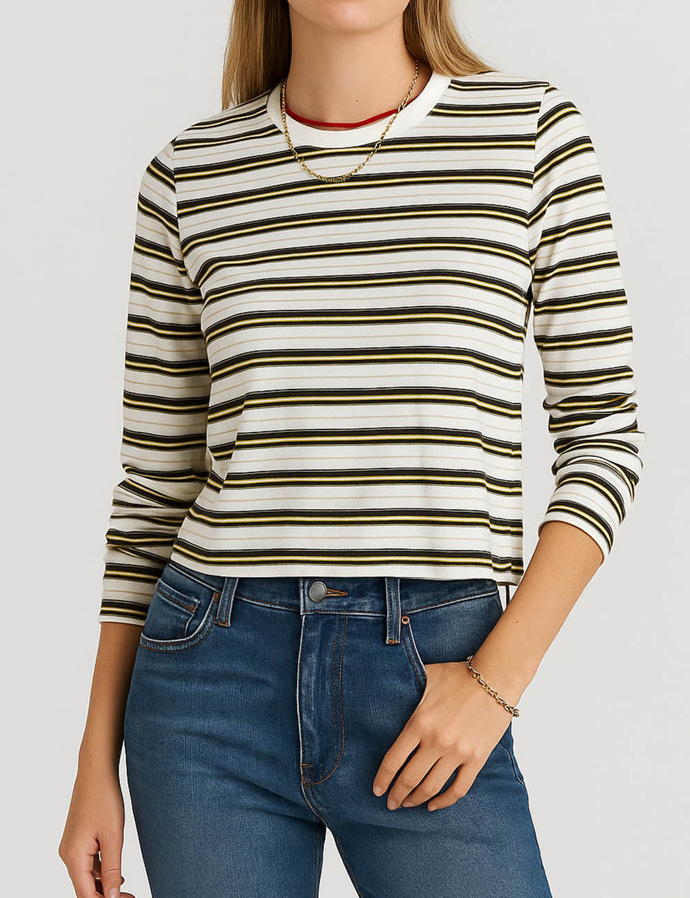 Ladies Color Block Striped Top Long Sleeves Cropped T-Shirts