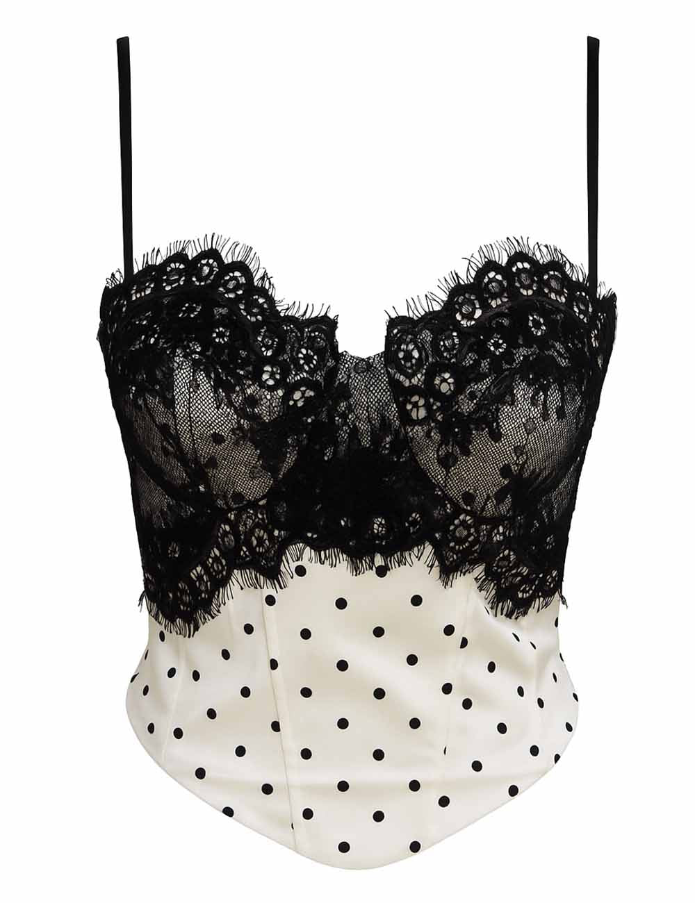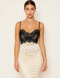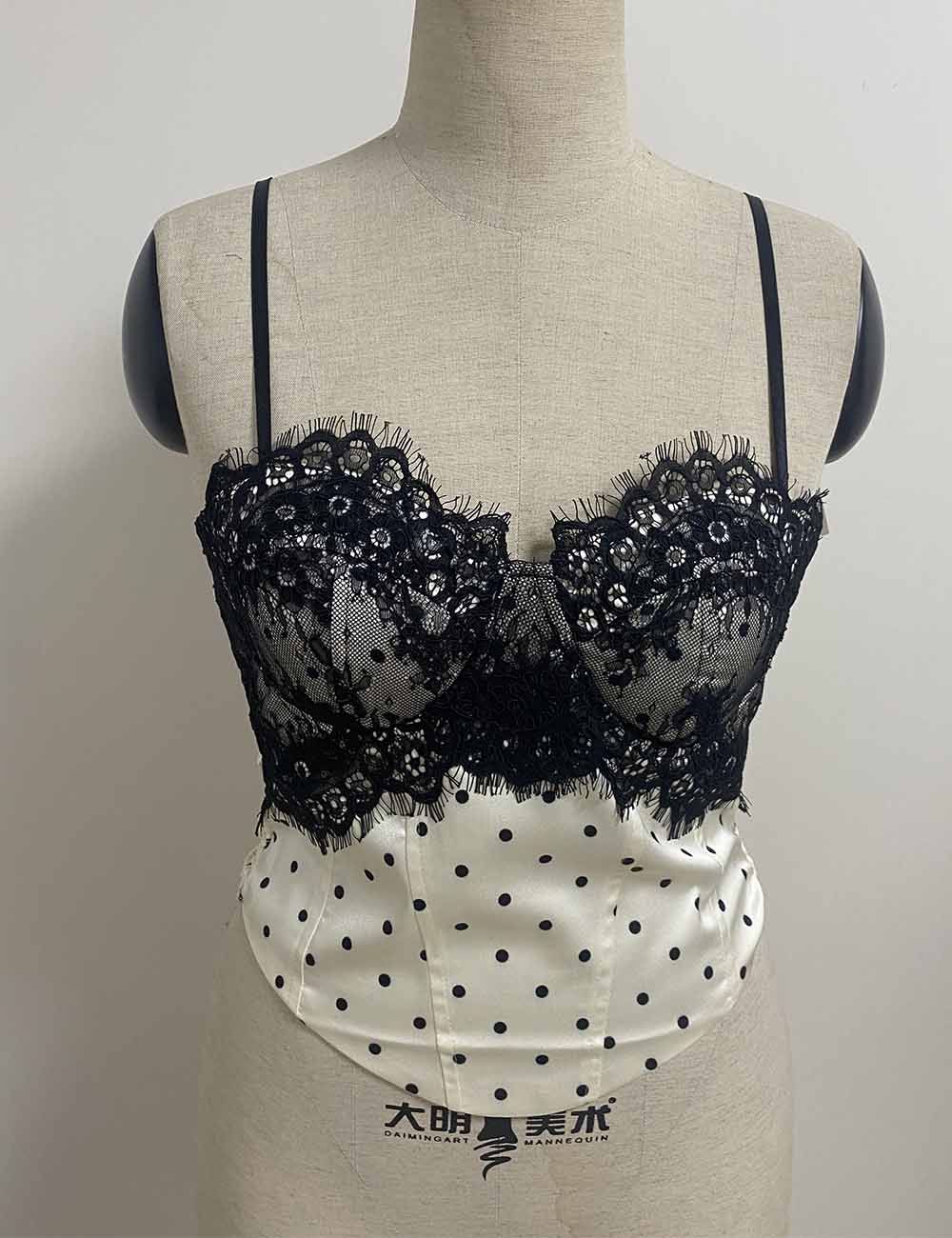 Ladies Color Block Sweetheart Neckline Lace Dot Corset Top