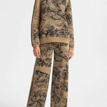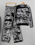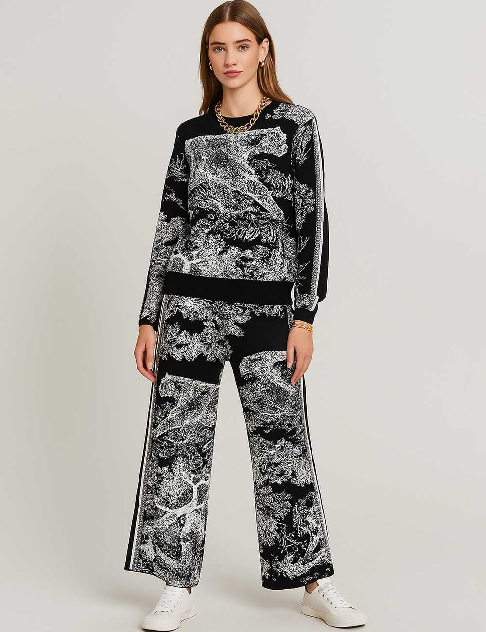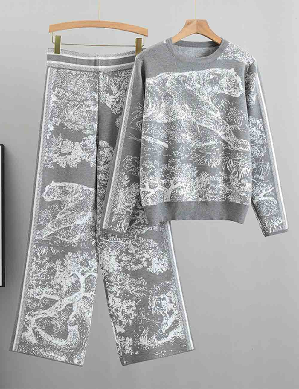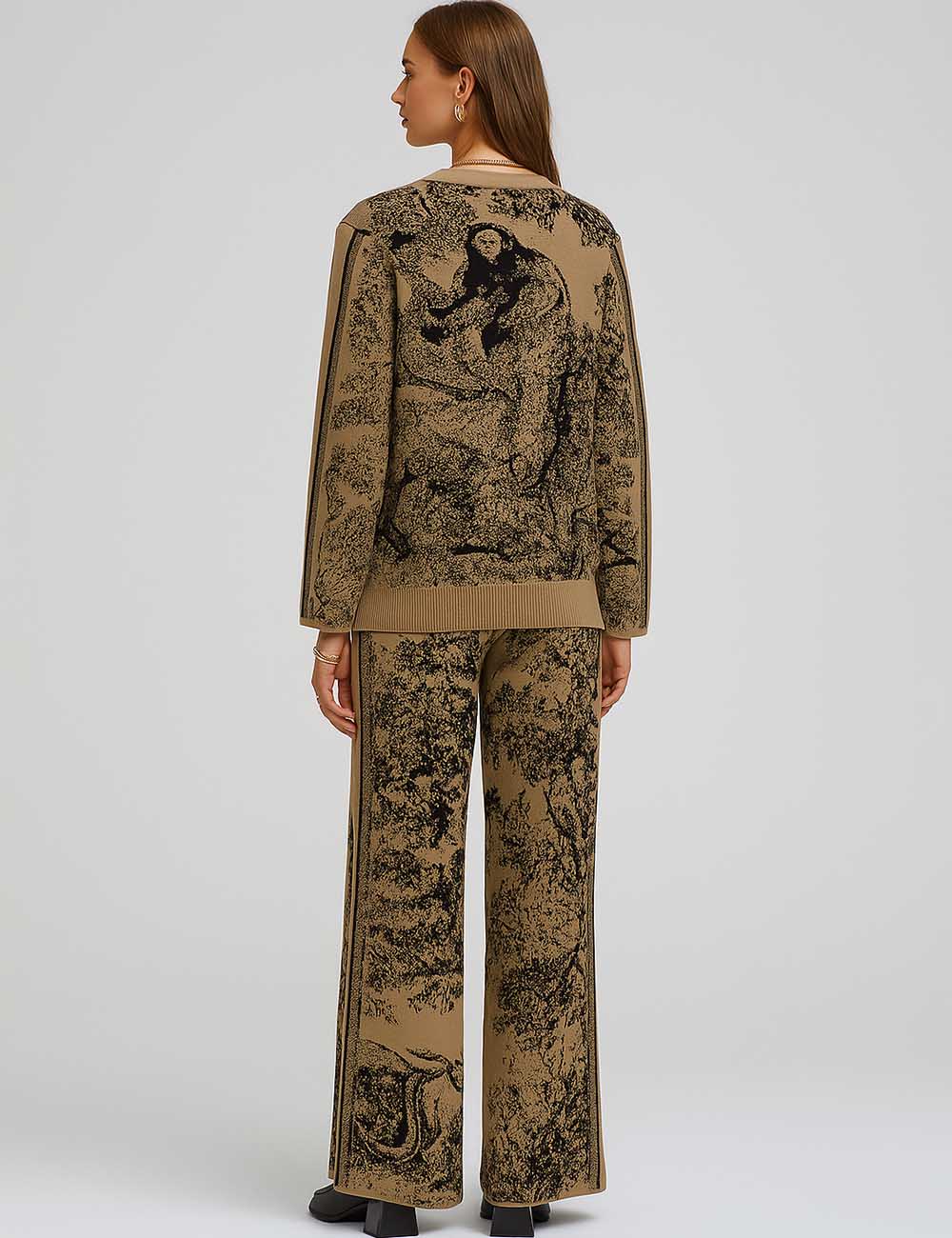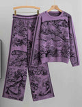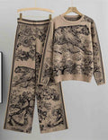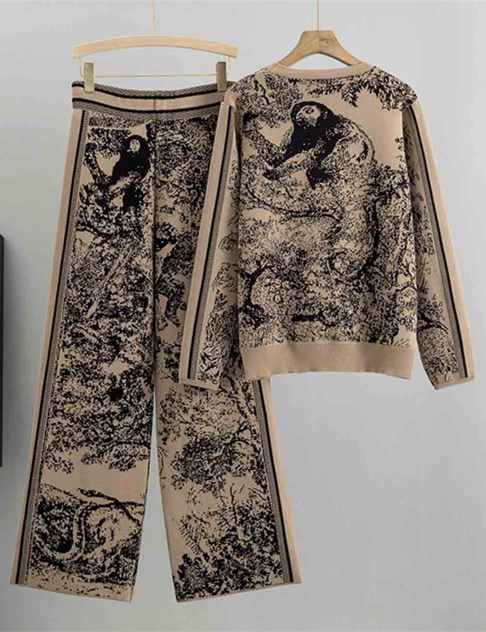 Ladies Color Block Tiger Pattern Knit Sweater & Pants 2PCS Set
