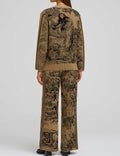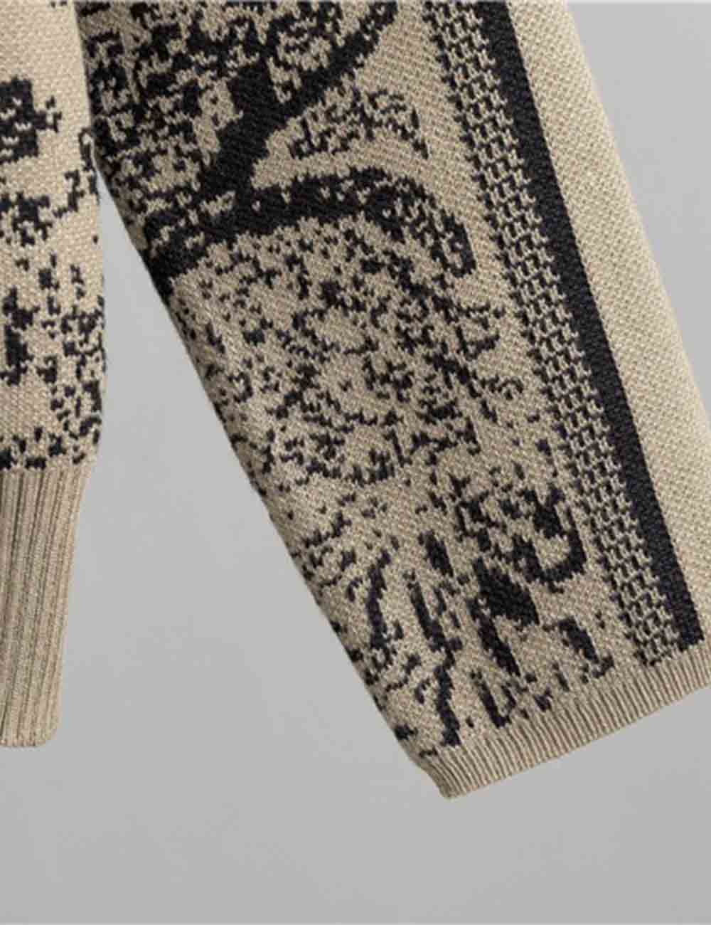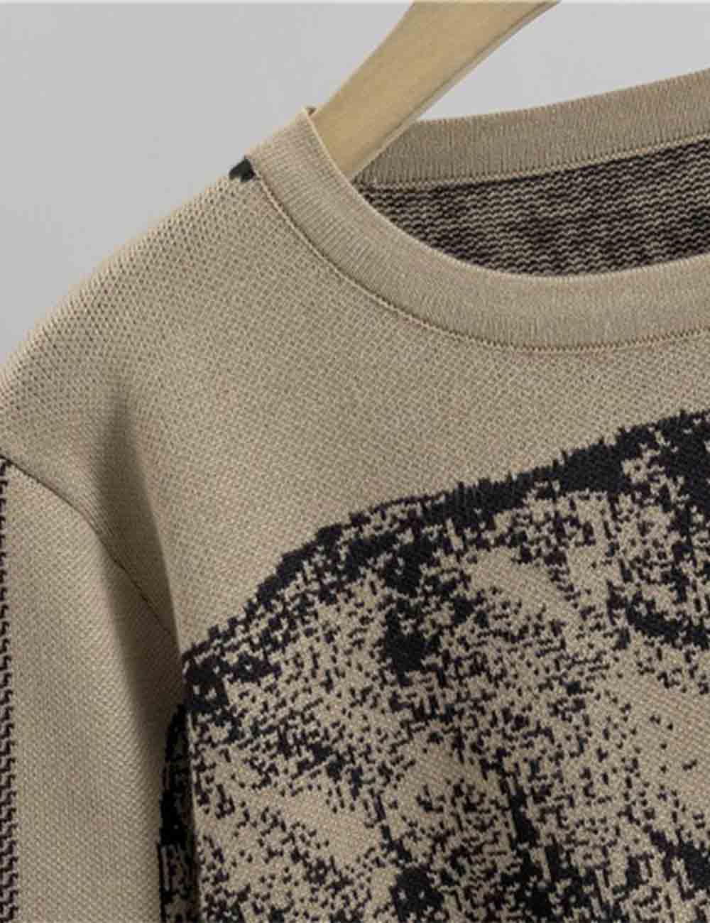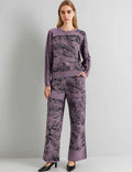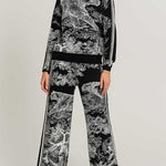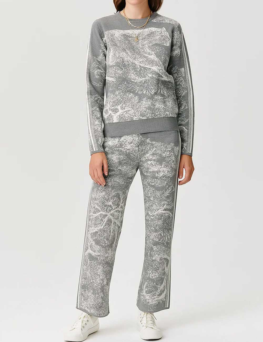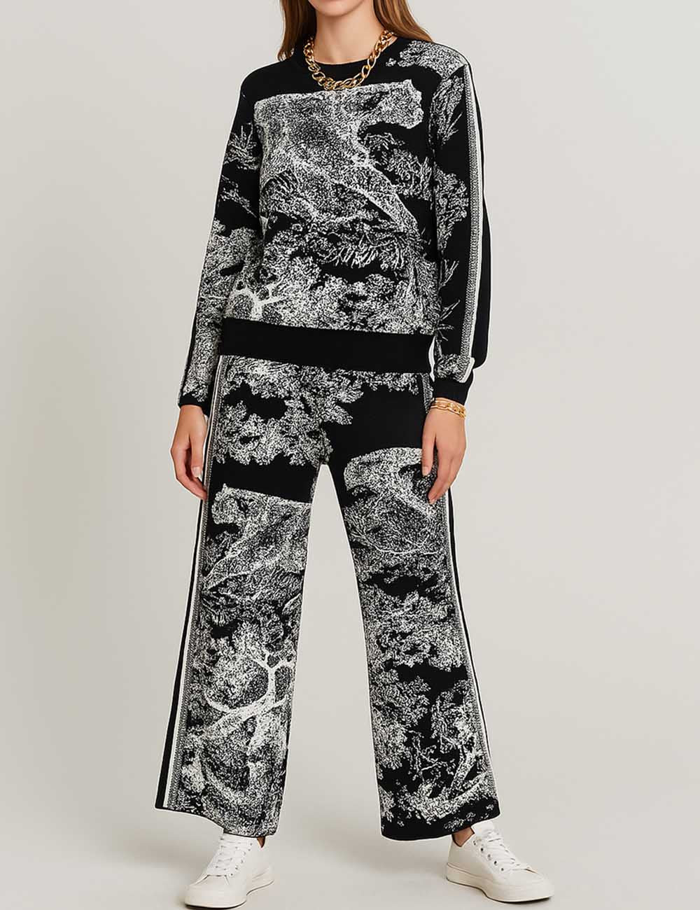 Ladies Color Block Tiger Pattern Knit Sweater & Pants 2PCS Set