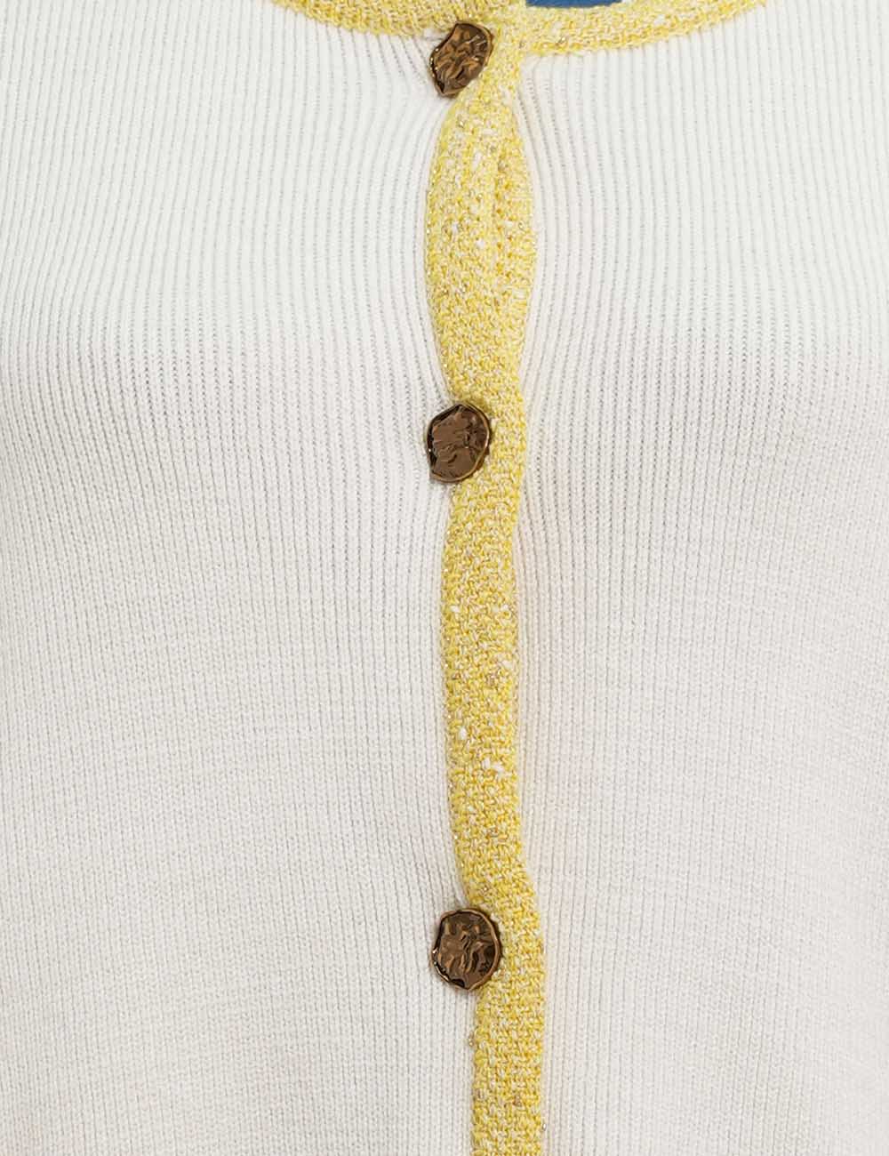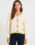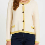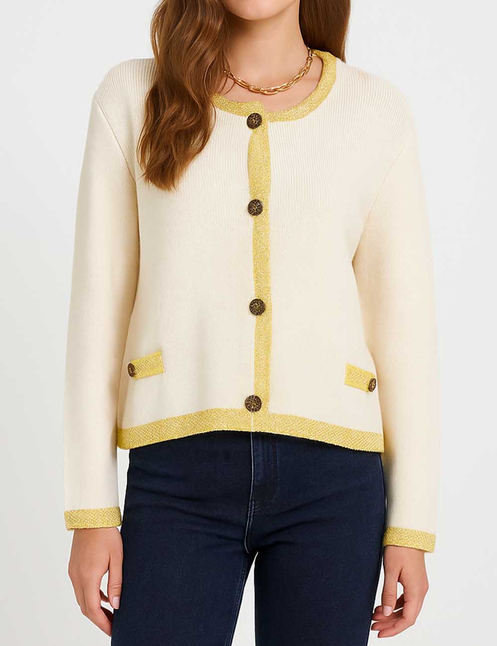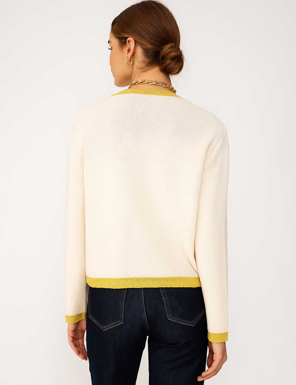 Ladies Color Block Tweeed Round Neck Button Knit Cardigan