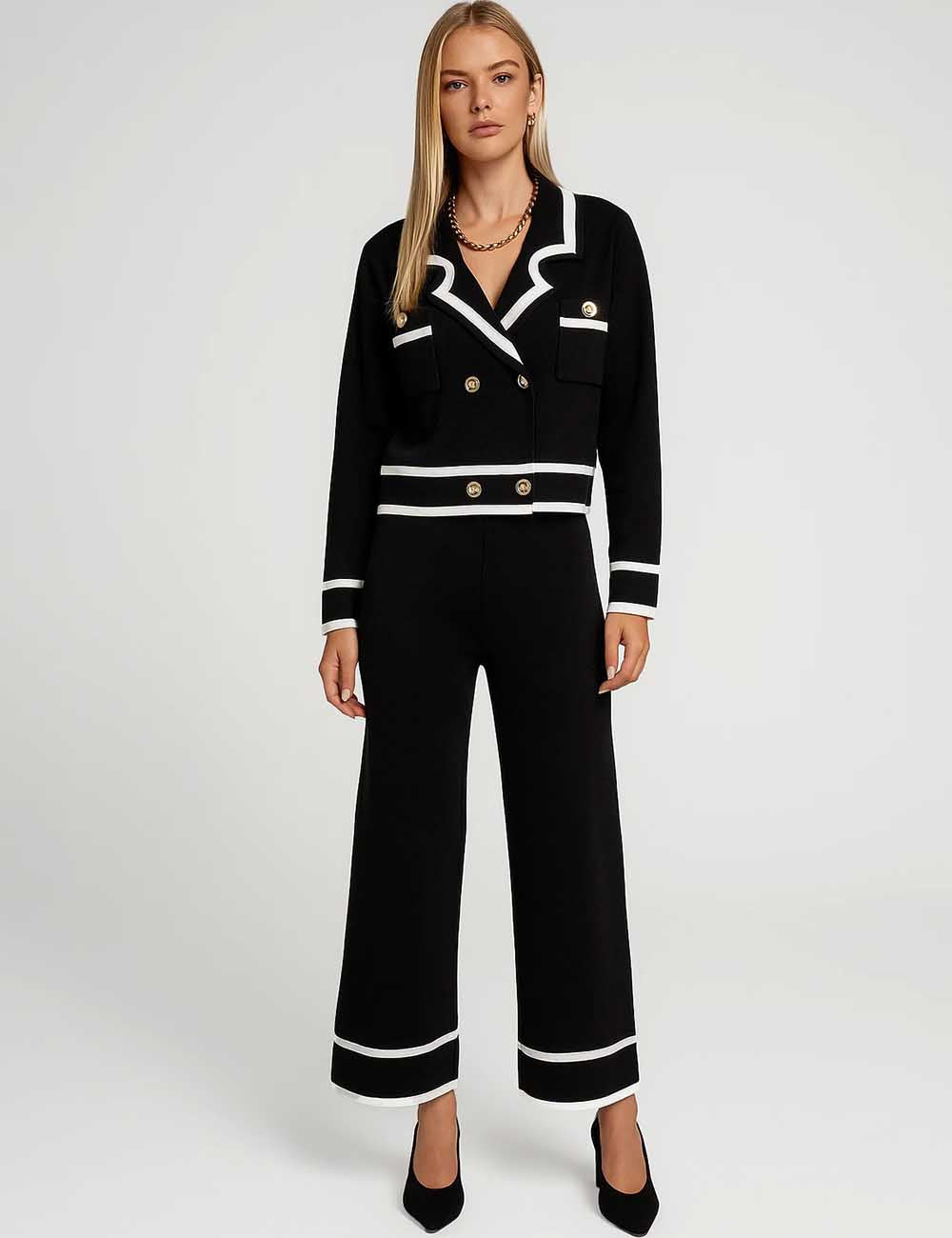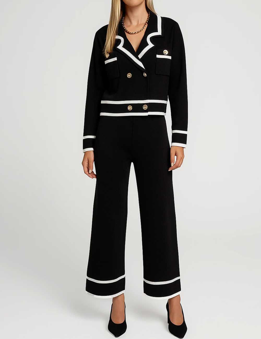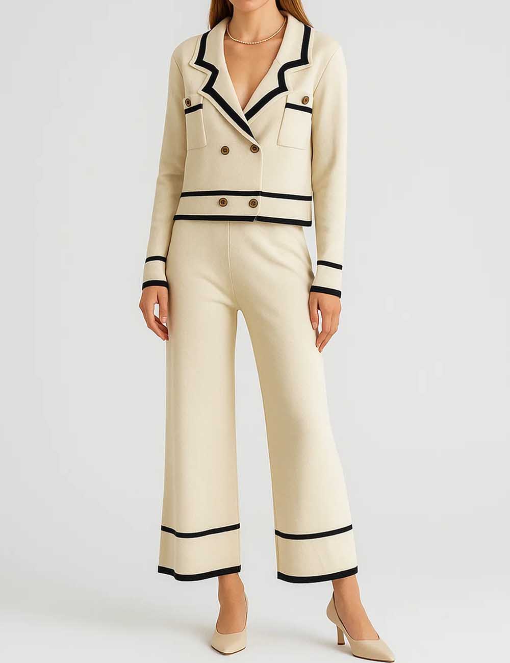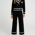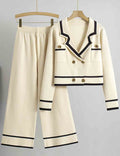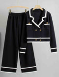 Ladies Color Block V-Neck Knit Top & Pants Set