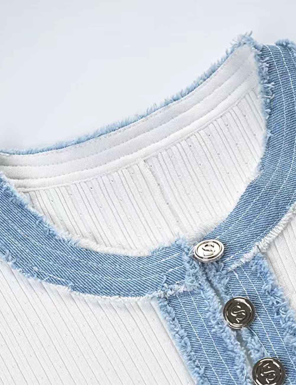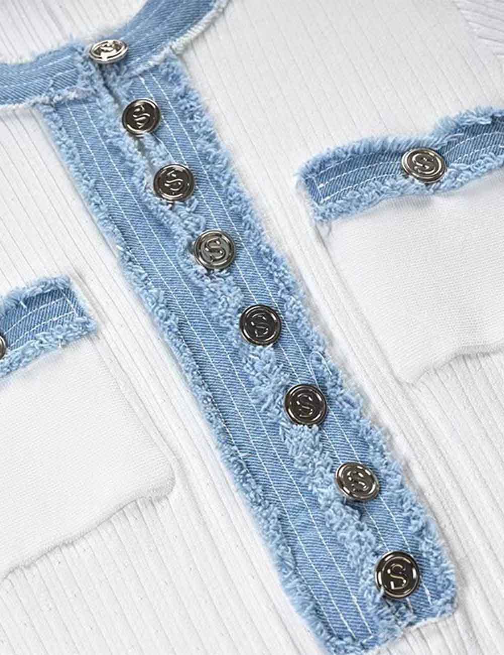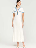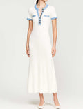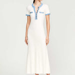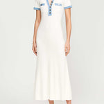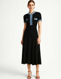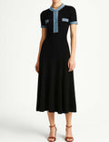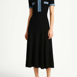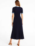 Ladies Color Block V-Neck Short Sleeves Knit Midi Dress