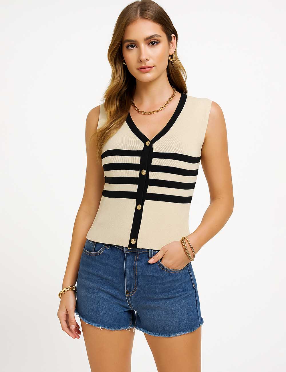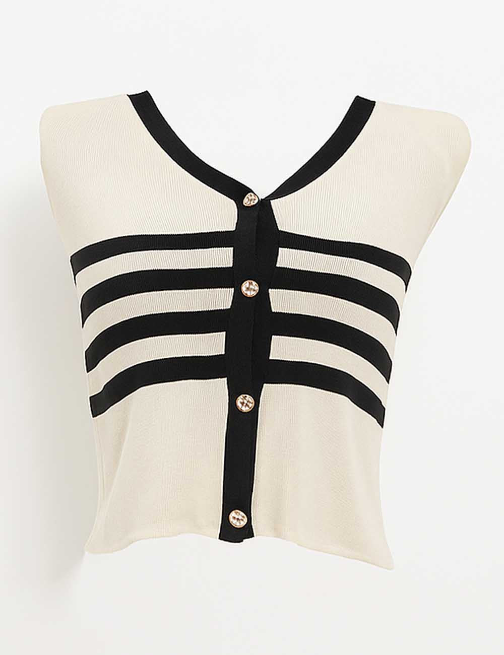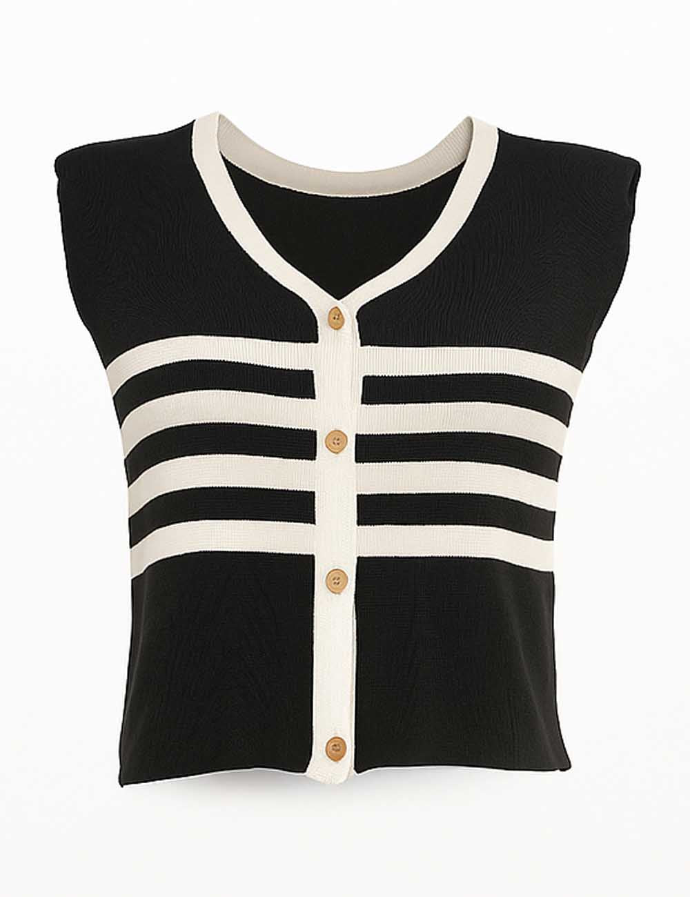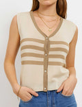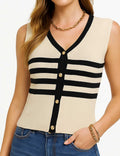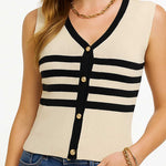 Ladies Color Block V-Neck Sleeveless Knit Vest
