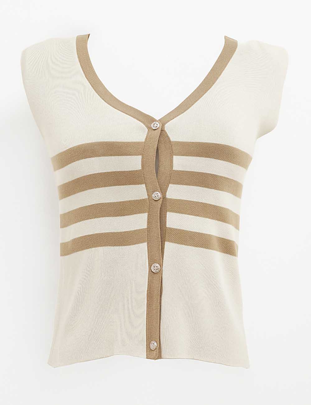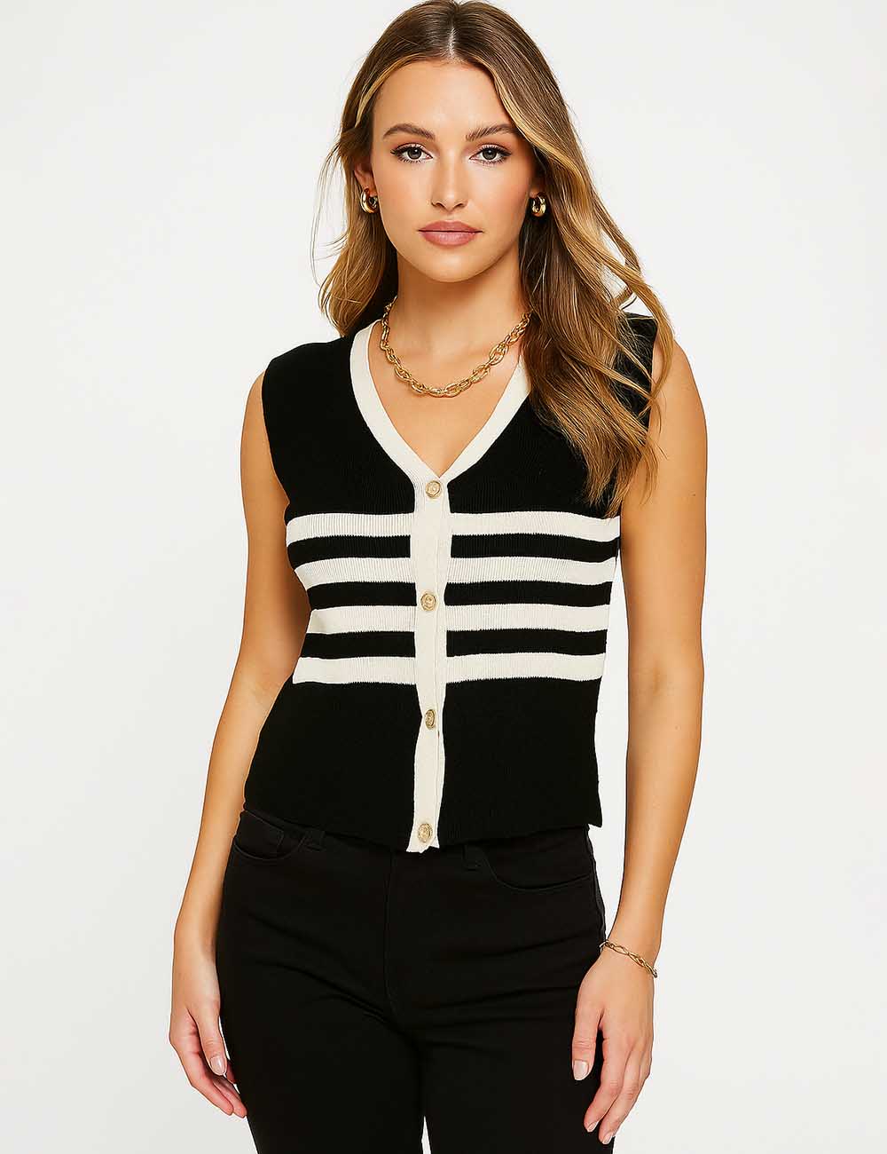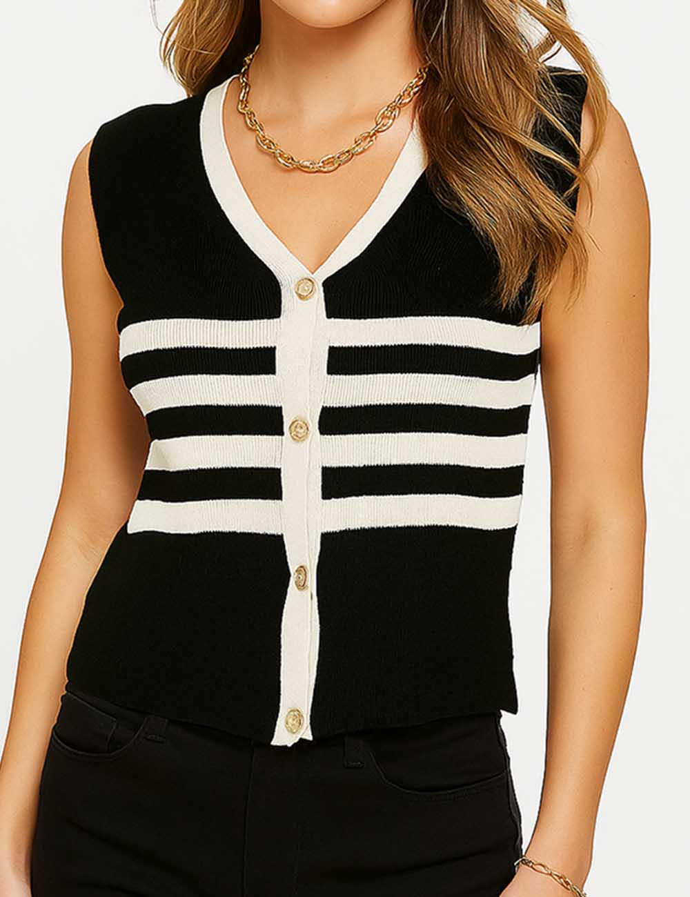 Ladies Color Block V-Neck Sleeveless Knit Vest