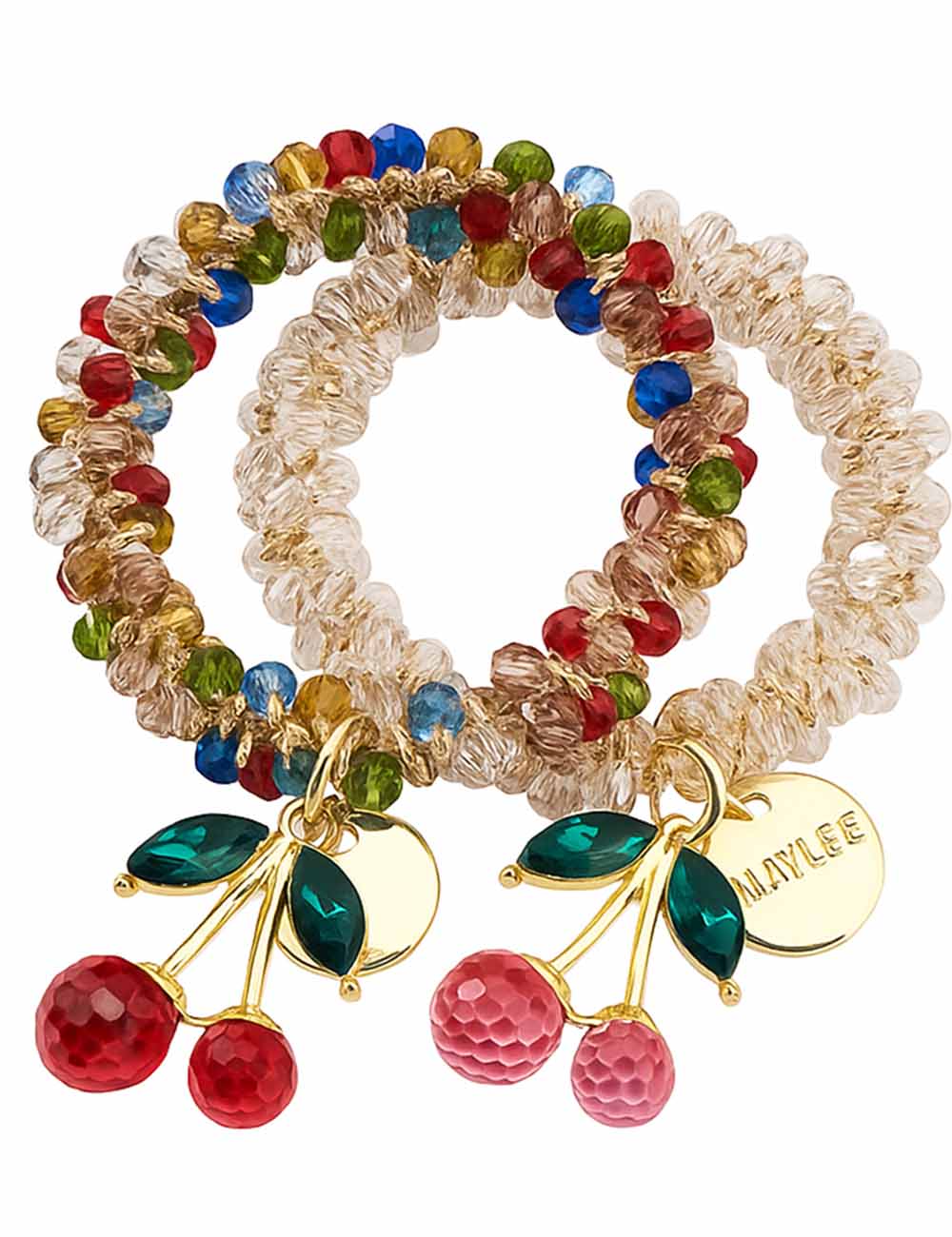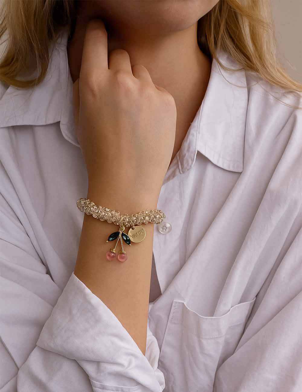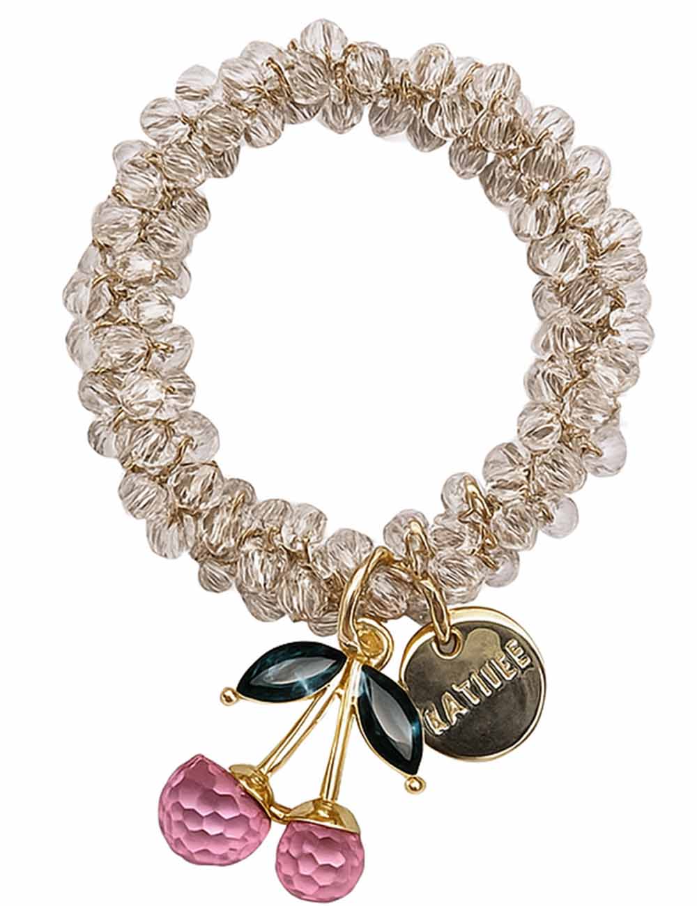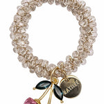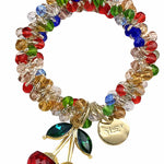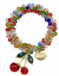 Ladies Colorful Beaded Cherry Pendant Elastic Crystal Bracelet