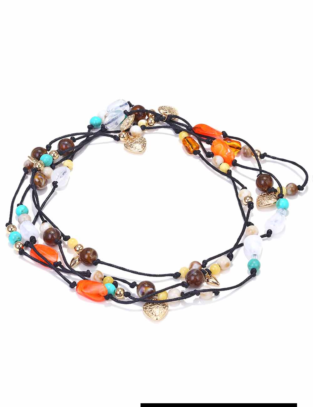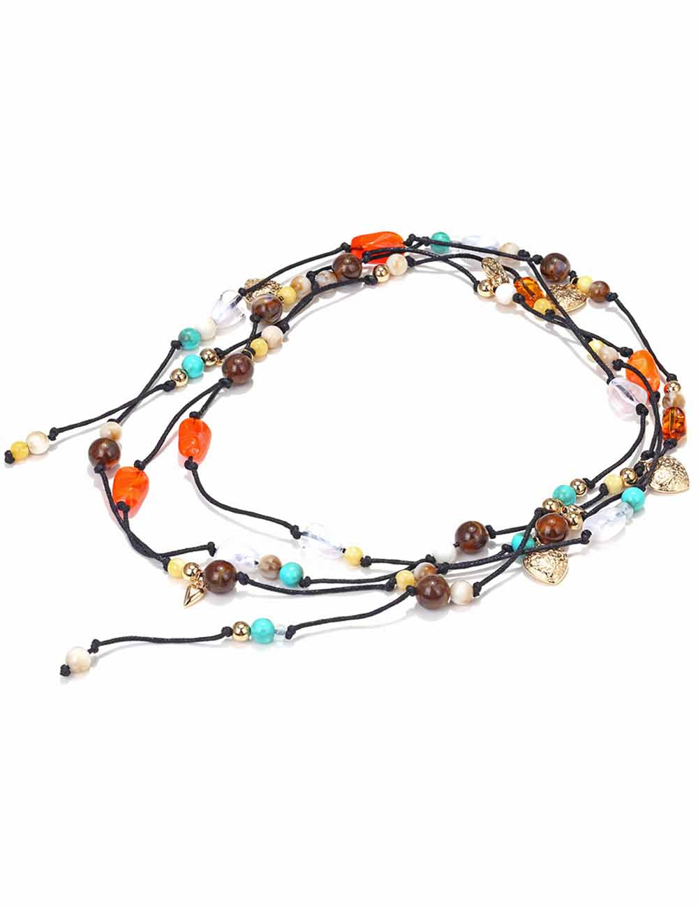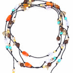 Ladies Colorful Beaded Gold Accent Layered Rope Necklace
