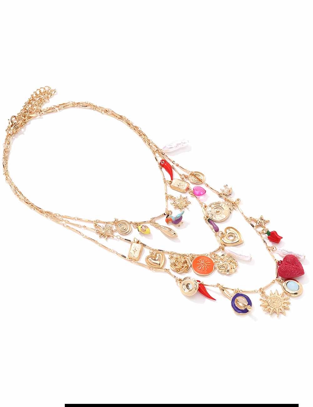Ladies Colorful Pendant 3PCS Layered Necklace Set