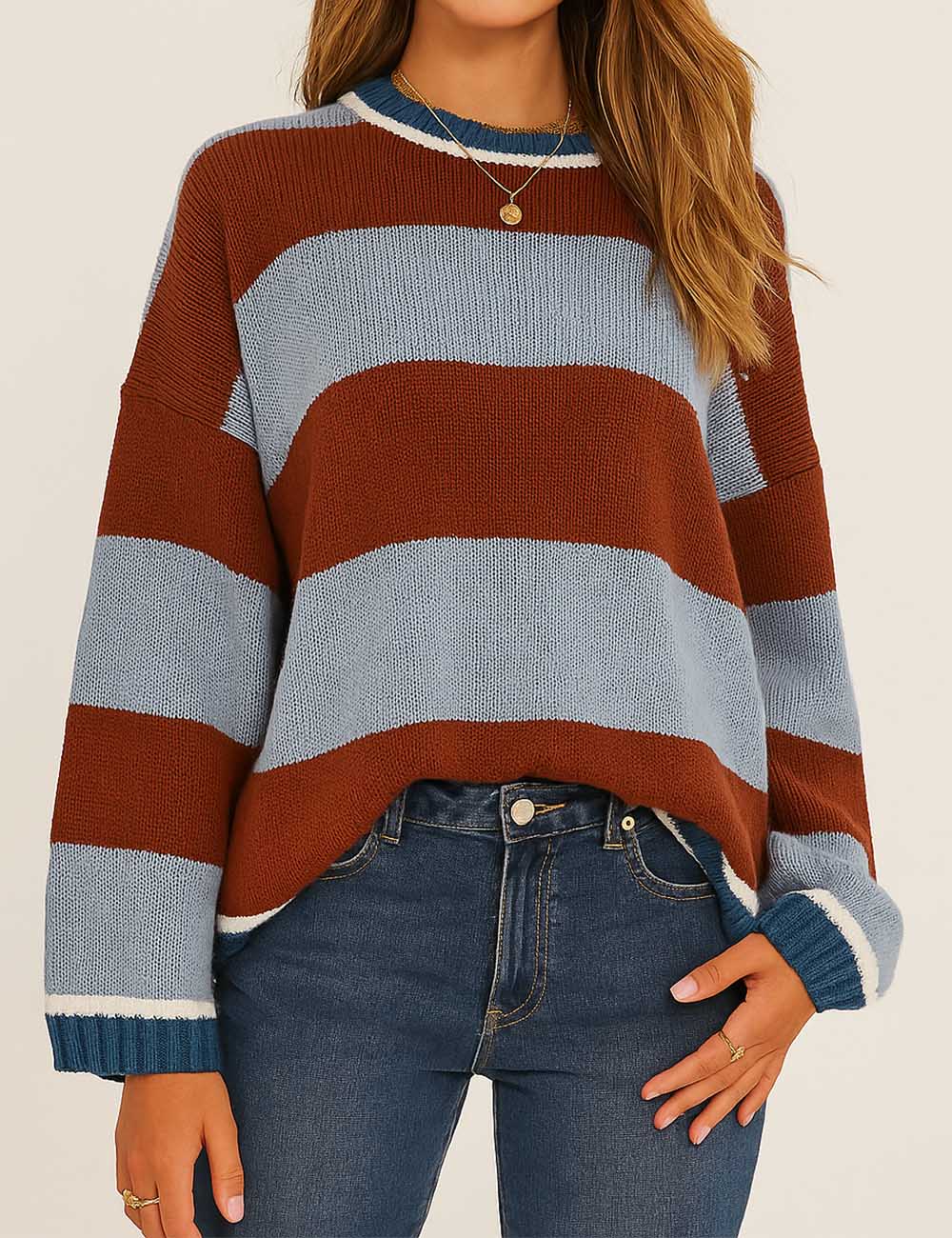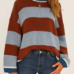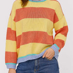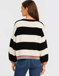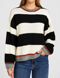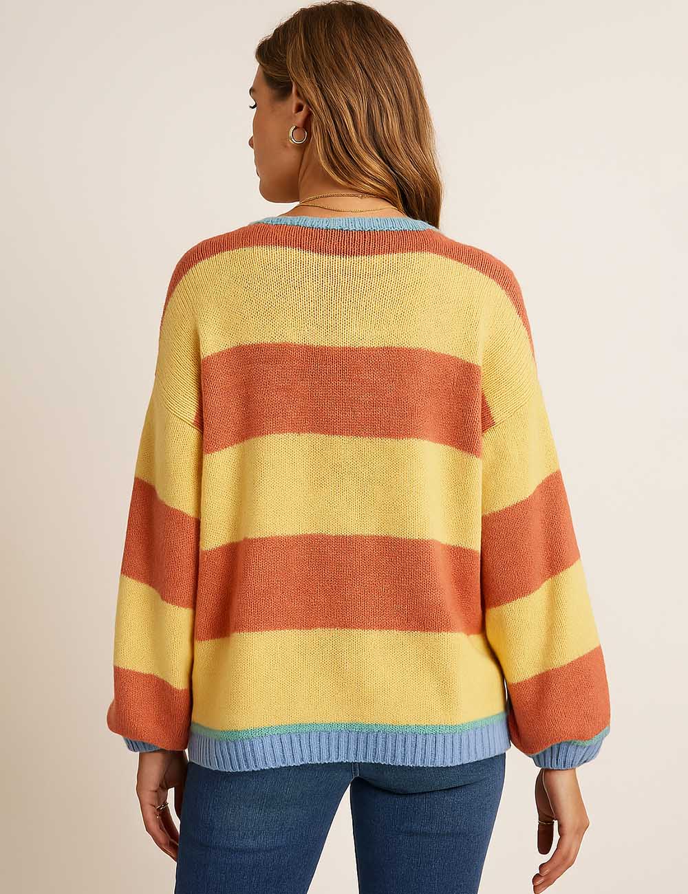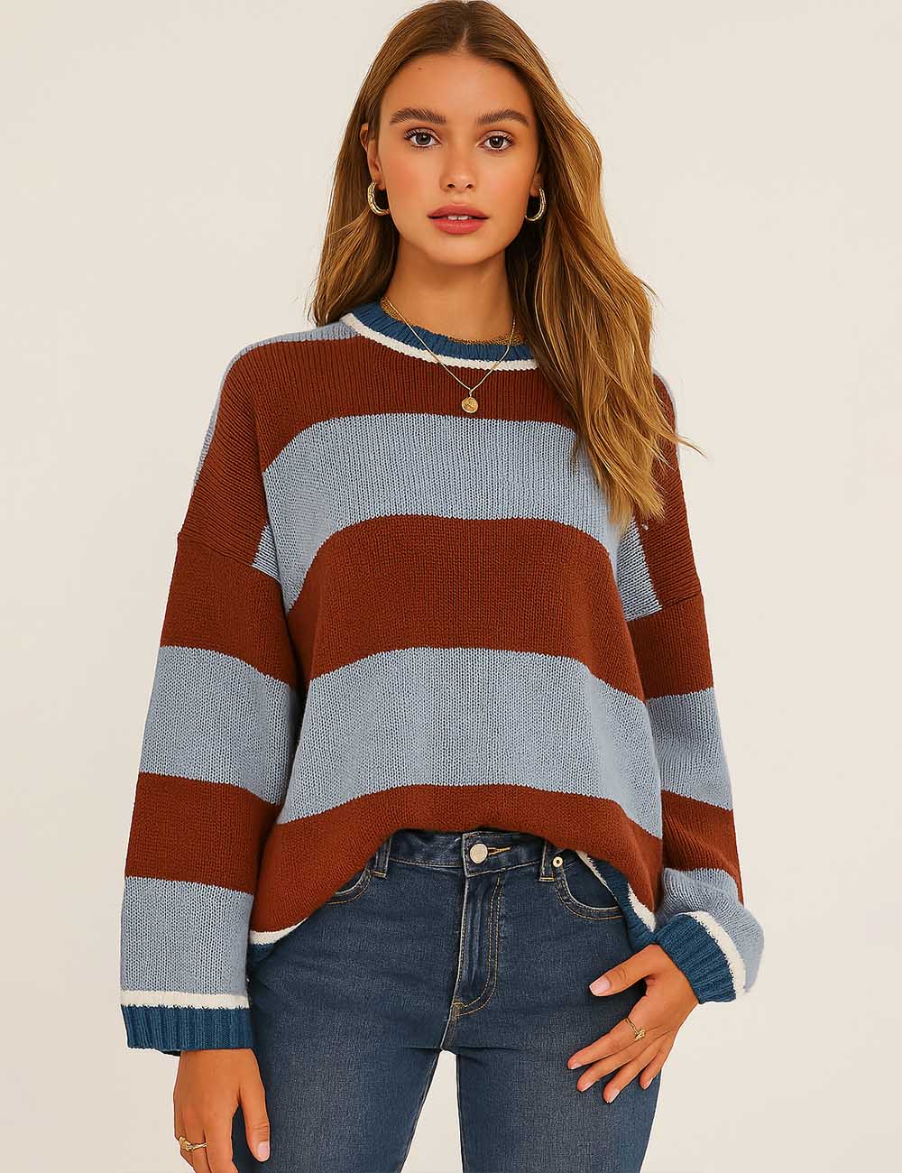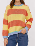 Ladies Colorful Striped Round Neck Long Sleeves Knit Sweater
