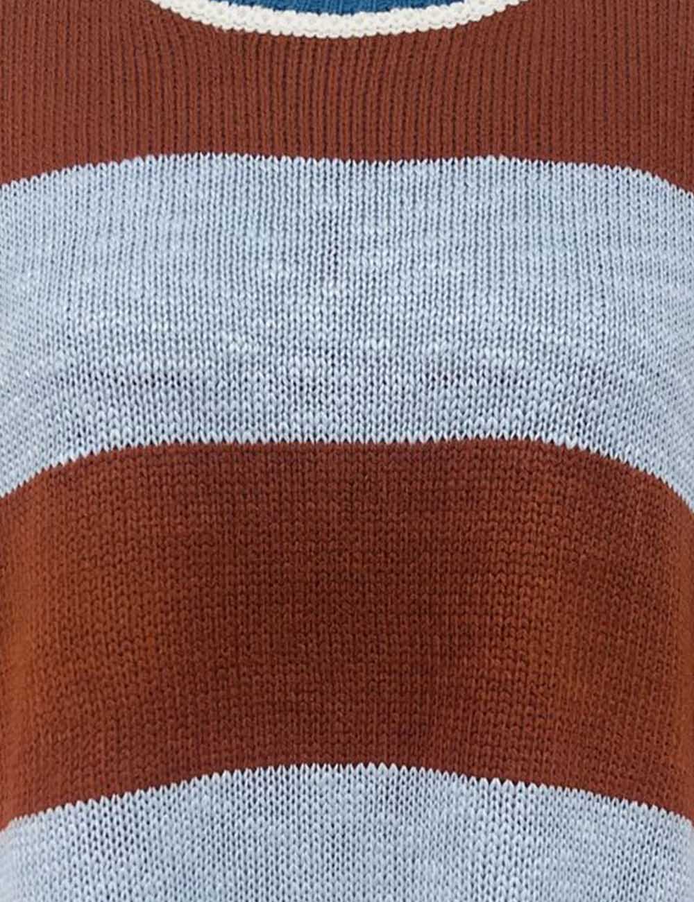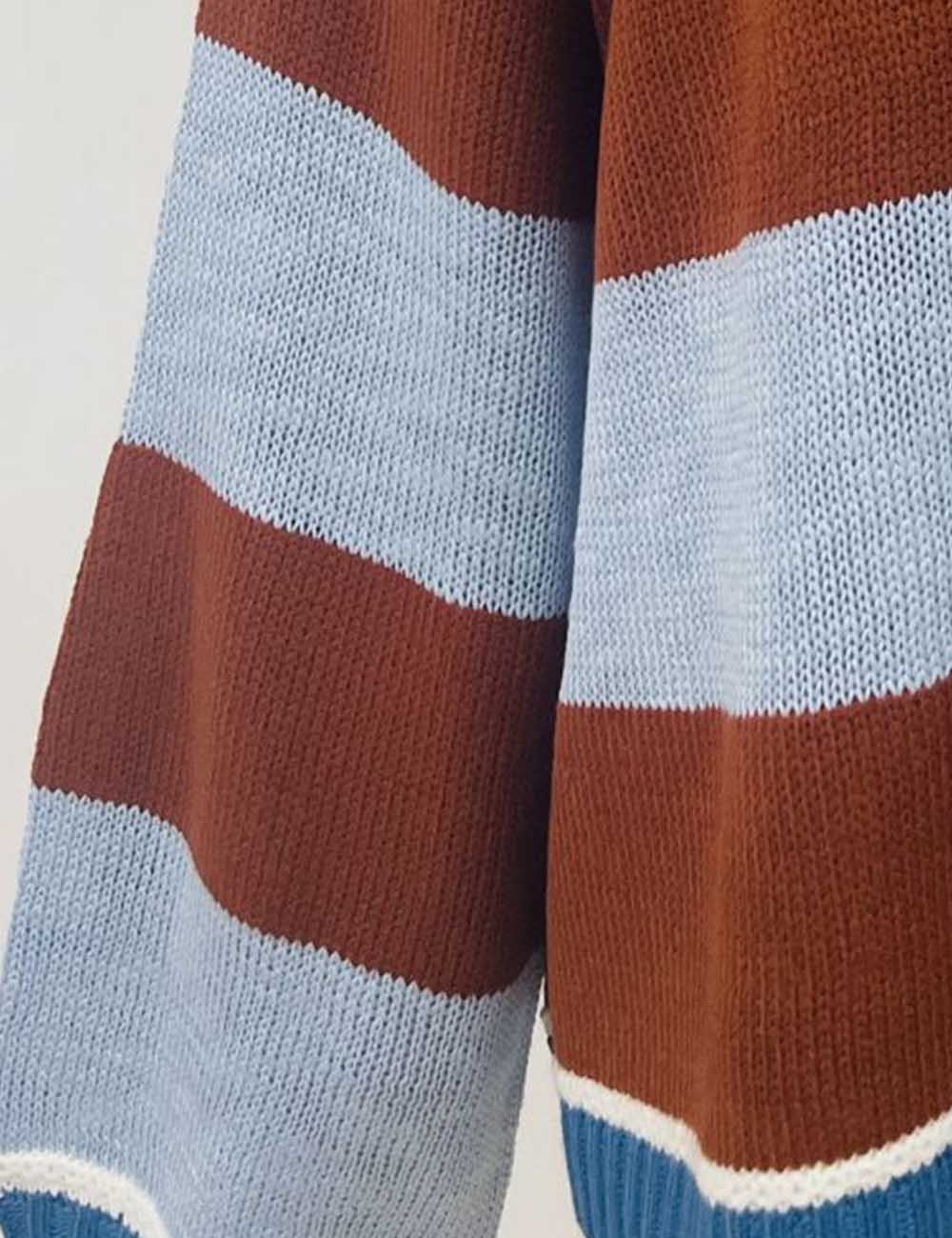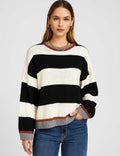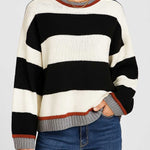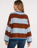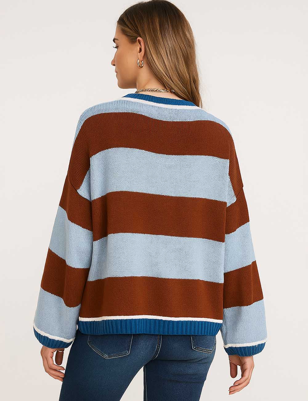 Ladies Colorful Striped Round Neck Long Sleeves Knit Sweater