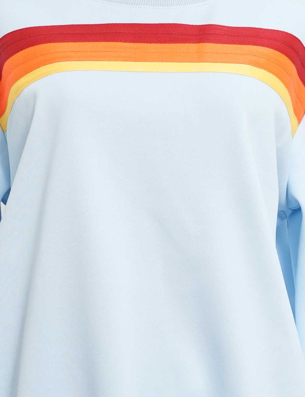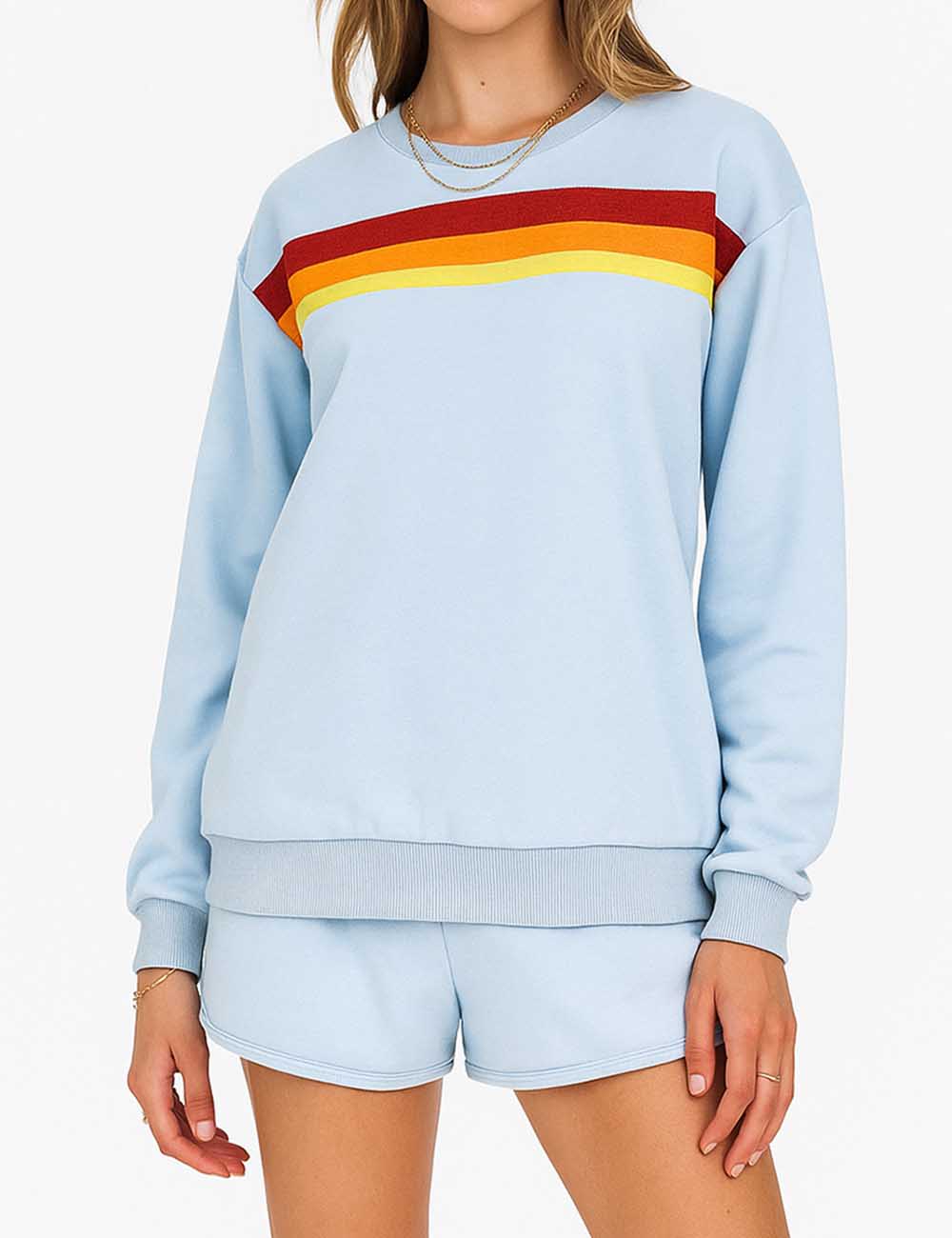 Ladies Colorful Striped Round Neck Sweatshirt & Shorts Set