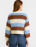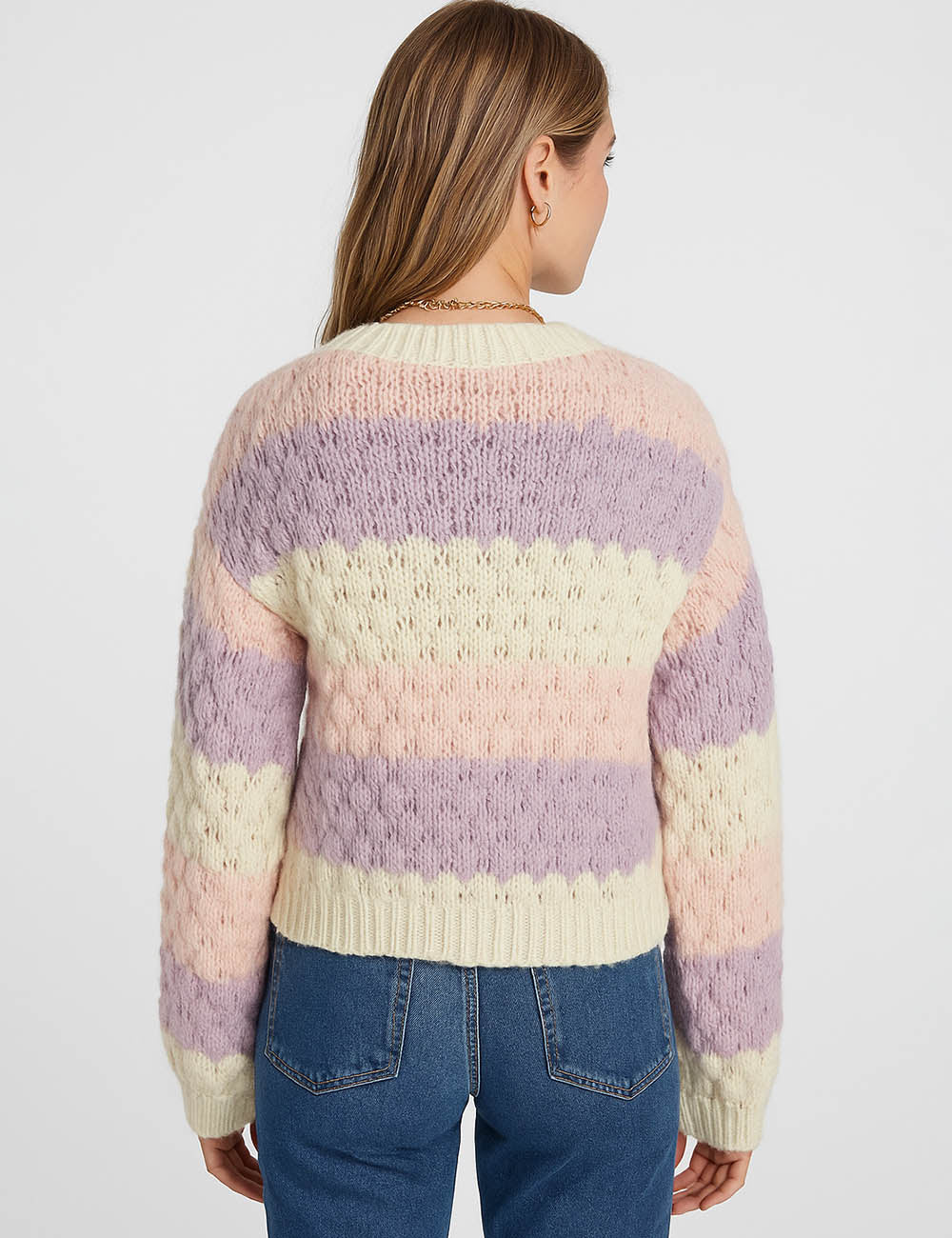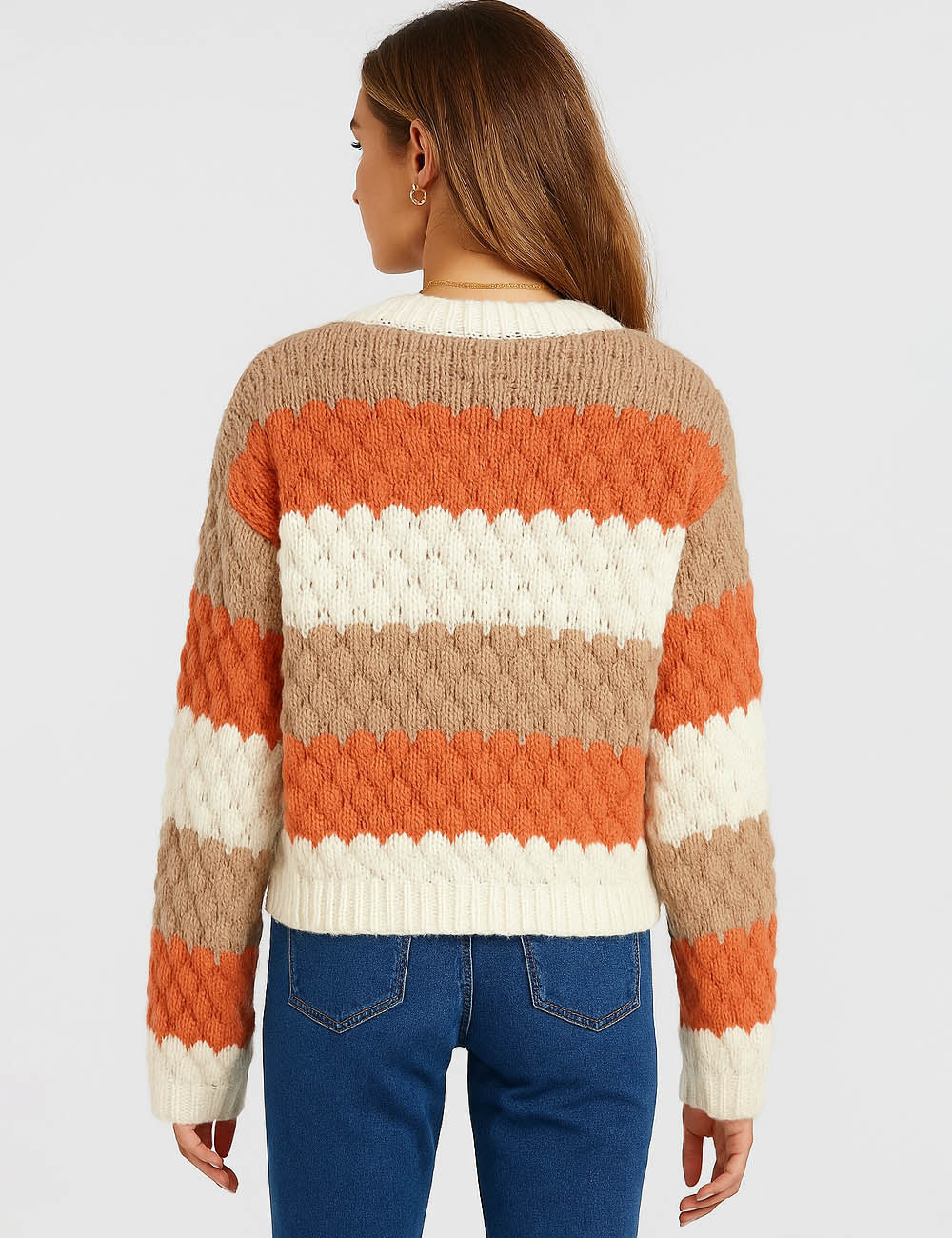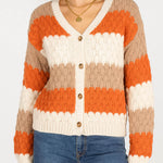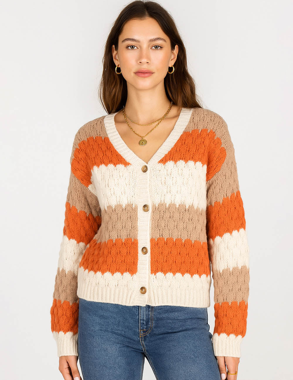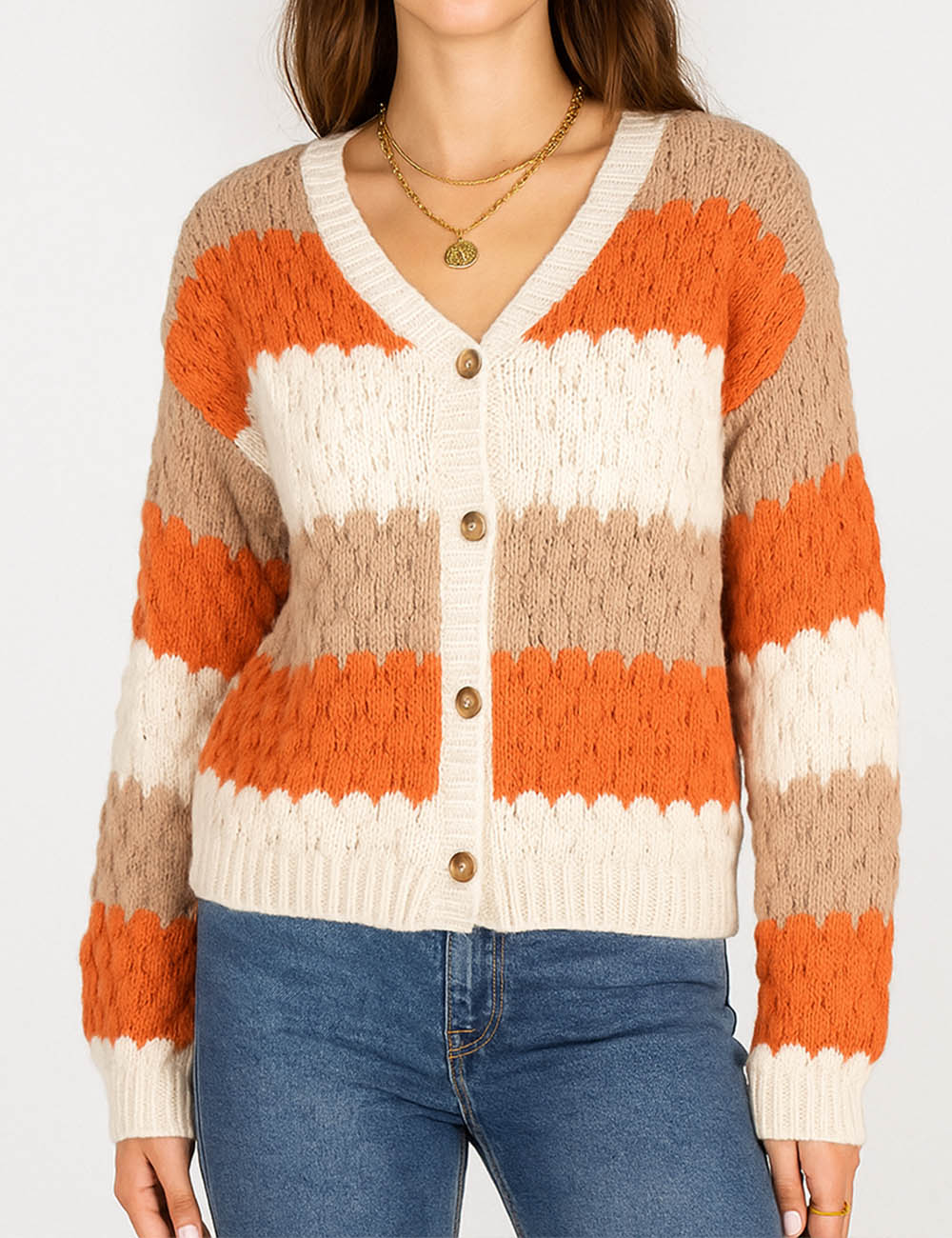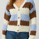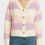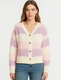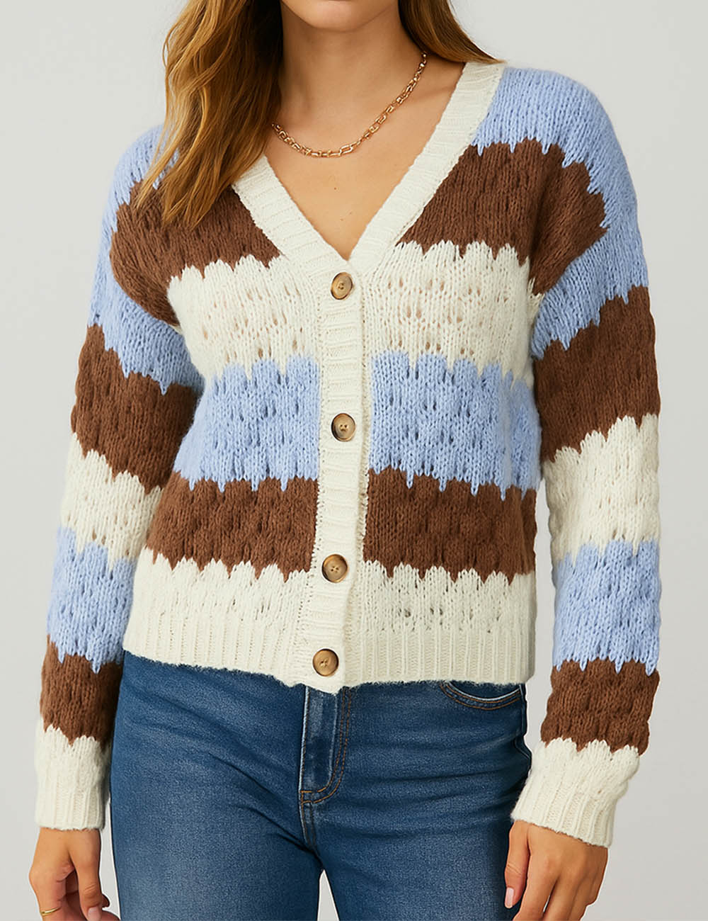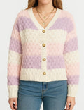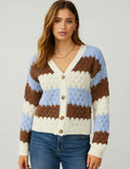 Ladies Colorful V-Neck Button Front Cropped Sweater Cardigan